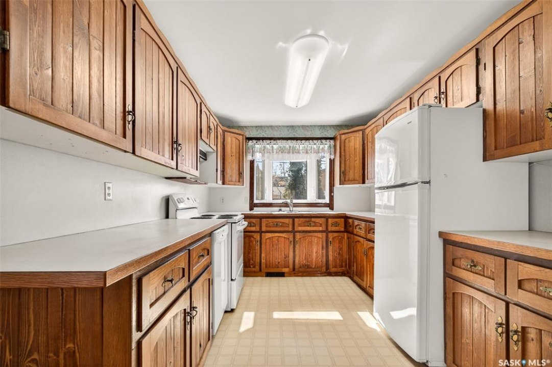 DON'T LET ITS CUTE LITTLE CURB APPEAL THROW YOU OFF! This is a WONDERFULLY LARGE, 1200 SQ/FT BUNGALOW, with 4 BEDROOMS, 3 BATHROOMS, and a 26' x 26' DOUBLE INSULATED GARAGE! FANTASTIC MAIN FLOOR LAYOUT – with supersized LIVING and FORMAL DINING AREAS, along with a roomy galley-style kitchen – LOTS OF SPACE for hosting and entertaining! Features 2 sizable bedrooms with large closets, plus a bonus 2-piece ENSUITE connected to the primary bedroom. Features MAIN FLOOR LAUNDRY in the rear mudroom addition! The basement offers plenty of additional storage, a recreational area, large full 4-piece bathroom, 2 very accommodating bedrooms with a shared walk-in closet, and utility area with updated furnace. The exterior features large composite side deck, vinyl windows, rustic composite siding, updated asphalt shingles, a fully-fenced yard, storage shed, rear concrete parking pad, and 26' x 26' DOUBLE GARAGE (gas-line runs to garage)! Unique and affordable property – worth your time to view!