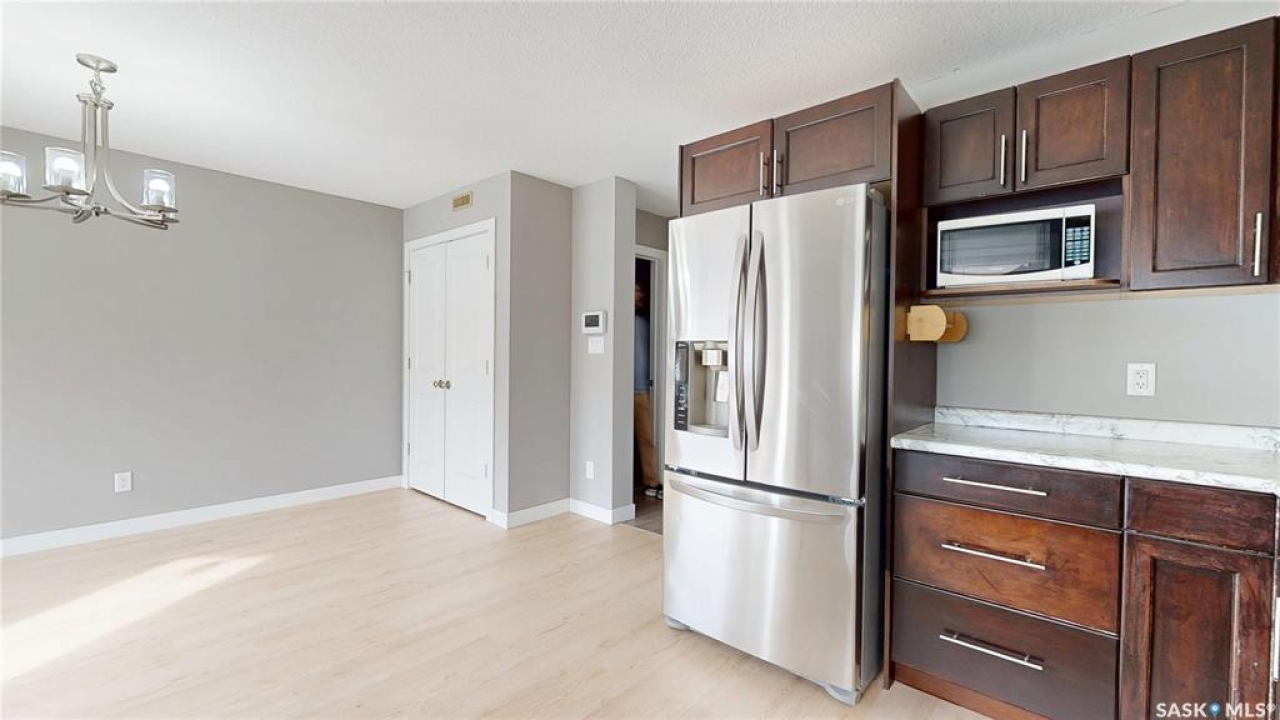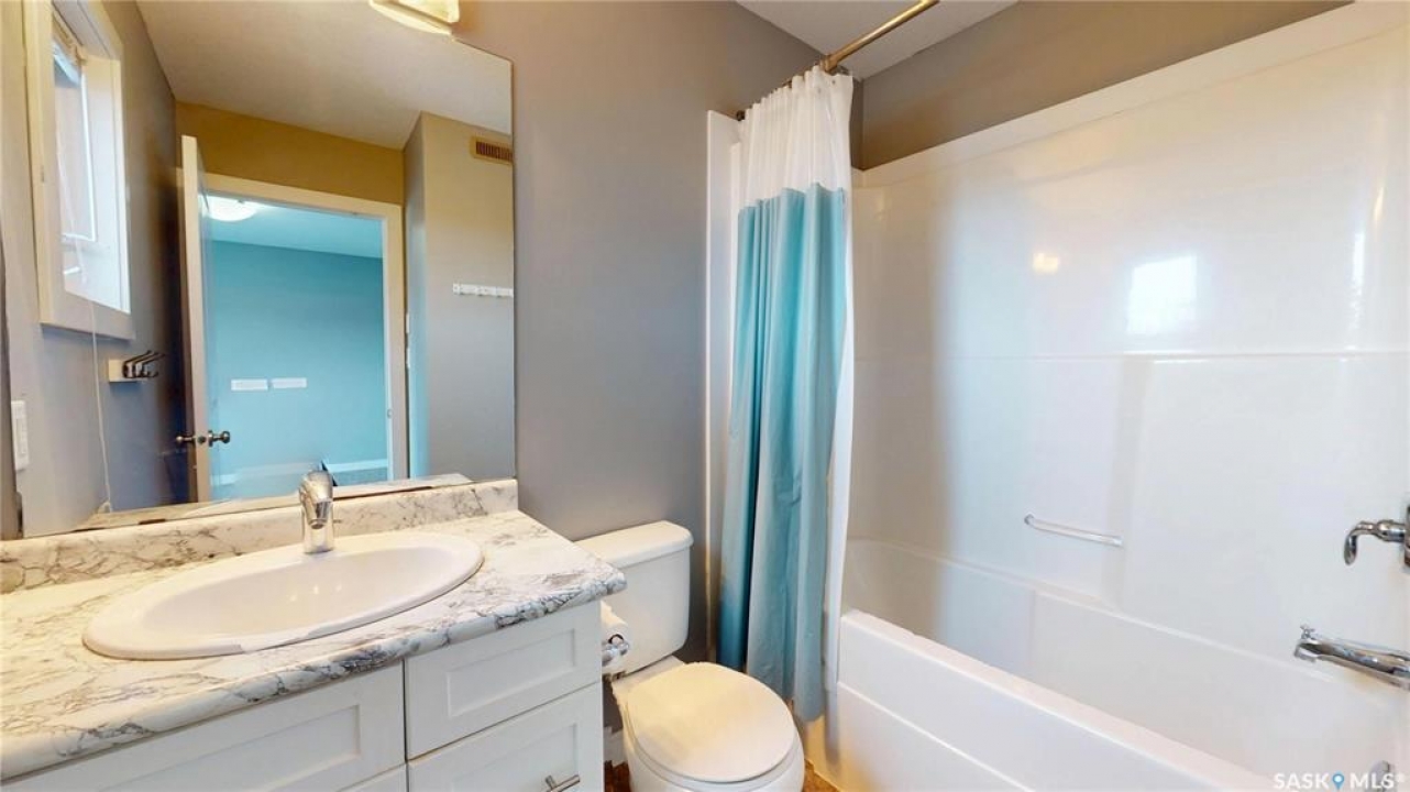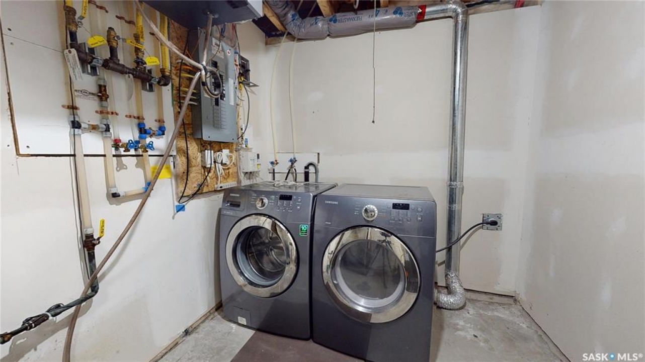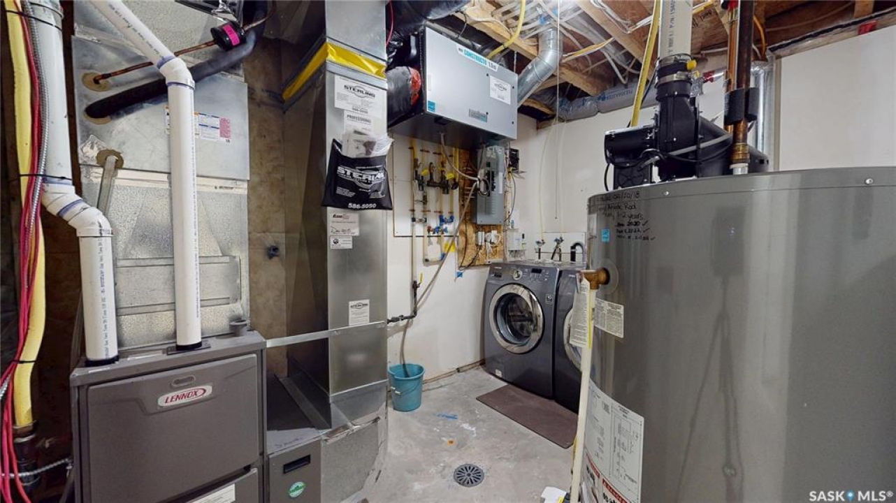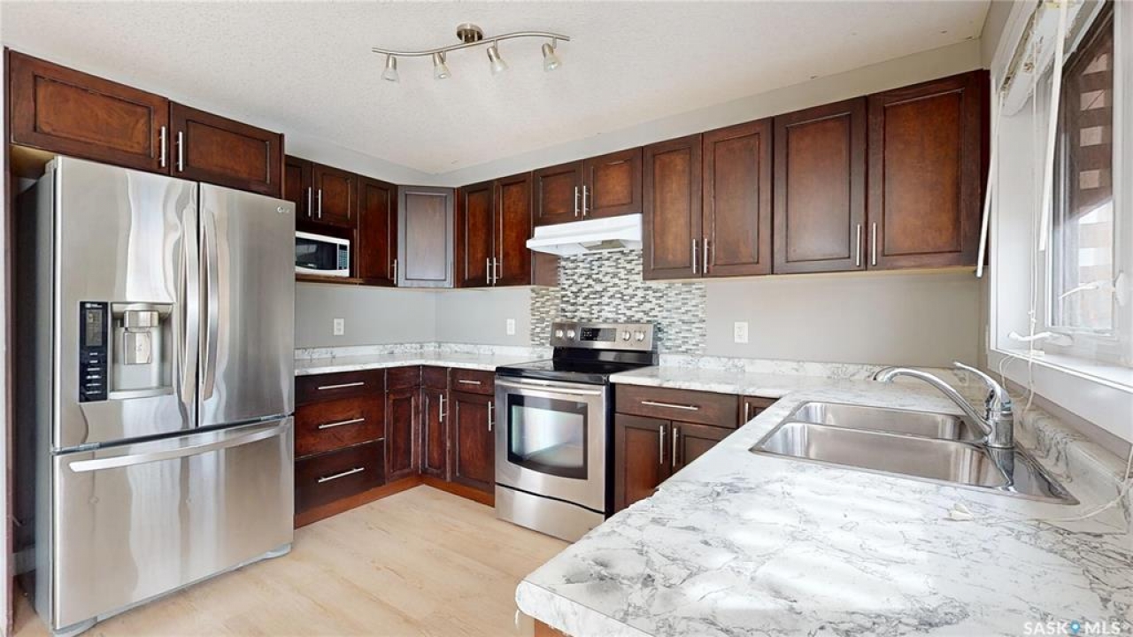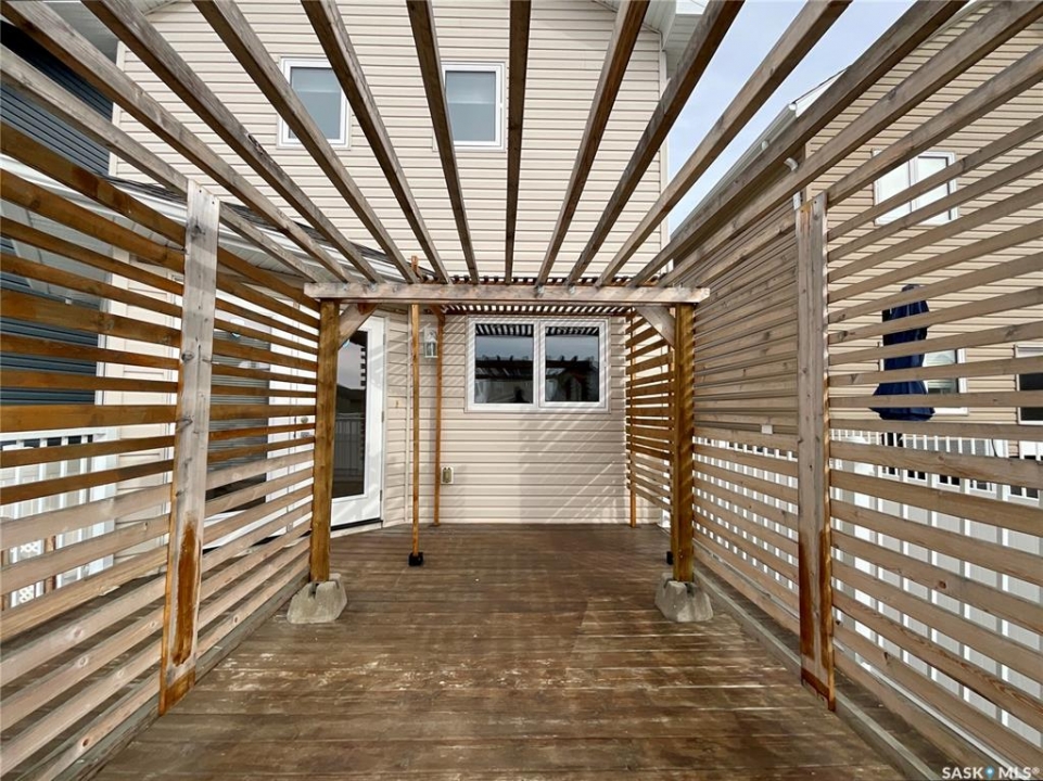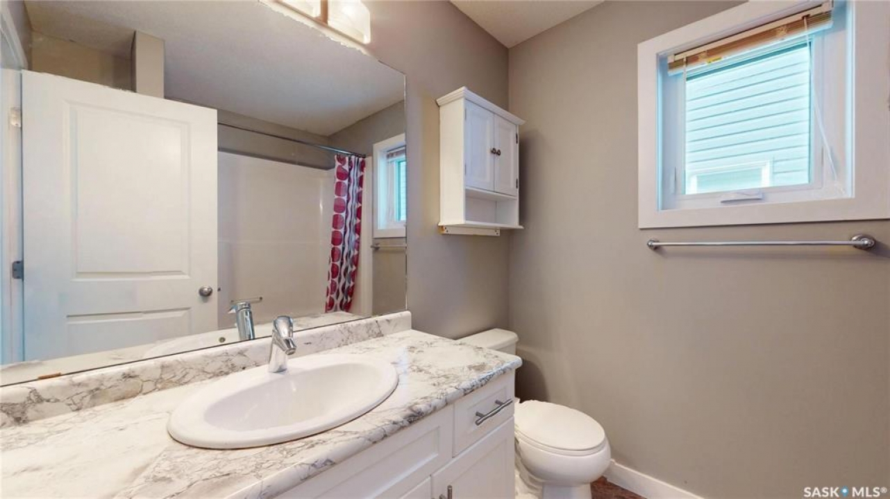 Welcome home to this beautiful 1,310 sq. ft. two-storey located in the highly desirable neighbourhood of Harbour Landing. Offering five bedrooms and four bathrooms, this home is perfect for growing families and those who love to entertain. Step inside to a bright, spacious living room with large windows and durable laminate flooring, creating a warm, inviting atmosphere. The kitchen is both functional and stylish, showcasing brown sugar maple cabinetry, ample cupboard space, a pantry, stainless steel appliances, and a generous dining area finished with luxury vinyl plank flooring. A convenient two-piece bathroom completes the main level. Upstairs, you'll find three great-sized bedrooms, including a primary suite with its own private four-piece ensuite and dual closets. An additional full bathroom provides comfort and convenience for the rest of the family. The fully finished basement adds even more living space, featuring two additional bedrooms, a bathroom with a shower, a storage room, and a laundry area. Outside, the beautifully landscaped yard is designed for enjoyment, complete with a deck and pergola, a fire pit area, and space to relax or entertain. A two-car concrete parking pad is already in place and ready for a future double garage. Located close to schools, parks, and all Harbour Landing amenities—including Norseman Park, shopping, restaurants, and more—this home offers both comfort and convenience. This is a perfect home, looking for the next perfect owner to call it home!