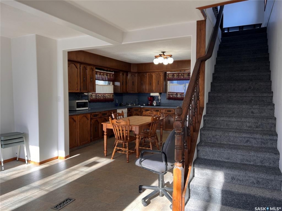 Welcome to 609 Ave B West Wynyard. This 1516 square foot home is located near the Wynyard Golf Course and sports grounds. Built in 1940 with an addition in 1969 this fantastic home is clean and well maintained. The main floor features a large living room with plenty of natural light, bedroom, 3 piece bathroom, large kitchen and dining room with patio doors leading to the deck. The second floor has 2 bedrooms and a nook. The yard is well treed and provides great privacy. There is a single detached garage and lots of parking. Come see the home for yourself and book a showing today!