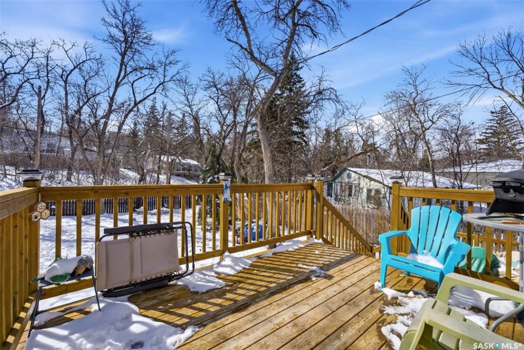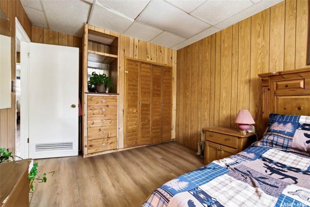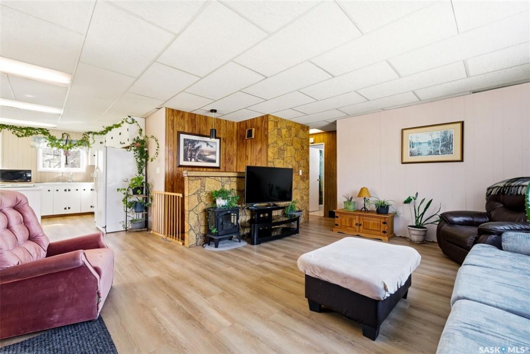 Welcome to this year-round walkout bungalow, ideally situated on a large, level lot just blocks from the beach, boat launch, and all the amenities Regina Beach has to offer. Lovingly maintained by a long-time owner, this home features a bright, open-concept layout with spacious living, dining, and kitchen areas enhanced by abundant natural light. The main floor offers three comfortable bedrooms and a full 4-piece bathroom, all finished with durable and stylish vinyl plank flooring. The lower walkout level includes an additional bedroom, a 3-piece bath, and a partially finished rec/games room with direct walkout access to the yard—perfect for entertaining or relaxing. Step outside to enjoy the private, beautifully landscaped backyard, complete with a two-tiered deck, gated access to the lane, and a charming DIY stone firepit—ideal for summer evenings. There is ample parking, including space for an RV and plenty of room for guests. Bonus! Shingles replaced in 2024. This property has incredible potential to become your perfect lake retreat.