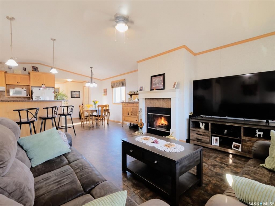 WARM, WELCOMING, COZY AND COMFORTING! Buffering a patchwork of farmers' fields that instantly put you at ease - is a stunning residence set upon the largest lot in the park. Offering more than 1,500 square feet of beautifully designed living spaces, 10 Prairie View Crescent is quietly nestled on the edge of town! Radiating refined southern charm, snuggle up on the front veranda sheltered from a soothing rain as you savour the silence. Step inside where the home's expansive open-concept branches out, expertly tailored for both comfort and elevated entertaining. Bathed in natural light, the home showcases a statement wood-burning fireplace that creates a calming ambiance, wrapping you in warmth like a gentle hug. Seamlessly integrated with the dining room and kitchen - effortless flow meets everyday function. From bar seating for connective conversations to spaces destined for holiday hosting - the kitchen has a wealth of countertops, abundant cabinetry, practical pantry and intuitive configuration making it traditional and timeless. Follow the hallway to two secondary bedrooms, one skillfully suited for a home office, the other is bright and looks out at the yard. Well-appointed and generously sized, the rooms are just steps from a dazzling 4-piece bathroom. Then there's the spacious master bedroom that is truly the highlight! Secluded with a soft muted palette that lends itself to some down time. Wake to the sunrise feeling restored then slip into your massive walk-in closet organized with seasonal sweaters and formal attire! …and that's NOT all! Woven within the primary is an impressive 4-piece ensuite with a substantial soaker tub with jets to rest and relax. A laundry room off this wing of the home provides ample storage and leads you out to a side deck and into your picturesque yard. As the golden sunset melts into the horizon, you are surrounded by lush green space, mature hedges and towering trees along with a nearby walking trail to help you reconnect!