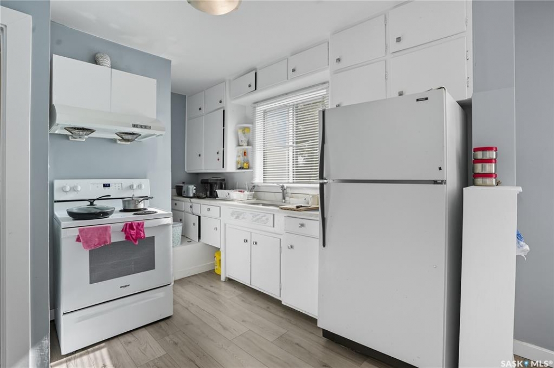 Welcome to this super cute and charming raised bungalow located in trendy Riversdale. This fully remodeled home offers a perfect blend of character and modern updates, making it ideal for young professionals, first-time buyers, or investors seeking a great rental or Airbnb opportunity. The main floor features a bright front porch, spacious living and dining areas with large windows, a refreshed galley kitchen with quartz countertops, updated cabinets, and included appliances. Two bedrooms and a beautifully remodeled full bathroom complete the level. Downstairs, the full-height basement shines with natural light thanks to large windows. It includes two additional bedrooms, a full bathroom, laundry area, and a bonus nook space. The home is equipped with a high-efficiency furnace and upgraded double-pane windows, ensuring year-round comfort and efficiency. Outside, the large 45' lot provides plenty of space to relax or garden, complemented by established apple trees. A new front deck, covered concrete patio, and front and back fences create inviting outdoor areas, while two gravel parking spaces with alley access add convenience. Security cameras are also in place for peace of mind. Enjoy the unbeatable walkability—steps to downtown, River Landing, shops, cafes, Farmers Market, and all connected parks and trails. This affordable home is packed with value in a neighborhood that continues to appreciate year after year. water/sewer line replacement was done and totally paid off(near $5k).