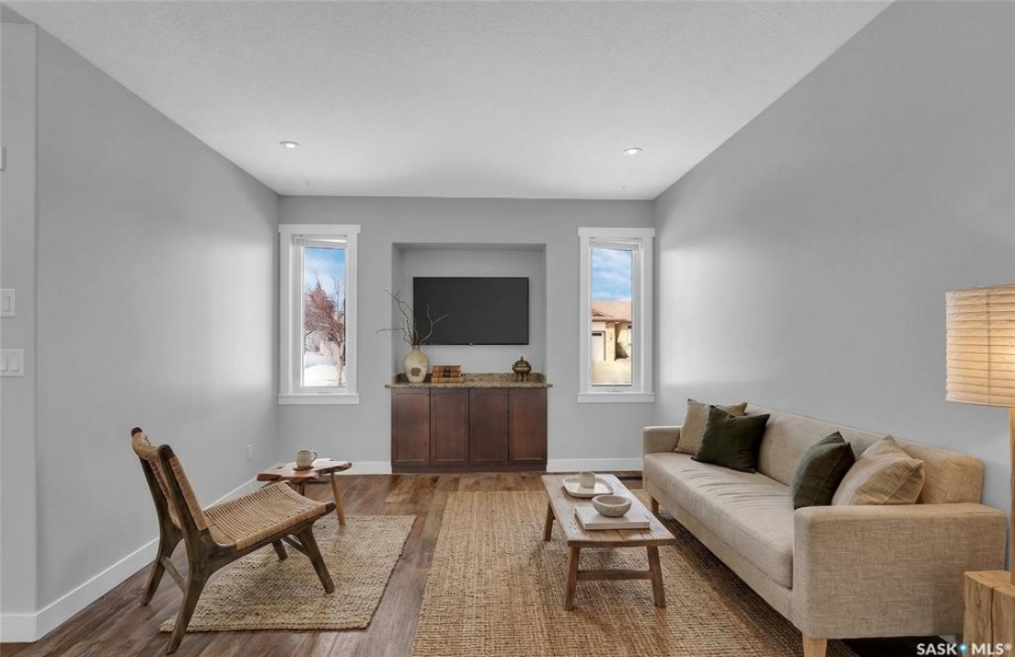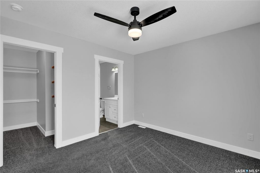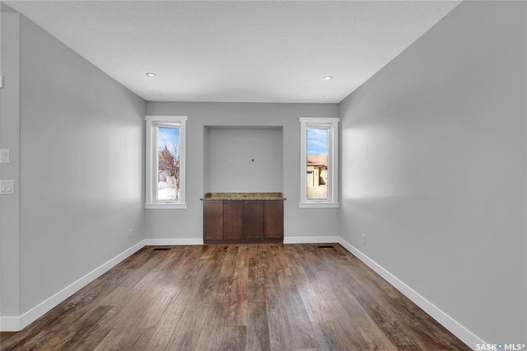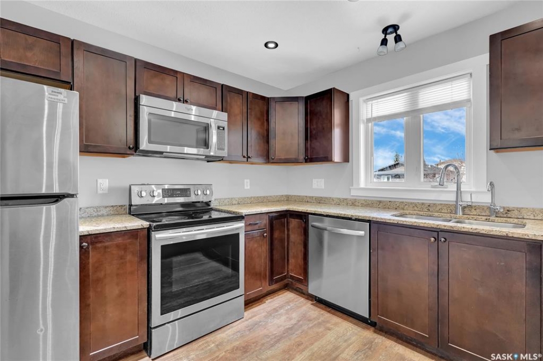 Welcome to 3347 E Coughlin Bay, a 4 bedroom, 3 bathroom bungalow nestled in the sought-after Wood Meadows neighbourhood. Offering 1,180 sq ft on a 4,590 sq ft lot, this home delivers exceptional value with thoughtful updates throughout and a fully developed lower level that nearly doubles your living space. From the moment you arrive, the charming curb appeal sets the tone. Step inside to a welcoming entryway that opens onto the upper level, where rich LVP flooring flows throughout the main living areas. The kitchen is a true highlight, featuring rich dark cabinetry, granite countertops, stainless steel appliances, and a generous peninsula that connects to the adjacent living space, perfect for everyday living and entertaining alike. The primary bedroom is a comfortable retreat complete with a walk-in closet, ceiling fan, patio doors leading to the rear deck, and its own private ensuite featuring a tiled walk-in shower with glass doors. A second bedroom and an updated main floor bathroom with a deep soaker tub and full tile surround round out the upper level. Downstairs, the fully developed basement offers incredible flexibility with two additional bedrooms, a spacious family room and a three-piece bathroom. Whether you're housing a growing family, setting up a home office, or hosting guests, the lower level has room for it all. A separate laundry room with Samsung washer and dryer and additional storage space complete the package below grade. Out back, a large wood deck overlooks the fully fenced yard, a great space for summer evenings, kids, and pets. The property also features updated windows throughout and an HRV system for year-round air quality. Wood Meadows is a well-established family neighbourhood with easy access to schools, parks, and all the amenities of Regina. Homes like this one with four bedrooms, three bathrooms, and a fully finished basement don't come along often at this price point. Book your showing today!