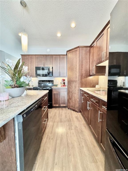 Peace of mind! Wonderfully cared for 2 bedroom, 2 bathroom Southwood townhouse situated within a gated development provides easy secure living. The main level provides a wide open floor plan, 1,067 square feet of living space, a beautiful kitchen with granite countertops and an abundance of natural lighting. The lower level is open for development allowing the new owner to create their own dream basement. Additionally the unit comes with a single attached garage with in-unit access.