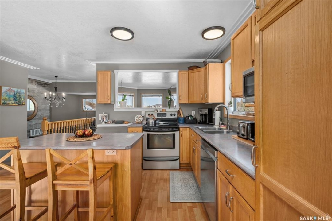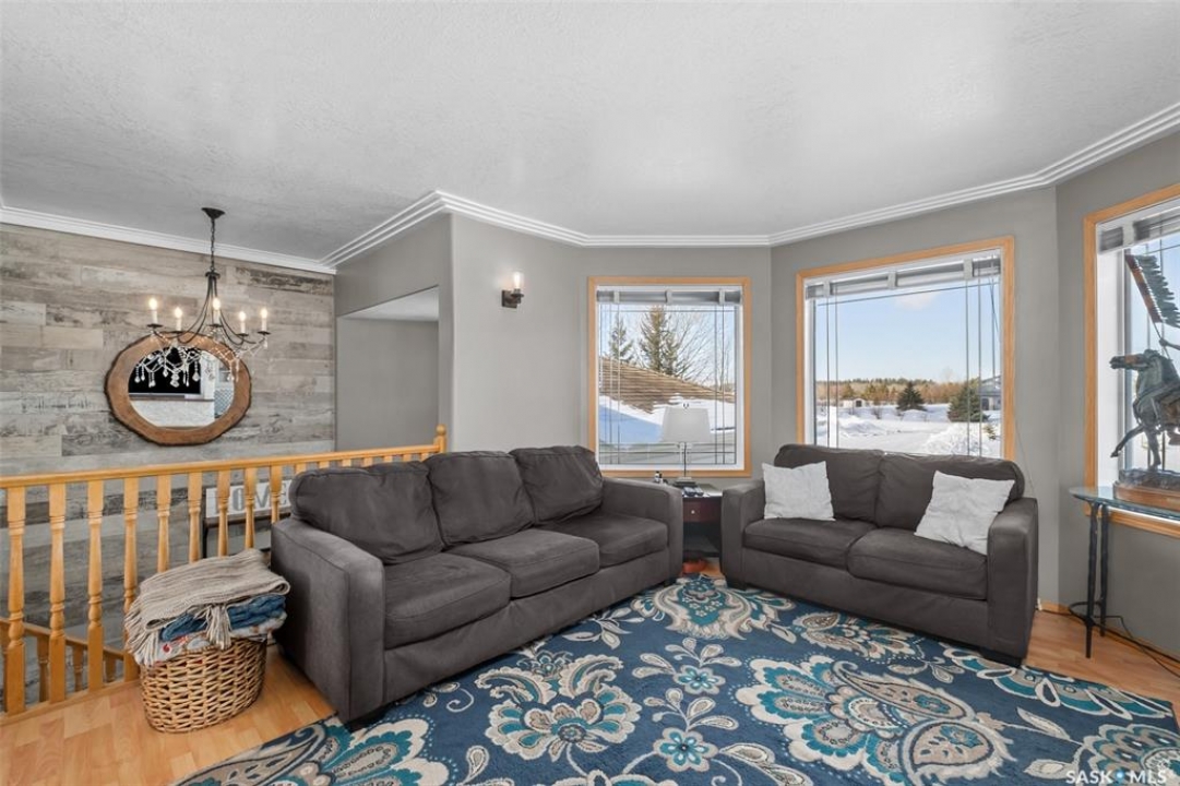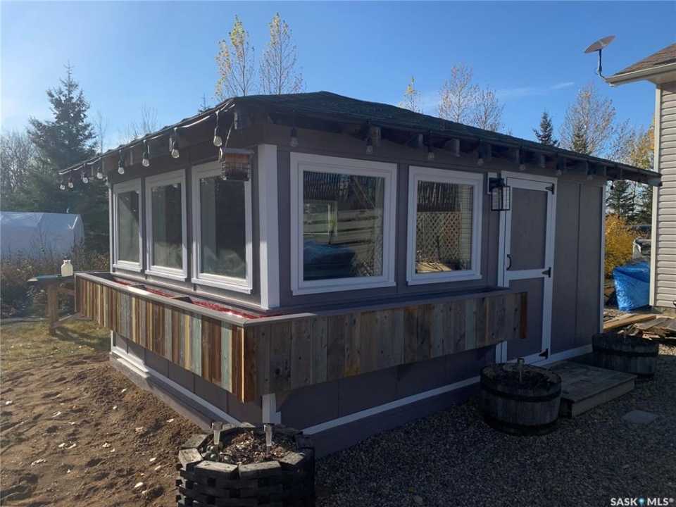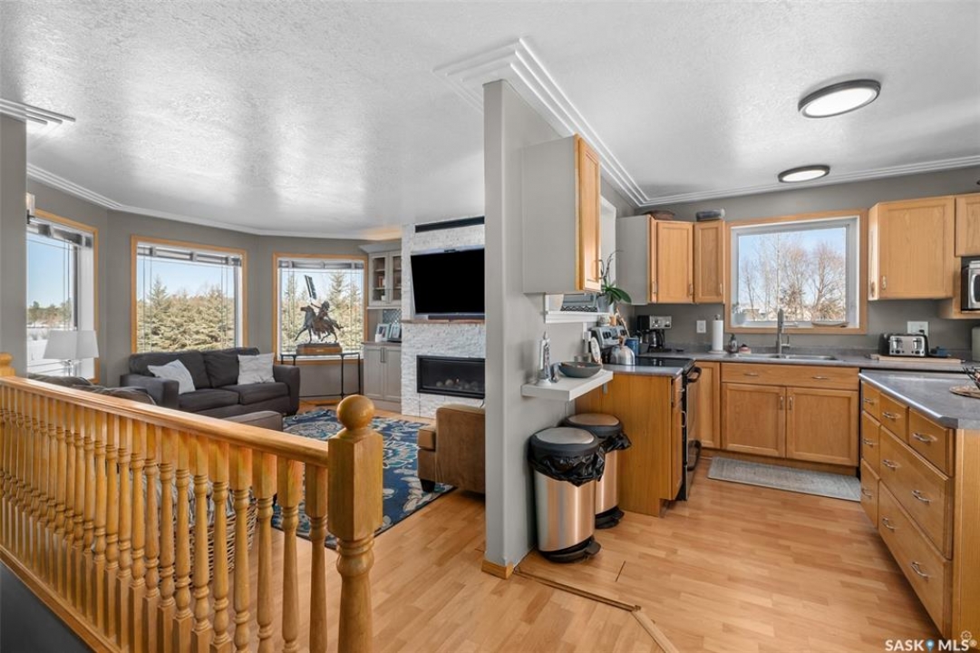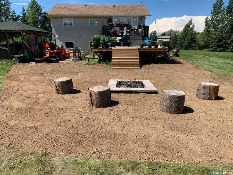 Beautiful Rm of Buckland acreage! Move in and do nothing to this tastefully re-imagined bi-level that supplies 4 bedrooms, 3 bathrooms and rests on 3.99 acres of land. The main level of the residence provides a spacious oak kitchen with a dine-at island, combined dining area and a cozy front living area that features custom built-ins and a wonderful natural gas fireplace. The lower level comes fully developed and is an entertainers dream! With a full stock kitchen/bar the lower level allows for grand entertainment and recreation within a massive family room. Additionally the lower level is equipped with loads of storage space, has high ceilings and is pouring with warm natural lighting. The exterior of the property provides the privacy acreage living has to offer, a south facing treated deck, ground level firepit and a covered hot tub hut.