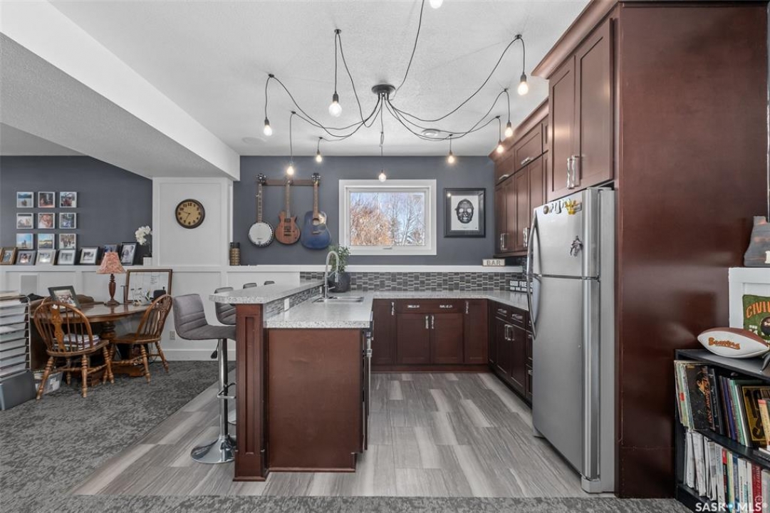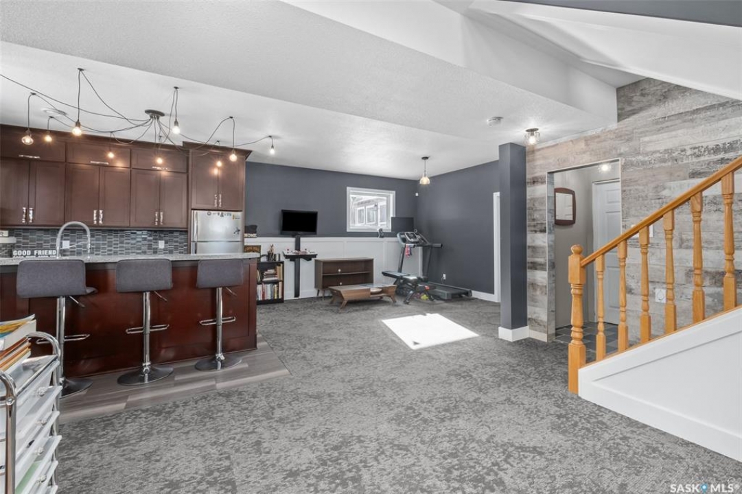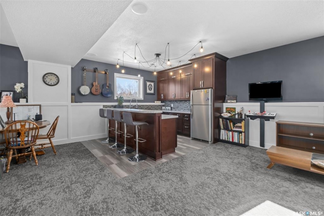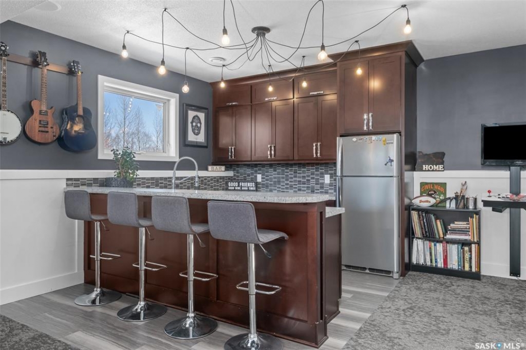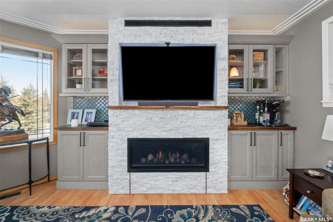 Beautiful Rm of Buckland acreage! Move in and do nothing to this tastefully re-imagined bi-level that supplies 4 bedrooms, 3 bathrooms and rests on 3.99 acres of land. The main level of the residence provides a spacious oak kitchen with a dine-at island, combined dining area and a cozy front living area that features custom built-ins and a wonderful natural gas fireplace. The lower level comes fully developed and is an entertainers dream! With a full stock kitchen/bar the lower level allows for grand entertainment and recreation within a massive family room. Additionally the lower level is equipped with loads of storage space, has high ceilings and is pouring with warm natural lighting. The exterior of the property provides the privacy acreage living has to offer, a south facing treated deck, ground level firepit and a covered hot tub hut.