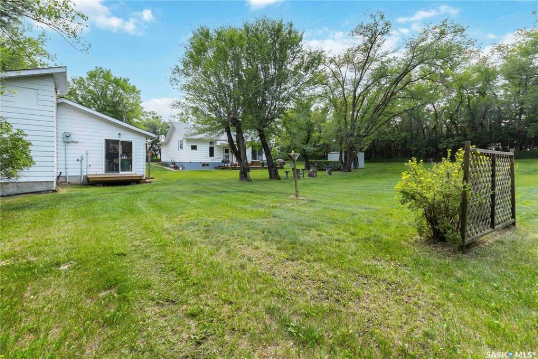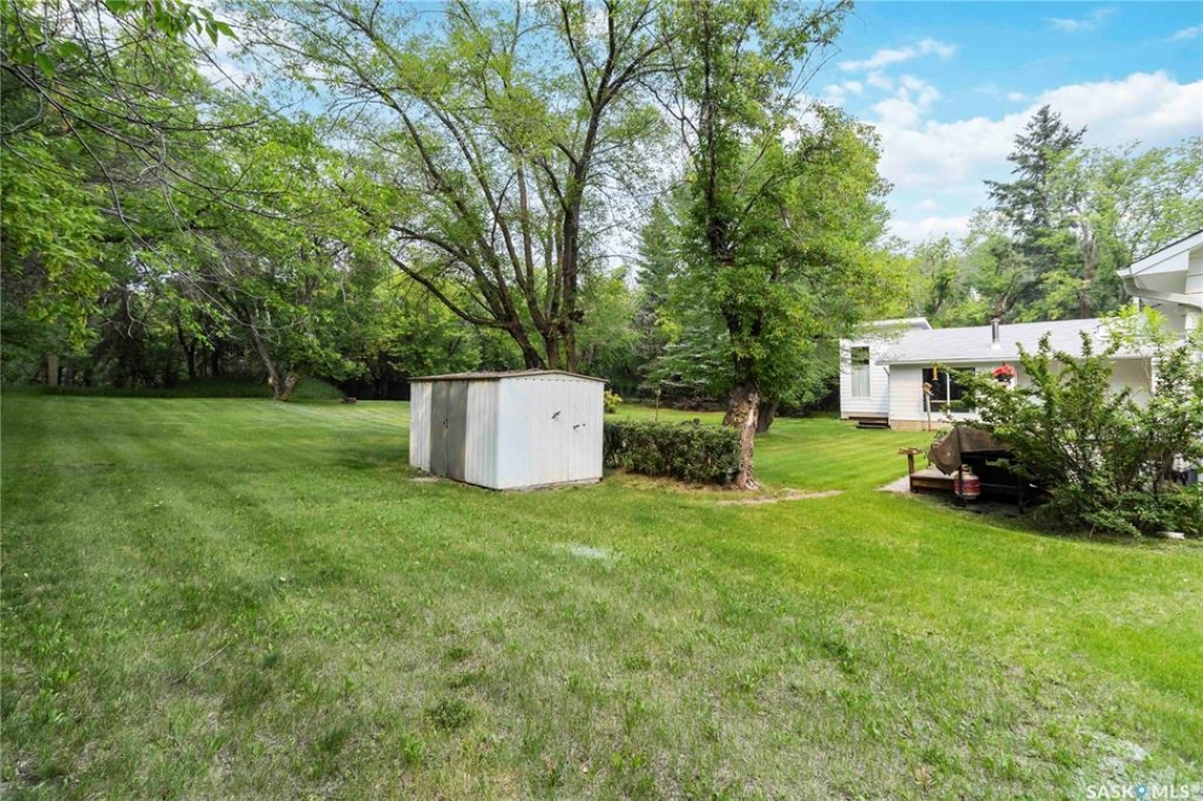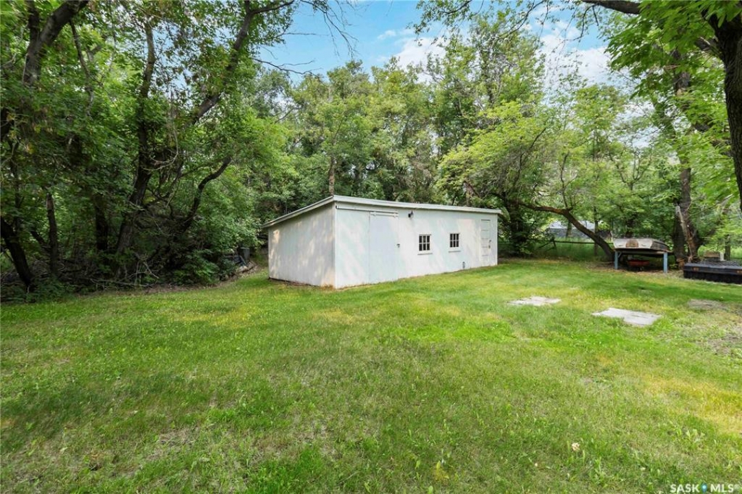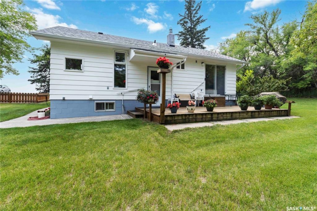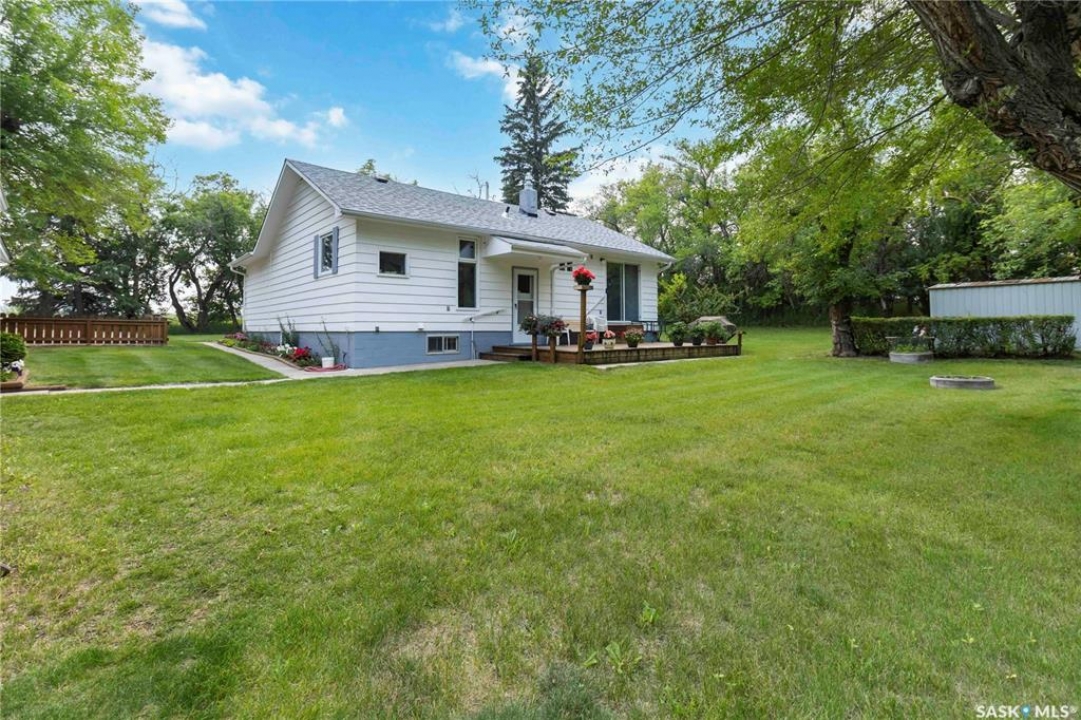 Beautifully treed acreage just minutes from city limits with pavement to the door! This well-maintained bungalow offers 3 bedrooms, 2 bathrooms, and a functional layout with room to make it your own. Recent upgrades include newer windows, brand new shingles on the house and shed (2025), and freshly painted exterior (2025). Serviced with city water to both the home and detached studio, plus two additional wells for added flexibility. The 748 sq ft detached studio is a standout feature—bright and inviting with natural light, gas furnace, water, and dedicated office space. Ideal for a home-based business, creative studio, or potential future garden suite. Double detached garage includes a heated workshop on one side and separate parking stall on the other. Mature landscaping, established trees, and flower beds create a private, peaceful setting. 300 sq ft shed with 30-amp service is perfect for animals or storage. With future subdivision potential and planned sewer infrastructure in the area, this property offers excellent long-term value. A rare opportunity for acreage living just minutes from the city!