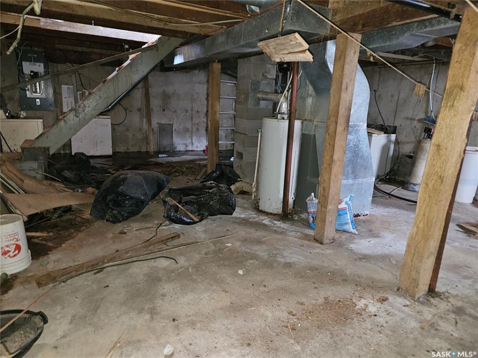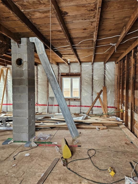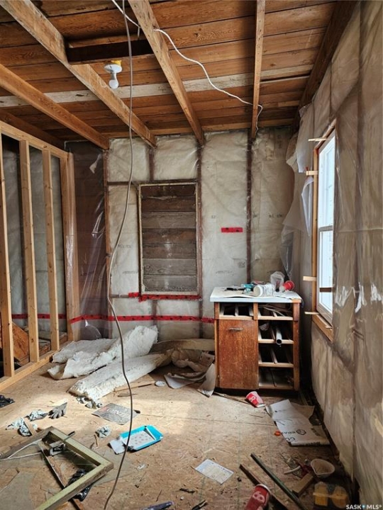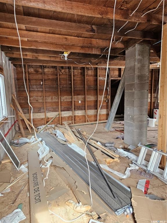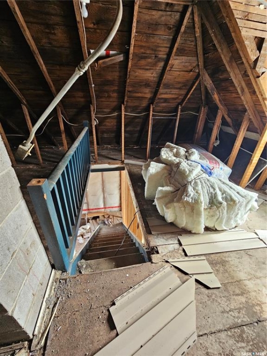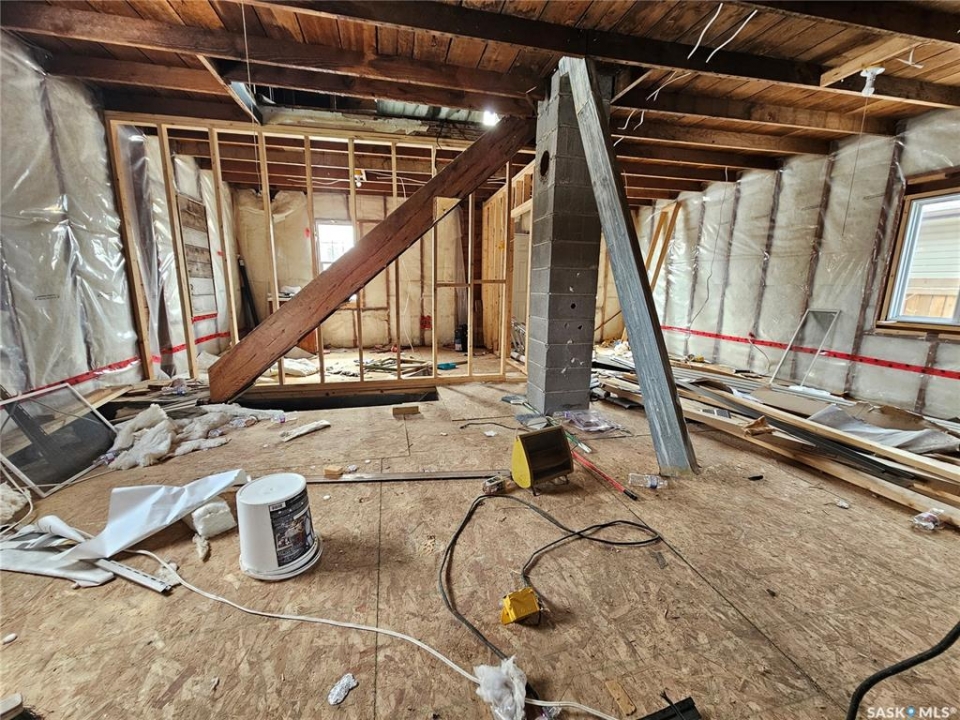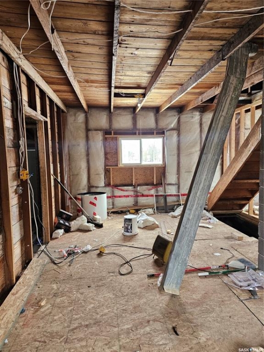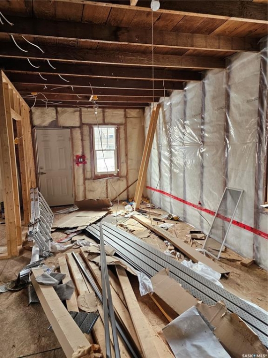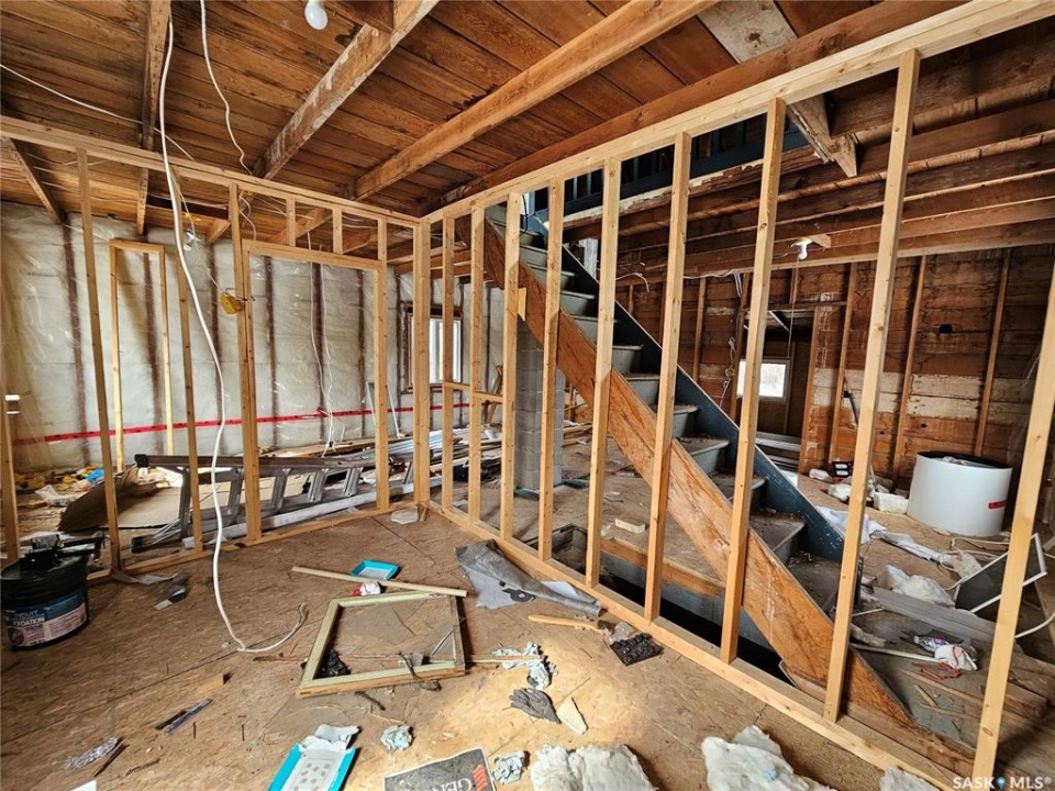 1038 Veterans Avenue has a start to renovations: new shingles, windows, doors, siding and electrical service/panel, sub floor, some insulation and vapour barrier, front deck, back step. If you have a construction company, or renovation skills, this property would make a great revenue property or starter home. Convenient location around the corner from Esterhazy Central High School.