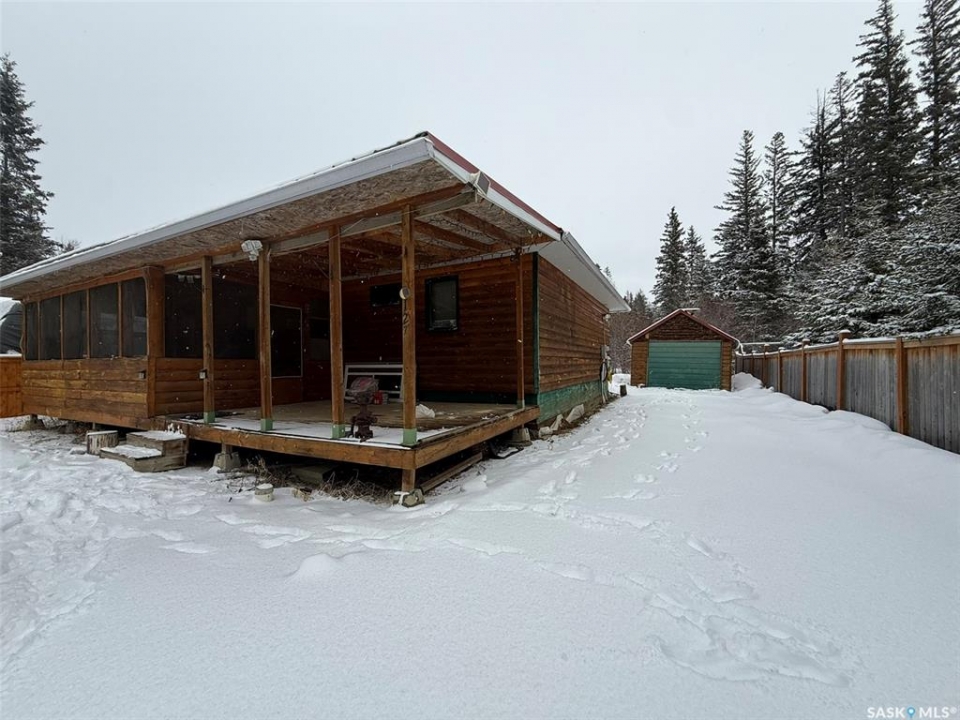 Escape to lake life with this charming 952 sq. ft, year-round cabin in the Resort Village of Chitek Lake; one of Saskatchewan's most sought after recreational destinations, especially as we head into the spring and summer season. This well maintained cabin features a bright and inviting living room, highlighted by a cozy built-in wood fireplace, perfect for relaxing after a day on the water or trails. The home offers 3 comfortable bedrooms and a full 4-piece bathroom, making it ideal for family getaways or hosting guests. Outside, the property is set up for easy enjoyment and low maintenance. The front deck offers a great space to unwind, with half of it screened in so you can enjoy warm evenings without the bugs. Out back, you'll find an additional deck area and a fully crushed rock yard, keeping upkeep to a minimum so you can spend more time enjoying the lake lifestyle. The property has one garage, large enough to store a small boat, quads, sleds, etc. Perfect for making the most of every season Chitek Lake has to offer. Located in a quiet area with great neighbours on both sides, this property offers the perfect balance of relaxation and community. Whether you're looking for a seasonal retreat or a year-round escape, this cabin is ready for you to enjoy. Don't miss your chance to own a piece of lake life just in time for the upcoming spring and summer season!