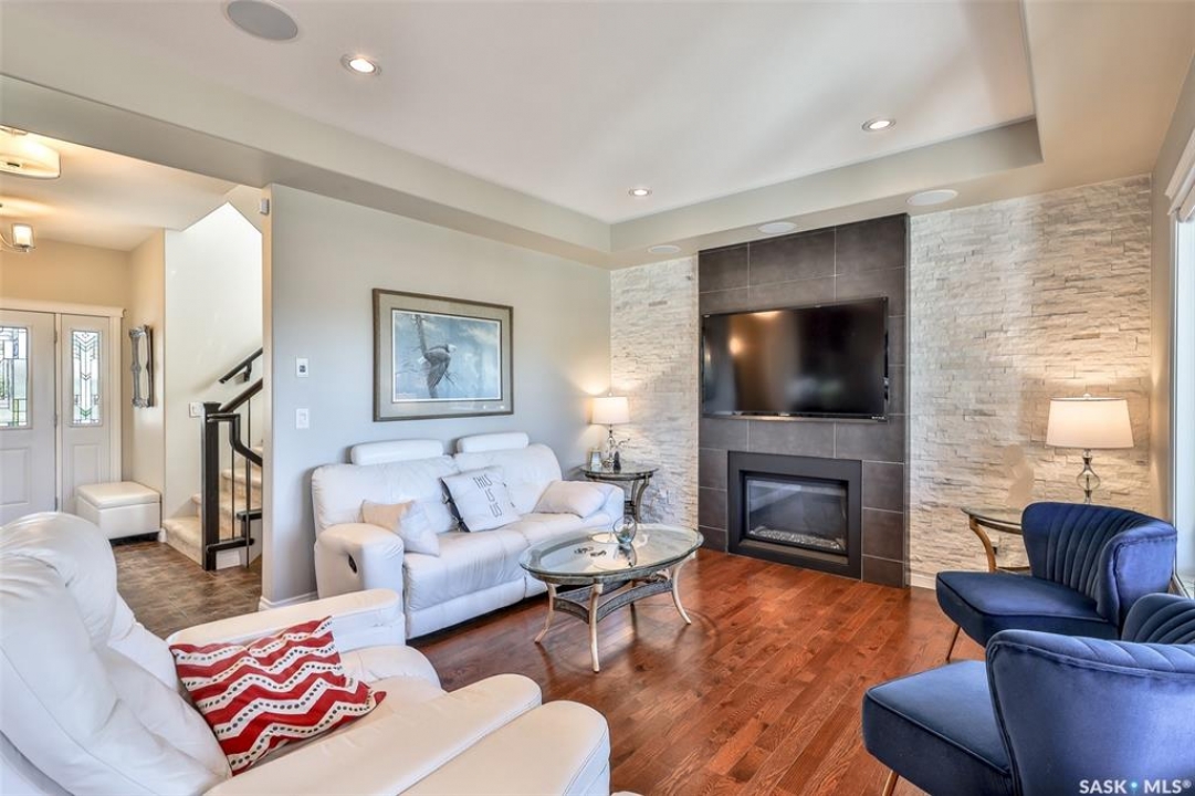 Welcome to 200 Clubhouse blvd! Conveniently located close to the Legends Golf Course, this beautiful family home is near the sports centre, grocery stores, walking trails & other amenities. Value everywhere, starting outside. Notice the massive rubber finish driveway (parks 6 cars), cozy covered front porch (South facing) & gorgeous plants/shrubs which are all on drip lines. Backyard also has an abundance of plants/shrubs (full automated irrigation system). 2 tier composite deck (partially covered), w/ built in hot tub & much privacy w/ fog glass panels. Also, a garden area, open grass area for kids to play, big shed, & a 16' gate at the back corner for pulling in boats/RV's/ trailers with ease. Main level inside has an functional layout with high-end hardwood & tons of natural light giving it a bright/crisp feel. Kitchen boasts large island w/ waterfall granite surface, under cabinet lighting & backsplash. Nat gas line plumbed in behind stove & has closed permit. Stunning white stone wall w/ nat gas fire place in living room. 3 bedrooms on 2nd level, one of which is the primary bedroom w/ big walk-in closet & luxurious en-suite bathroom (double sinks/shower/ oversized soaker jet tub). Notice the glamorous light fixture when you walk up to the 2nd level. More features: projector (included), dimmer lights, granite throughout bathrooms, main level laundry/mudroom, & nat gas to BBQ. Seller is original owner & has updated many fixtures and blinds to top notch quality. Basement has a thoughtful plan w/ cozy living room (2nd nat-gas fireplace), nook for an office area, & lots of storage. 4th bedroom can be done by simply adding one wall. Glamorous 3 piece bathroom down w/ tile walk-in shower & heated tile floor. All new carpet upstairs, new dishwasher and custom shelving in closets. Triple attached garage (finished/heated).. perfect for storing toy's. Wonderful street appeal needs to be seen in person to fully appreciate pride of ownership. This home has it all!