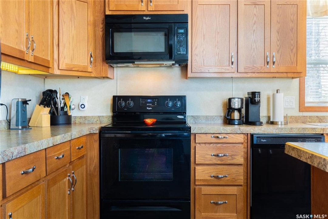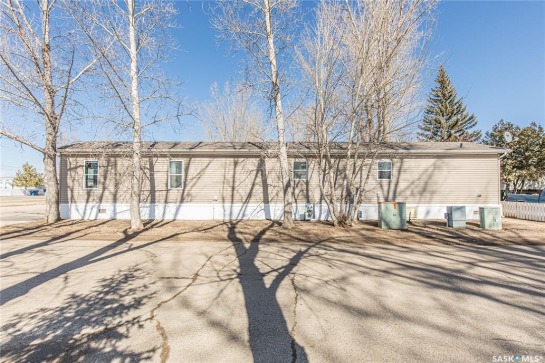 Welcome to this well-maintained 2015 mobile home located in the desirable Prairie Oasis Trailer Court! Situated on a partially fenced corner lot, this property offers a great blend of comfort, functionality & outdoor space. Outside you can enjoy the landscaped yard complete with lawn, perennials & a garden area-perfect for those who love spending time outdoors. The home features both a front & back deck, ideal for relaxing or entertaining. A standout bonus is the fully equipped “he/she shed” offering electric baseboard heat, A/C & power. Even better, the heat can be turned on from inside the home for added convenience. This versatile space also includes cabinets, a fridge & a TV mount-perfect for a hobby space, office or retreat. Inside the home, you'll find a bright open-concept layout connecting the kitchen, dining & living room. The kitchen offers ample oak cabinetry with soft-close features, plenty of counter space & a large eat-at island-chairs included-eliminating the need for a dining table. The living room features newer carpet (2025), adding a fresh & cozy feel. This home offers 3 bedrooms & 2 bathrooms. At the front, there are two bedrooms along with a 4-piece main bathroom. The primary bedroom is privately located at the rear, featuring newer carpet (2025), a walk-in closet & a 3-piece ensuite. Additional highlights include C/A, 100-amp service & a utility room with laundry. The home is CSA approved, properly tied down & includes heat tape on sewer & water lines. Exterior updates include vinyl siding completed in 2019. All major appliances are included: fridge, stove, built-in dishwasher, garburator, microwave hood fan, water filtration system, washer & dryer. Affordable, move-in ready & packed with extras-this is a fantastic opportunity you won't want to miss! Monthly fees are $851.97 which breaks down to $146.11/m for city taxes, $16.86/m for garbage/recycling & $689/m for lot rent which includes water, sewer, snow removal, park maintenance