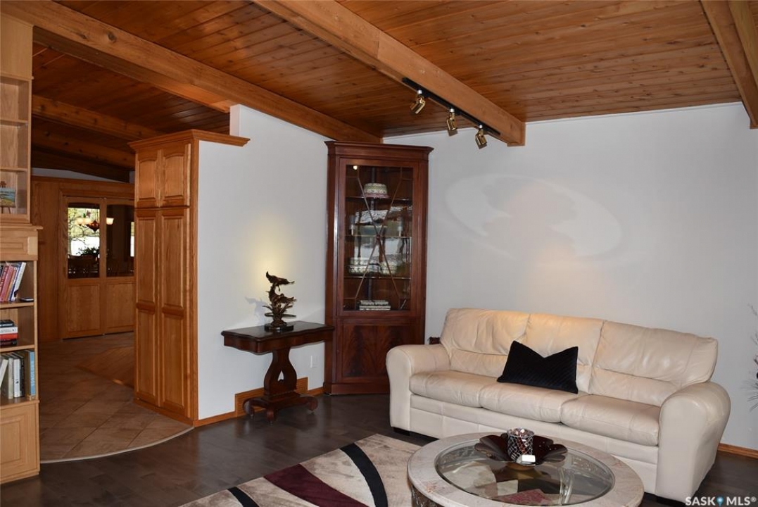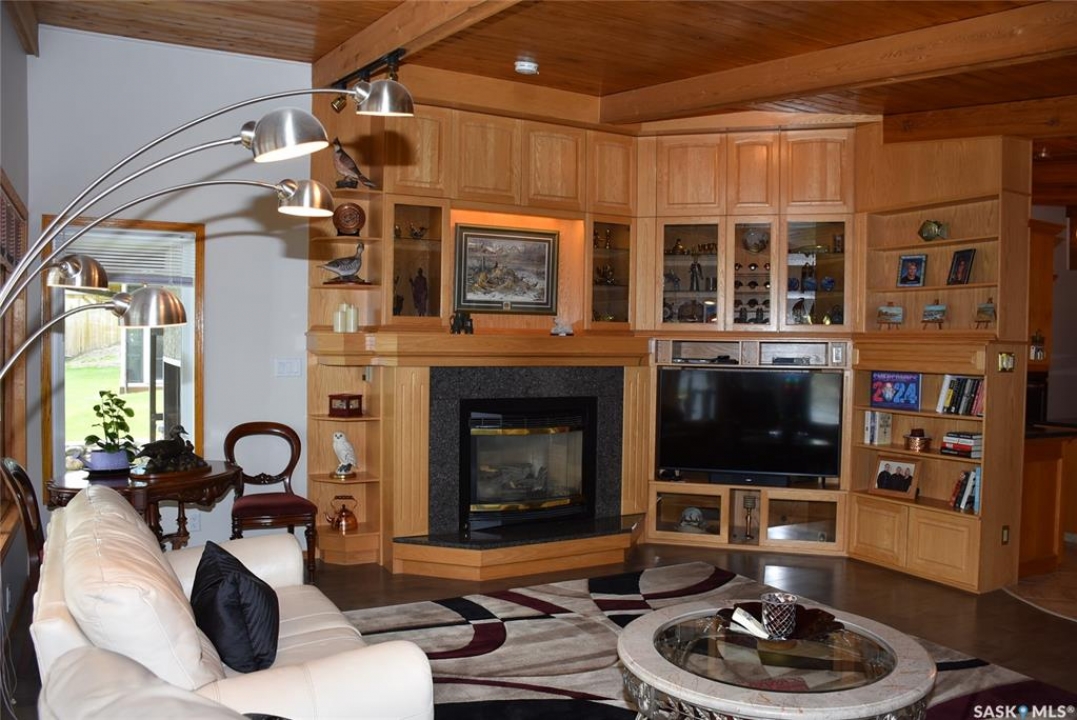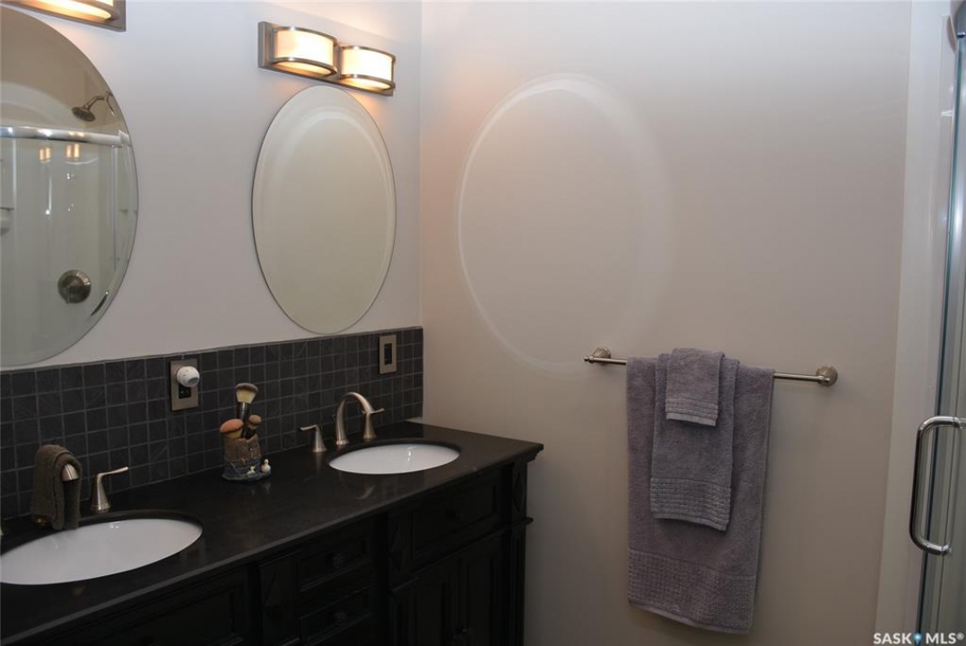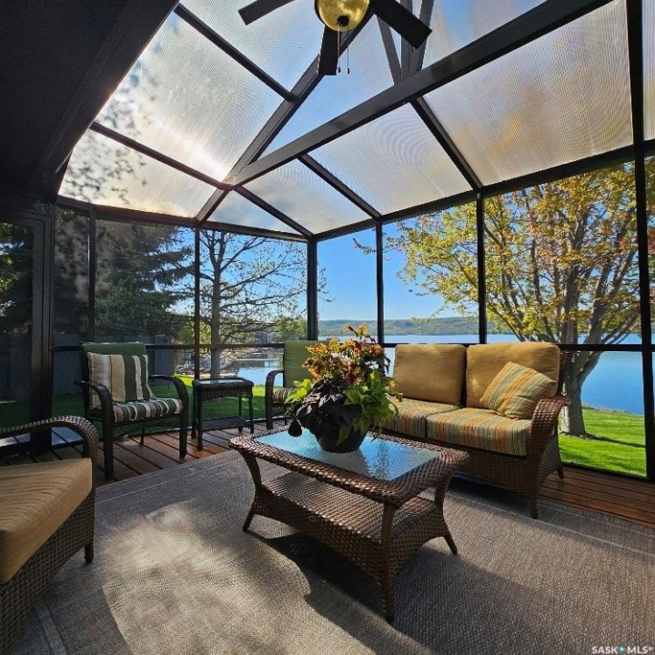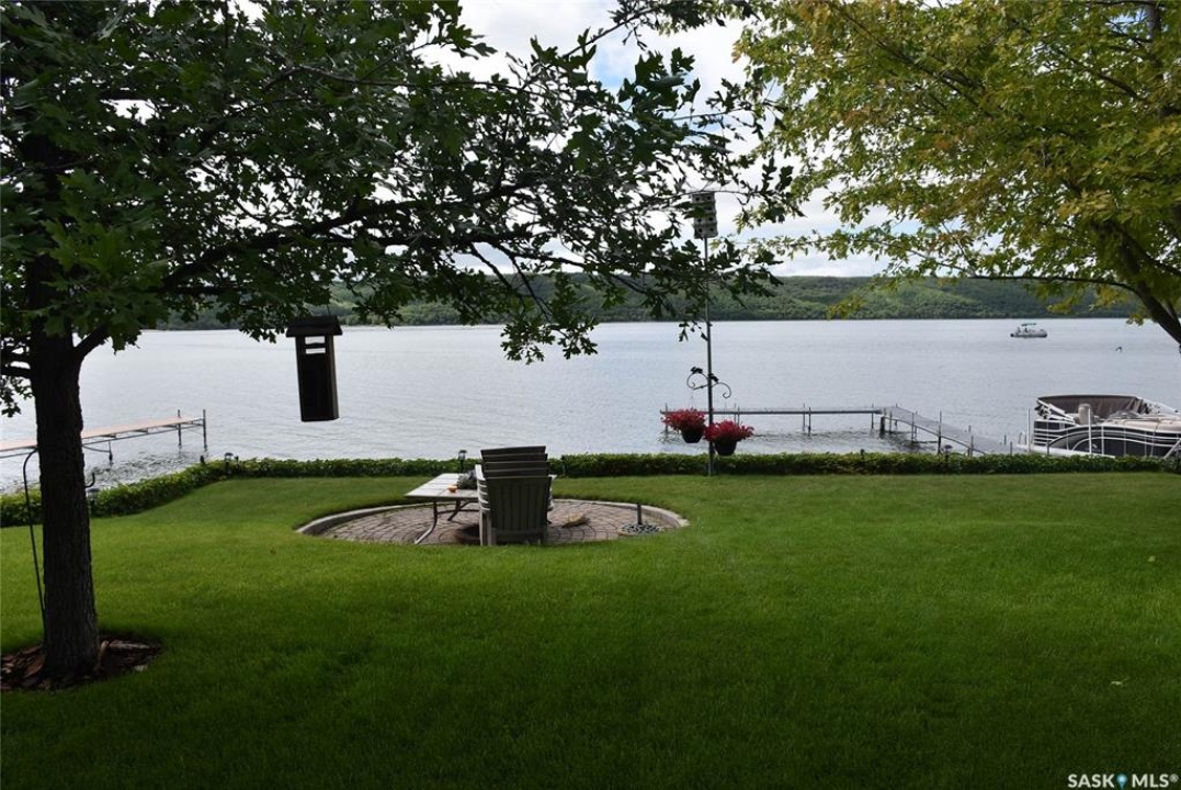 This outstanding lakefront property is located on the East end of Pasqua Lake and has been offered for sale. The property has a level private drive which leads to this stunning lake shore home. When you approach the house, you will notice the real stone and stucco siding and the large parking area. Once inside the kitchen and dining room offers an open concept with vaulted ceiling, beautiful, appointed kitchen with ample storage space. The Dining room is spacious and bright with access to the private deck. The Living room is relaxing with a gas fireplace, vaulted ceiling, hardwood flooring and access to the beautiful screened in sunroom with panoramic views of the lake and is a fantastic spot for your morning coffee or just relaxing with friends. There are four bedrooms on the main with the primary having a large walk-in closet and 3-piece ensuite. The laundry room is conveniently located on the main floor with an amazing amount all new cabinets. The large second floor office has views of the lake and ample space for a workout area or murphy bed for large groups, and the bonus room has a 3-person sauna. The attached heated, 28 x 32 garage is completely finished with PVC interior panels for a clean look, polyaspartic flooring, 10-foot ceiling, 8x10 and 8x12 garage doors, slatwall panels and storage and metal garage storage cabinets. There is a new 18-kilowatt Generac generator ,chemical free iron filter. This property is complete with pier, track, boat dolly, winch with remote, and canopy for the boat dolly. The grounds are immaculate and offer 70 feet of level shoreline with underground sprinklers, flower beds, large lake front grassed area for the kids to play and a beautiful firepit next to the shoreline. There is parking space for 6 vehicles. This is one of the closest properties to the city and is only 1 km to the new convenience store and gas bar. This is one of the premium properties in the valley and must be viewed to appreciate all the upscale amenities.