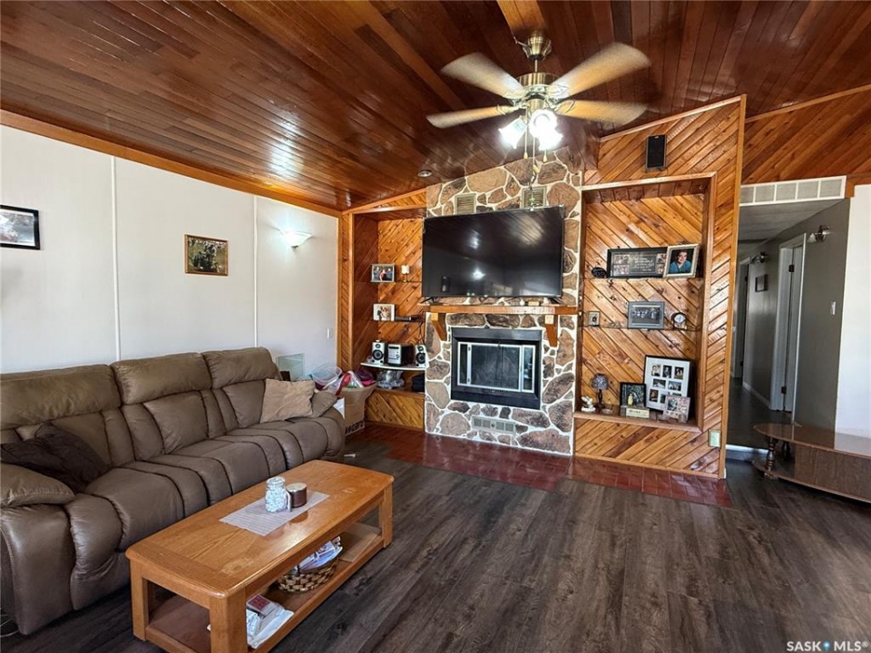Welcome to this spacious and move in ready 1,560 sq ft home offering 3 bedrooms and 2 bathrooms, including a private ensuite with a beautifully updated tile shower. This home features a functional layout with generously sized bedrooms and a warm, inviting main living area highlighted by an impressive vaulted ceiling with wood accents. The kitchen is well-equipped with a wall oven, cooktop, fridge/freezer combo, stand up freezer, dishwasher, and ample workspace—perfect for everyday living and entertaining. Laundry is made easy with the included washer and dryer, and extra pantry storage near the kitchen. Important updates include windows (2005), high efficient furnace (2013), shingles (2012) and water heater (2024), providing peace of mind for years to come. Step outside to enjoy the mostly fenced yard featuring underground sprinklers in both the front and back, a garden shed tucked behind the garage, and an additional parking pad for extra vehicles or toys. The heated 20x24 detached garage is ideal for year-round use, and there is covered parking right off the side entrance in to the house. No basement means easy, single-level living with everything conveniently on one floor. A fantastic opportunity to own a solid, well-cared-for home with great features and functional space—ready for its next owner!