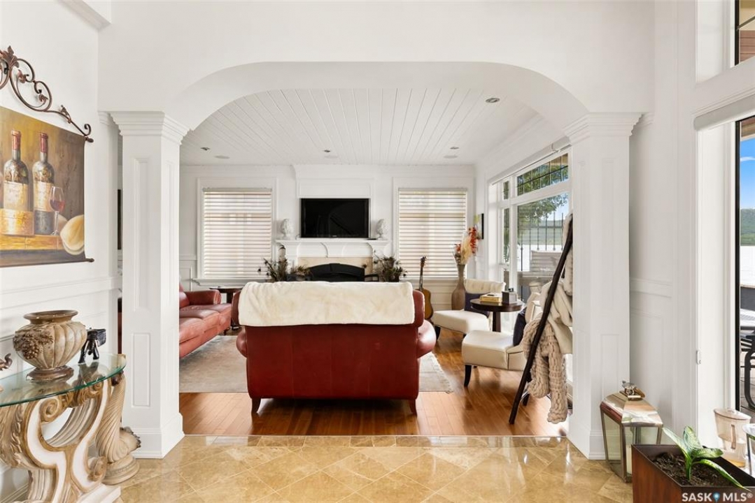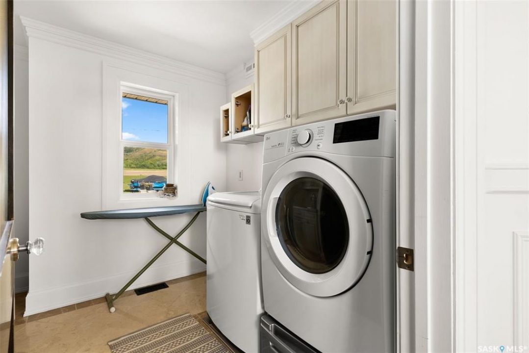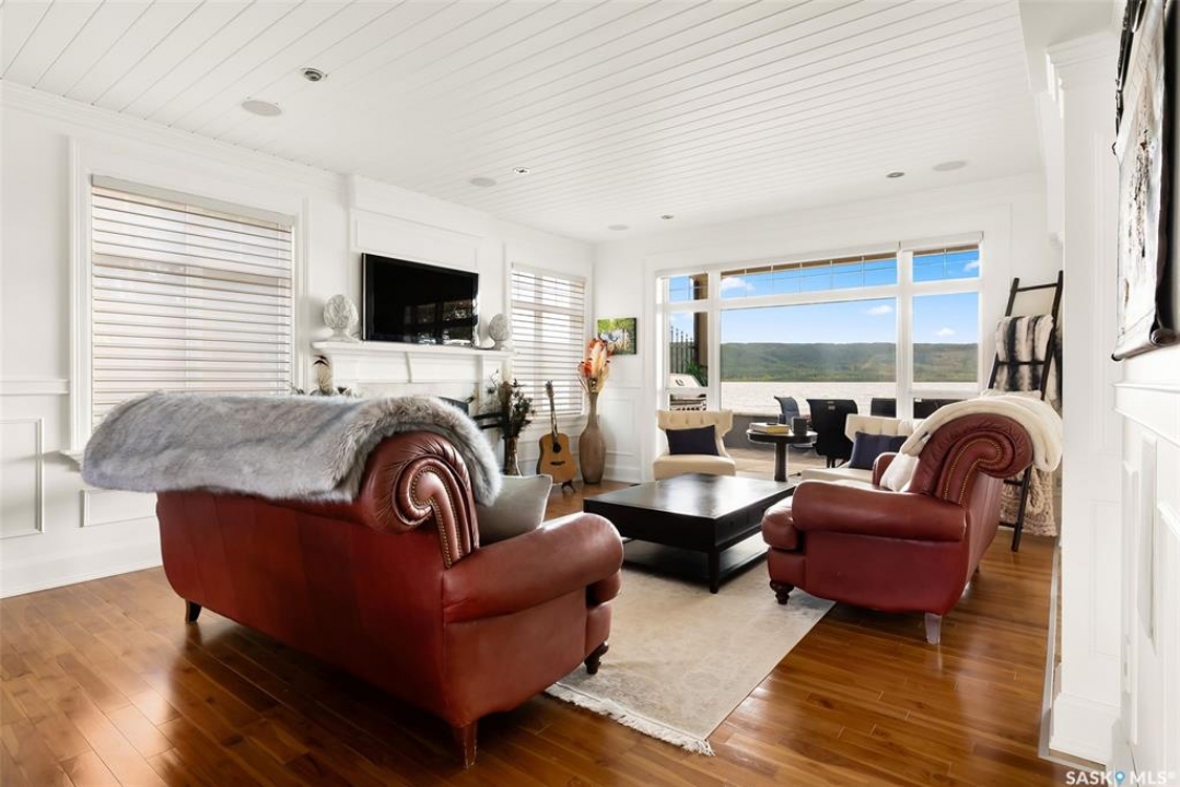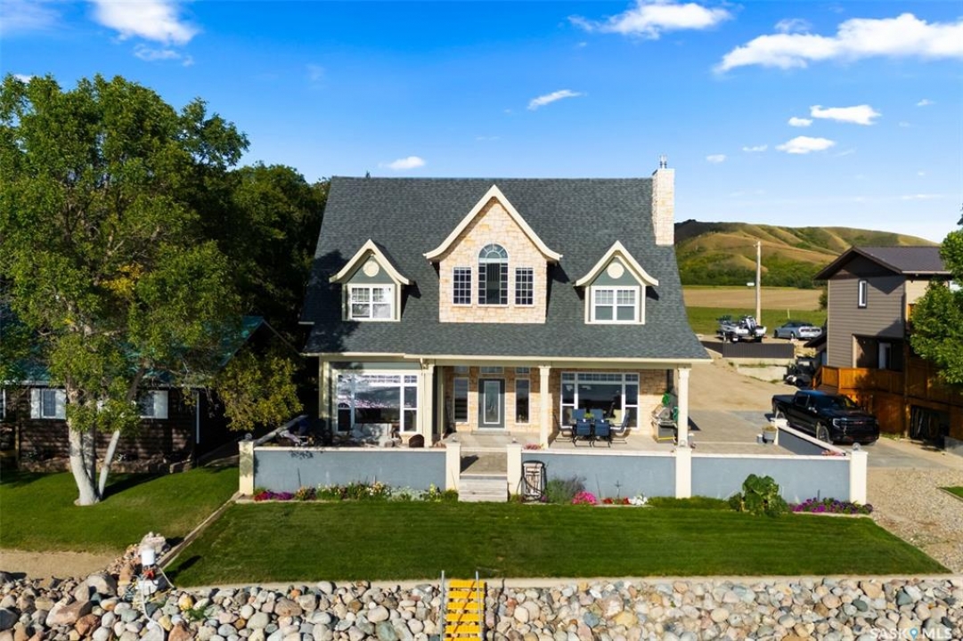 Exceptional lakefront home located at Round Lake. Stunning design and craftsmanship in this 3630 square foot 3 storey property. 5 bedrooms, 3 baths and Custom features throughout including gourmet kitchen with huge island/high end appliances/large walk in pantry/stone countertops and much more, sitting area over looking the lake, large family sized dining space leading to a beautiful living room with gas fireplace. Soaring open 3 storey staircase leads to the upper floors with beautiful lake views, wood flooring, custom washrooms, 2nd floor laundry room, 3rd floor office with vaulted ceilings, 4 car detached/heated garage features lower garage/workshop area and a suite with open concept living-bedroom space/kitchen and 3 piece bath. Beautiful landscaping and outdoor entertaining space with stone patio/boat dock and much more. This year round home is located within 2 hours of Regina and is truly one of a kind in style and workmanship.