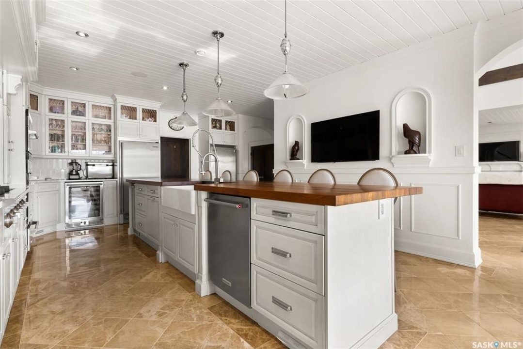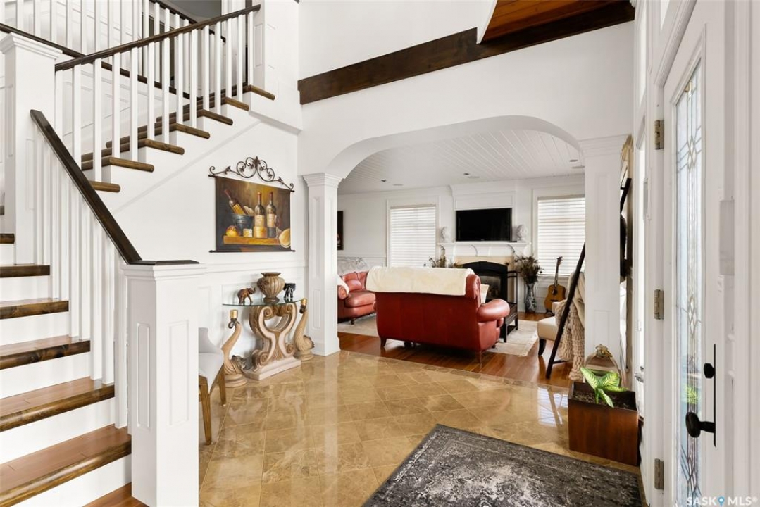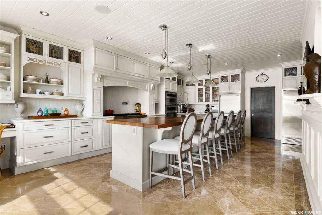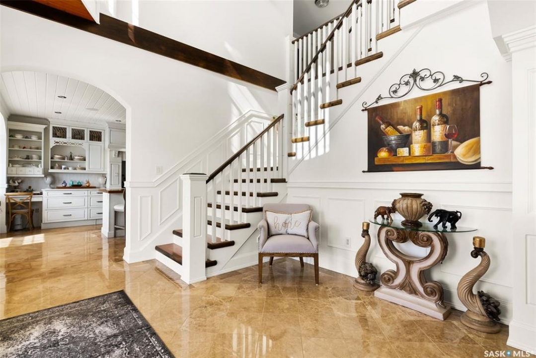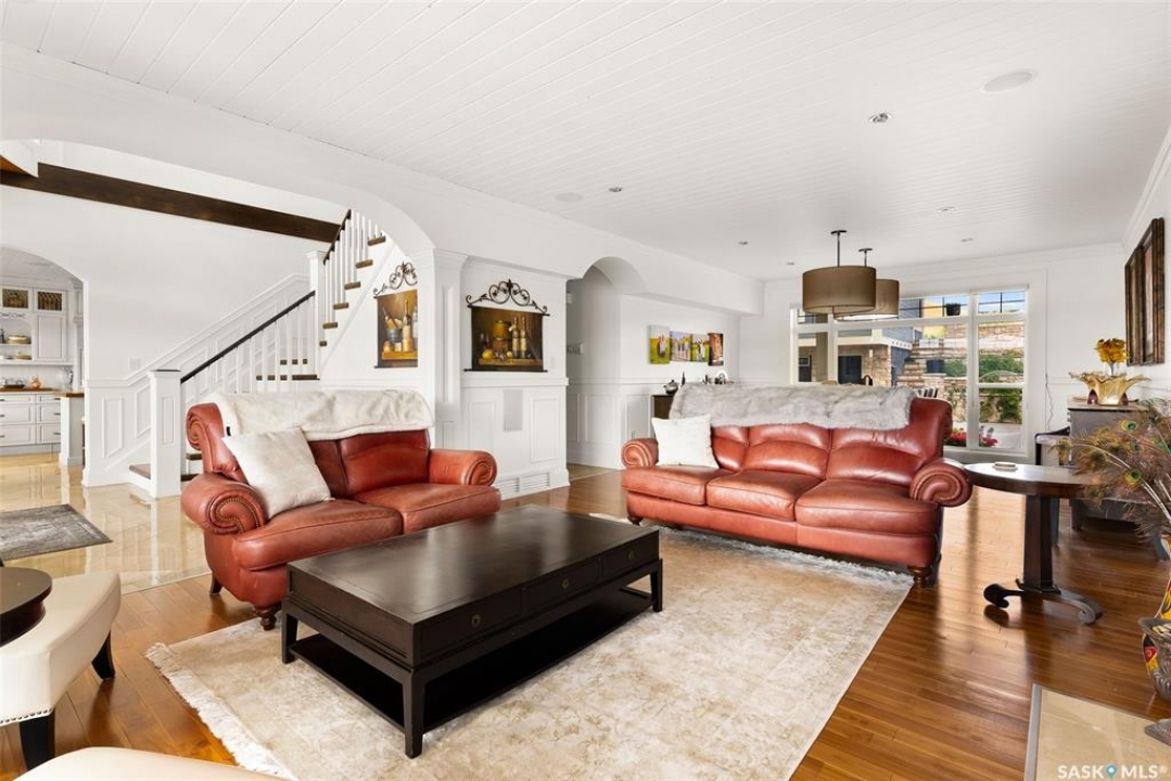 Exceptional lakefront home located at Round Lake. Stunning design and craftsmanship in this 3630 square foot 3 storey property. 5 bedrooms, 3 baths and Custom features throughout including gourmet kitchen with huge island/high end appliances/large walk in pantry/stone countertops and much more, sitting area over looking the lake, large family sized dining space leading to a beautiful living room with gas fireplace. Soaring open 3 storey staircase leads to the upper floors with beautiful lake views, wood flooring, custom washrooms, 2nd floor laundry room, 3rd floor office with vaulted ceilings, 4 car detached/heated garage features lower garage/workshop area and a suite with open concept living-bedroom space/kitchen and 3 piece bath. Beautiful landscaping and outdoor entertaining space with stone patio/boat dock and much more. This year round home is located within 2 hours of Regina and is truly one of a kind in style and workmanship.