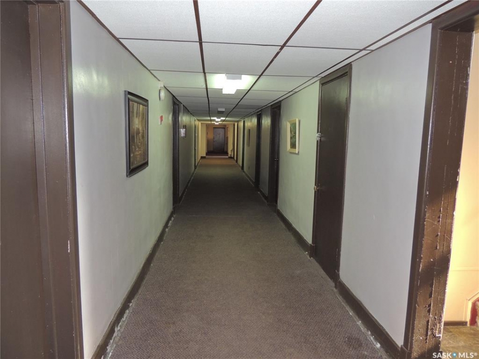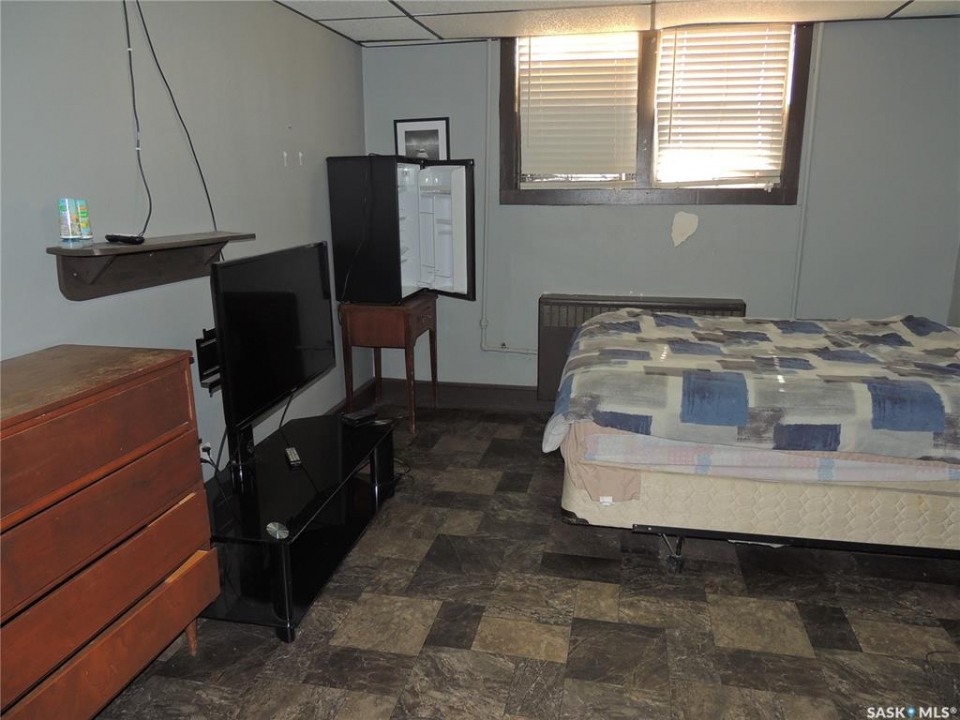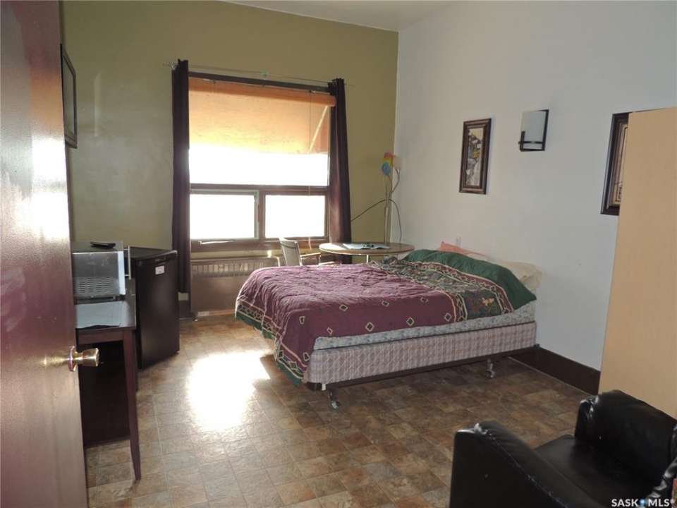 This building consists of 19 units. There is one two bedroom unit with a private bathroom and kitchen, and one one bedroom unit. There are an additional 17 private rooms with shared amenities. The building has a laundry room and kitchen on each floor. There are also shared bathrooms for the units. It is in a great location in Bienfait for ease of access to the mines and Shand power station.