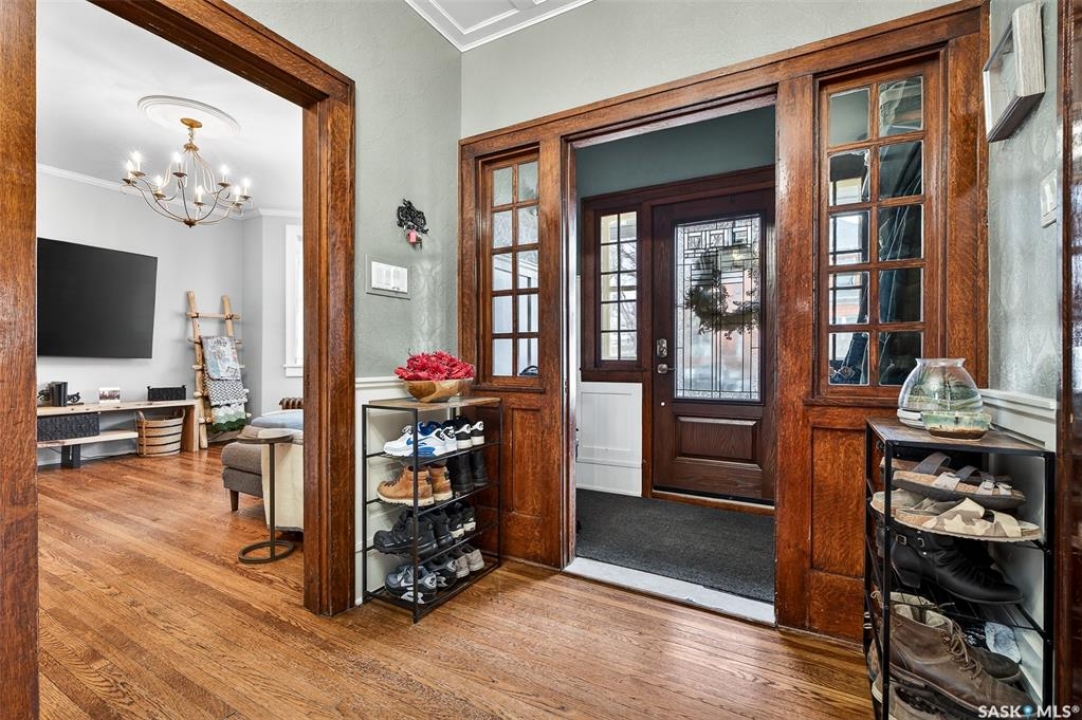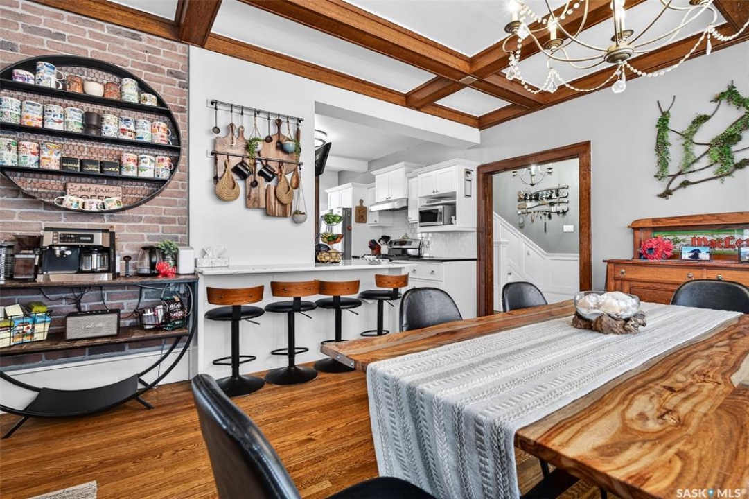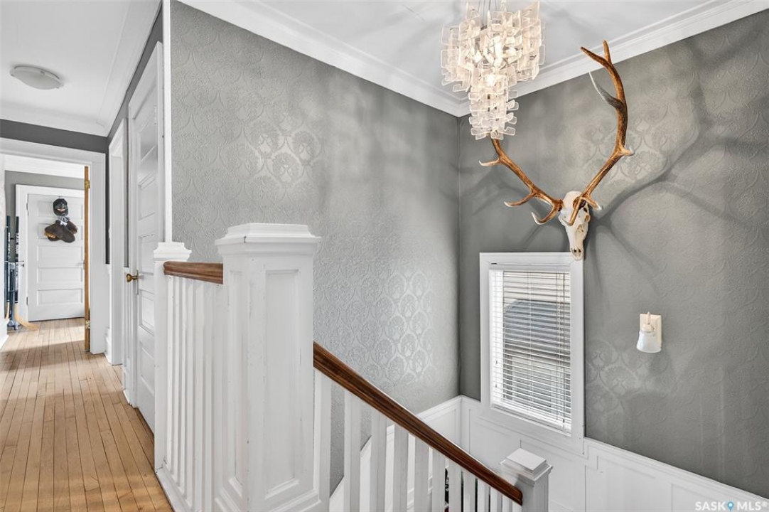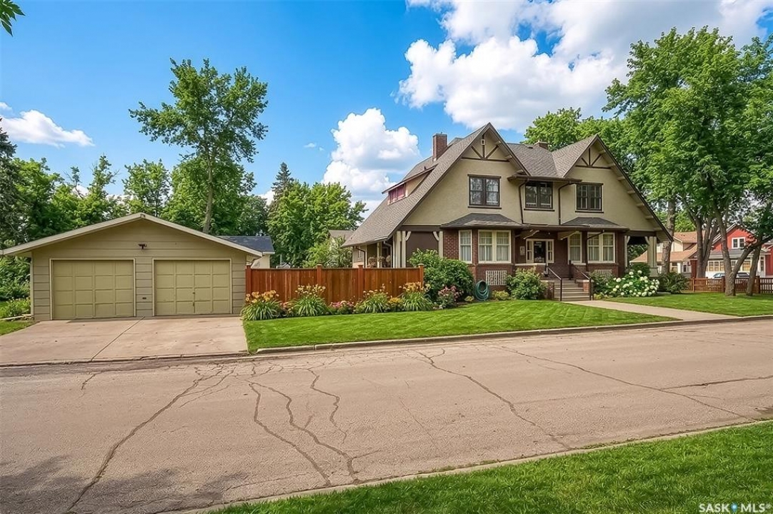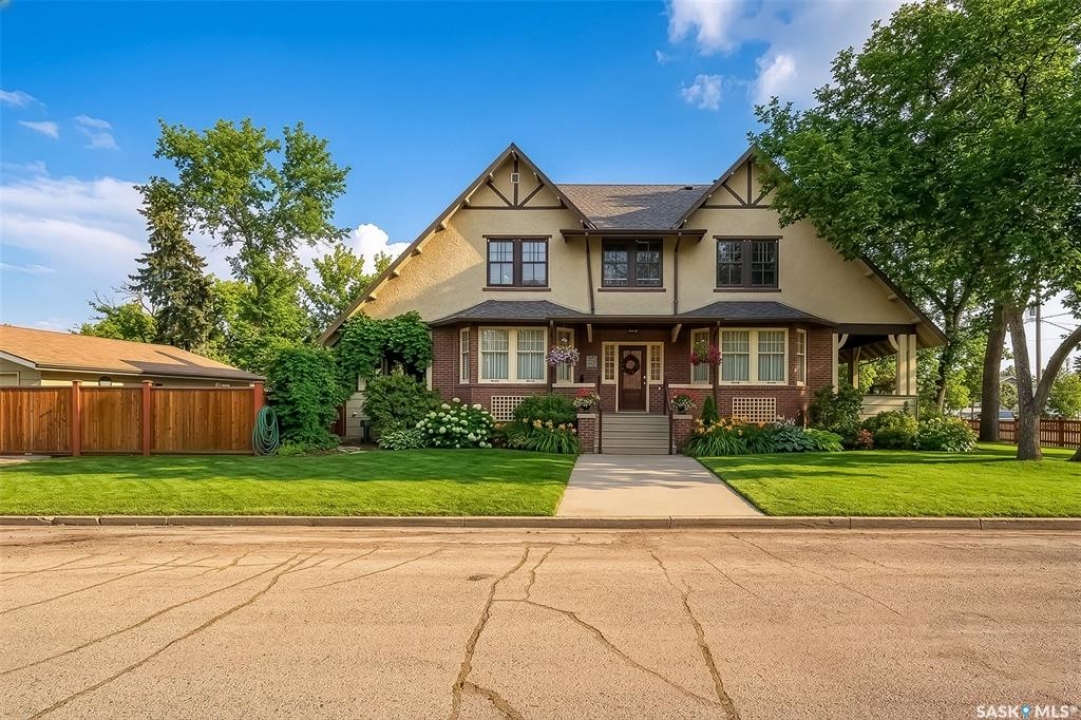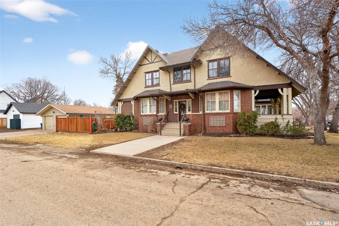 Welcome to 161 Marlborough in the beautiful, tree-lined Avenues of Historic Moose Jaw! This spacious home is the epitome of classic character style meets modern updates! Step into the spacious foyer and try not to fall in love instantly! Take in all the gorgeous hardwood flooring, and stunning dark trim, doors and beams! To your right – a bright family room with decorative fireplace and mantle at the center, with large bay window. Hidden through you will find dark and moody office sanctuary with access to your first of many outdoor spaces to enjoy - a covered veranda. Head back through to the part of any home, the kitchen and dining space! The large dining area features an eye-catching brick wall, tons of natural light and patio door to your second outdoor veranda. This kitchen offers an amazing layout, ample storage, and a beautiful mix of both quartz and granite countertops! Continue back and find a guest bath and oversized laundry area/mudroom both with tons of storage! The beauty and character continue to the second floor where you will find three bedrooms, a full bath, an oversized master with walk-in closet and 3-piece ensuite! The basement has tons of potential for a fifth bedroom as well as an additional living area! Basement offers storage for all your needs as well as a cold storage. Finally, head outside to your beautiful Backyard Oasis! Backyard is fully fenced with above-ground pool and built-around decking, zeroscaped patio space and artifical turf! All you need to do is enjoy it! Package complete with Double detached, heated garage! Updates: Plumbing '08, Electrical '12, Roof/shingles on house '20, and BRAND NEW boiler! This is a home you need to see to truly appreciate!
