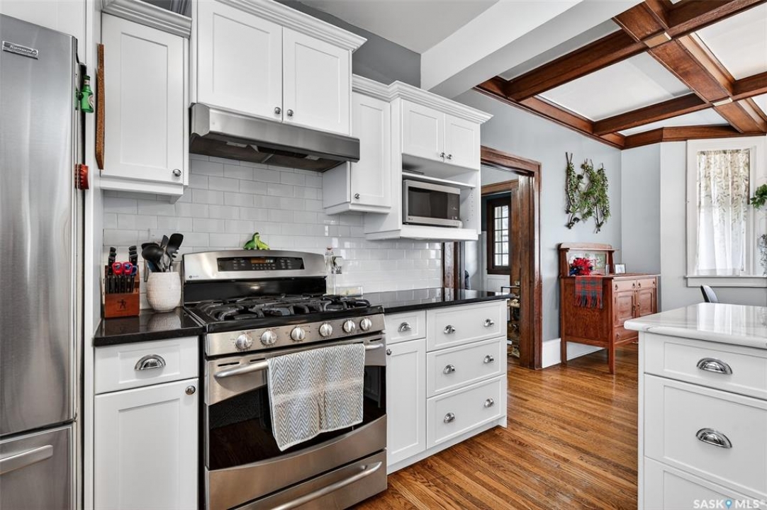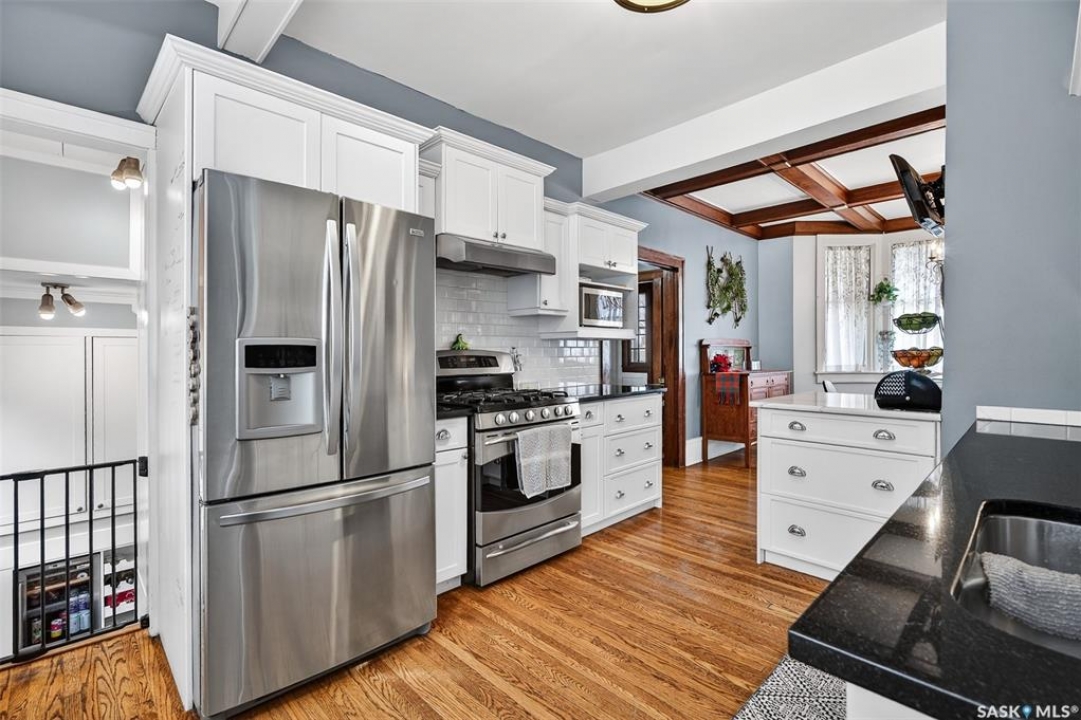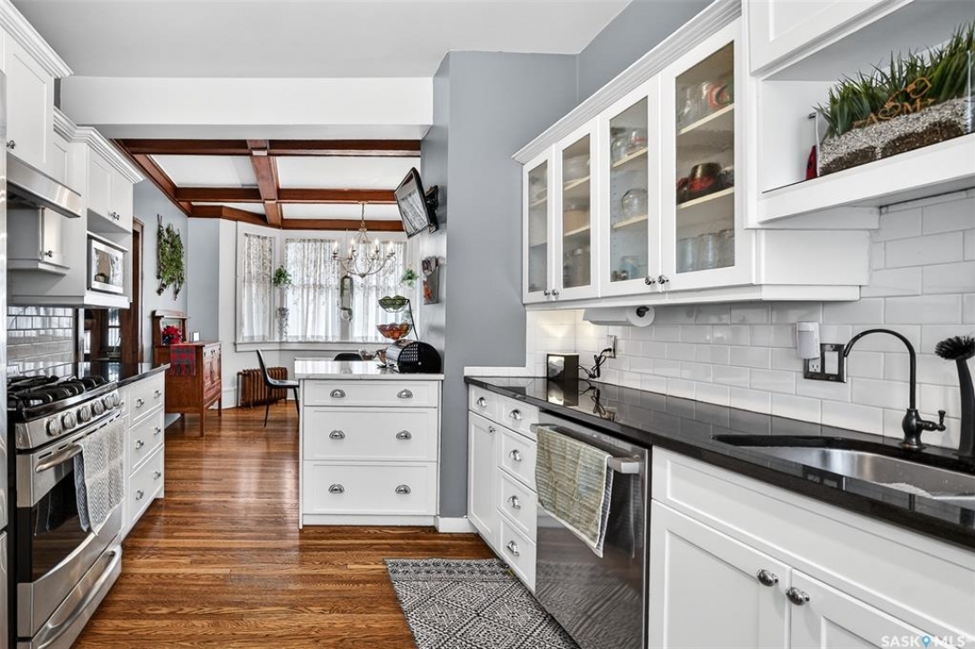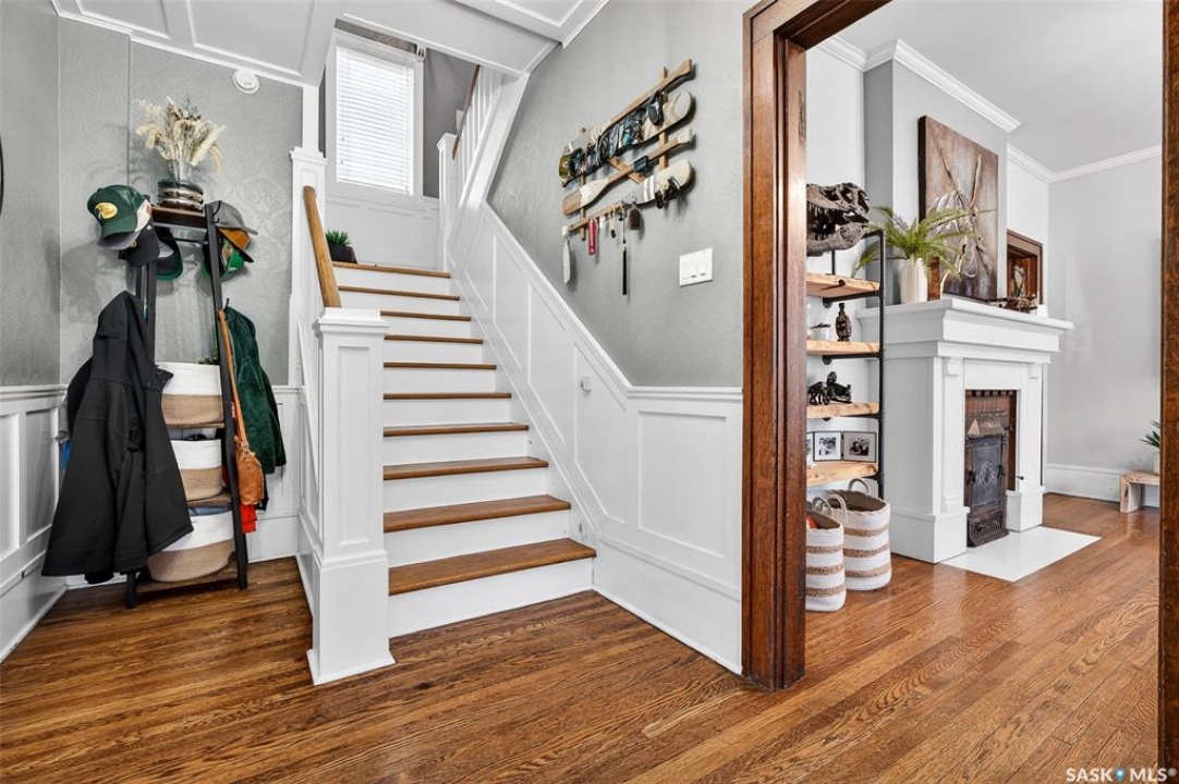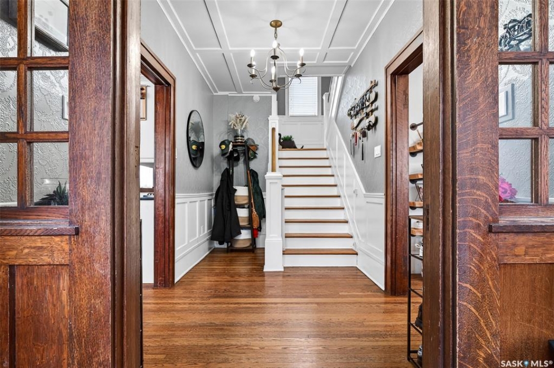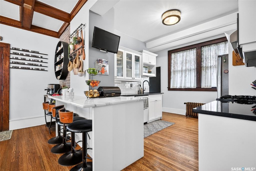 Welcome to 161 Marlborough in the beautiful, tree-lined Avenues of Historic Moose Jaw! This spacious home is the epitome of classic character style meets modern updates! Step into the spacious foyer and try not to fall in love instantly! Take in all the gorgeous hardwood flooring, and stunning dark trim, doors and beams! To your right – a bright family room with decorative fireplace and mantle at the center, with large bay window. Hidden through you will find dark and moody office sanctuary with access to your first of many outdoor spaces to enjoy - a covered veranda. Head back through to the part of any home, the kitchen and dining space! The large dining area features an eye-catching brick wall, tons of natural light and patio door to your second outdoor veranda. This kitchen offers an amazing layout, ample storage, and a beautiful mix of both quartz and granite countertops! Continue back and find a guest bath and oversized laundry area/mudroom both with tons of storage! The beauty and character continue to the second floor where you will find three bedrooms, a full bath, an oversized master with walk-in closet and 3-piece ensuite! The basement has tons of potential for a fifth bedroom as well as an additional living area! Basement offers storage for all your needs as well as a cold storage. Finally, head outside to your beautiful Backyard Oasis! Backyard is fully fenced with above-ground pool and built-around decking, zeroscaped patio space and artifical turf! All you need to do is enjoy it! Package complete with Double detached, heated garage! Updates: Plumbing '08, Electrical '12, Roof/shingles on house '20, and BRAND NEW boiler! This is a home you need to see to truly appreciate!