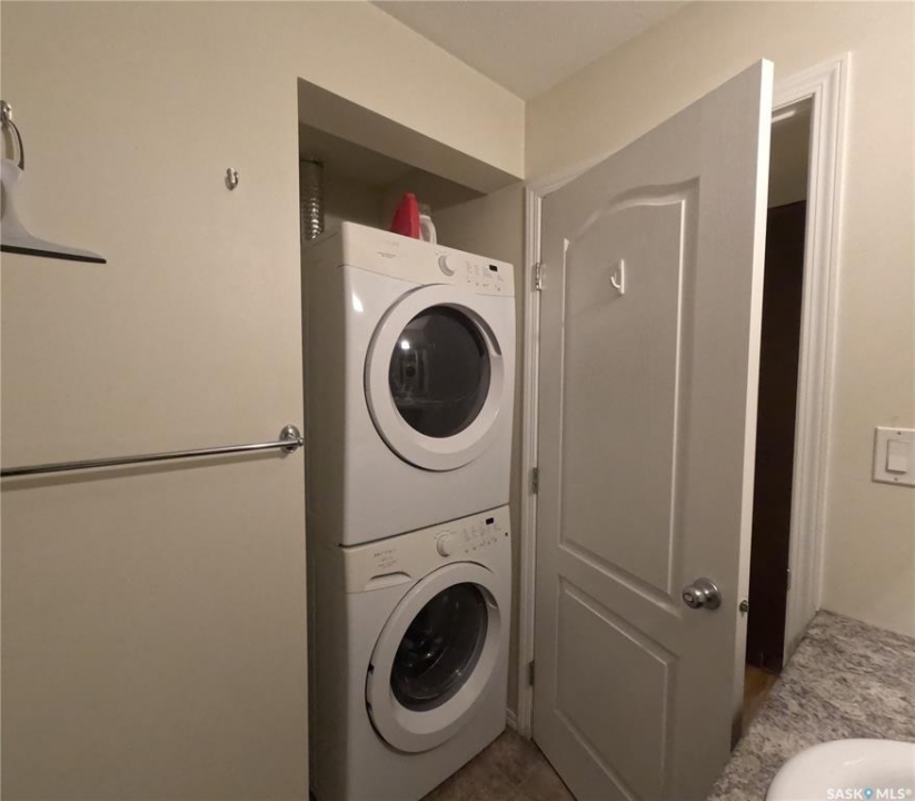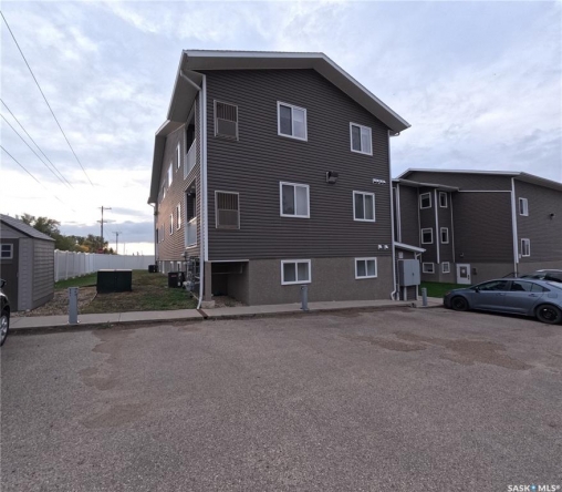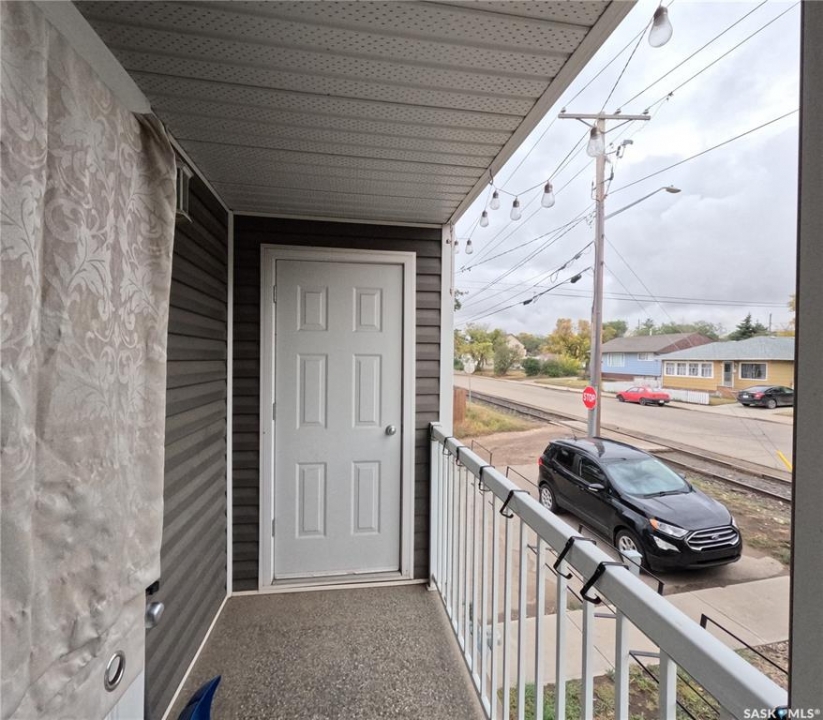 Stylish, Move-In Ready, Modern condo featuring a bright open-concept design that's both functional and inviting. The contemporary kitchen boasts a large island with breakfast bar — perfect for cooking, entertaining, or enjoying a quick meal. All appliances are included for your convenience! Just off the kitchen, a private balcony offers the ideal spot to relax and enjoy your morning coffee. The sun-soaked living room is filled with natural southern light, creating a warm and cheerful atmosphere. This home includes two spacious bedrooms with newer carpet, plus a versatile bonus room with elegant glass French doors — ideal as a home office, den, or dining space. A full bathroom and convenient in-suite stackable laundry add to the comfort. Located near Wakamow trails for scenic nature walks, just 4 minutes to the base and 2 minutes to downtown. Your designated, electrified parking stall is right outside the secure front entrance. Enjoy a truly carefree lifestyle — perfect for first-time buyers, retirees, or anyone seeking a pet-friendly, low-maintenance home.