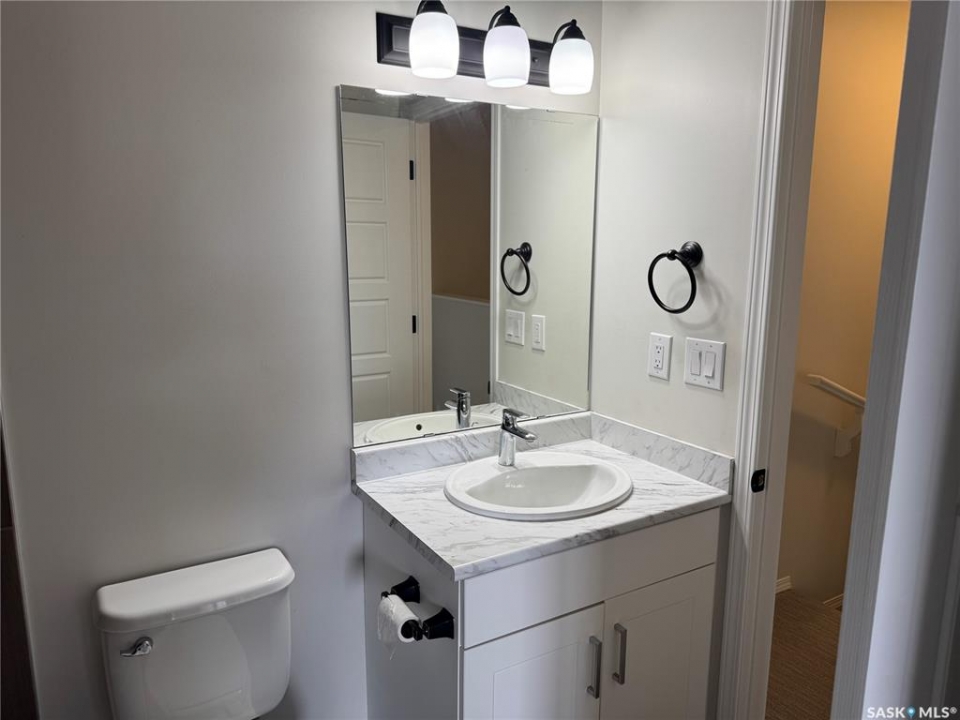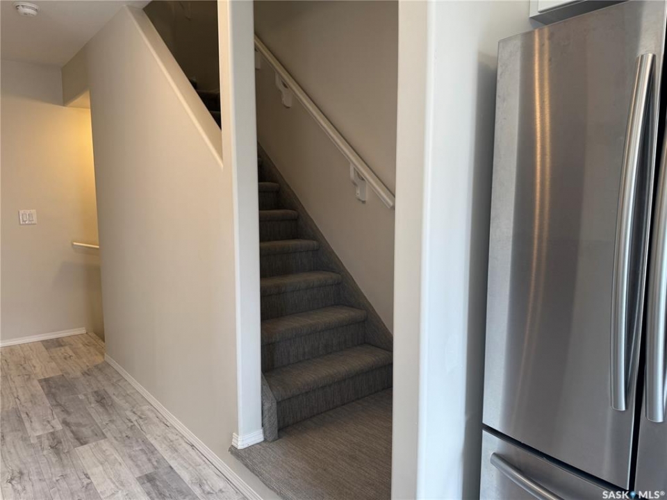 Welcome to effortless living in the sought-after gated community of Little Tuscany in Stonebridge! This stylish, move-in ready townhouse style condo offers a smart, multi-level layout designed for comfort and convenience. The ground floor welcomes you with direct access from the attached single garage, along with a spacious laundry area that provides plenty of extra storage. Upstairs, the main living space is bright, open, and perfect for entertaining. The kitchen shines with crisp white cabinetry, stainless steel appliances, a functional eat-up bar, and easy access to your private balcony—ideal for morning coffee or evening unwinding. The dining area and family room are flooded with natural light and offer plenty of space to host family and friends, while a convenient powder room completes the level. The top floor is your private retreat, featuring two bedrooms including a generous primary with a walk-in closet and direct access to the full bathroom, complete with a relaxing jetted tub. Additional highlights include central air conditioning and central vacuum for added comfort and ease. Set within a well-maintained, gated community offering a clubhouse, fitness room, and sports court, and just minutes from schools, shopping, and all Stonebridge amenities with quick access to Circle Drive—this is low-maintenance living at its best. Don't miss your opportunity—book your showing today!