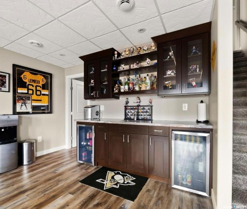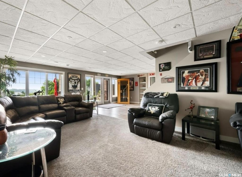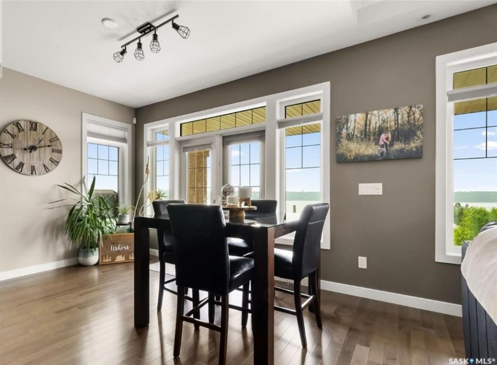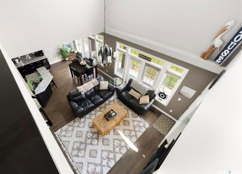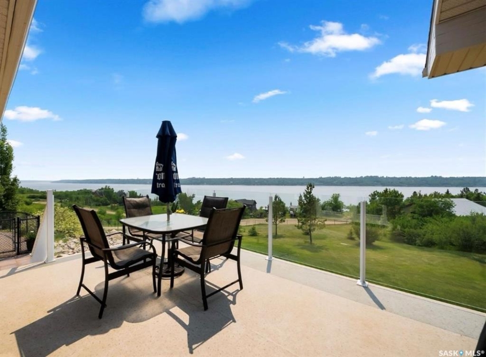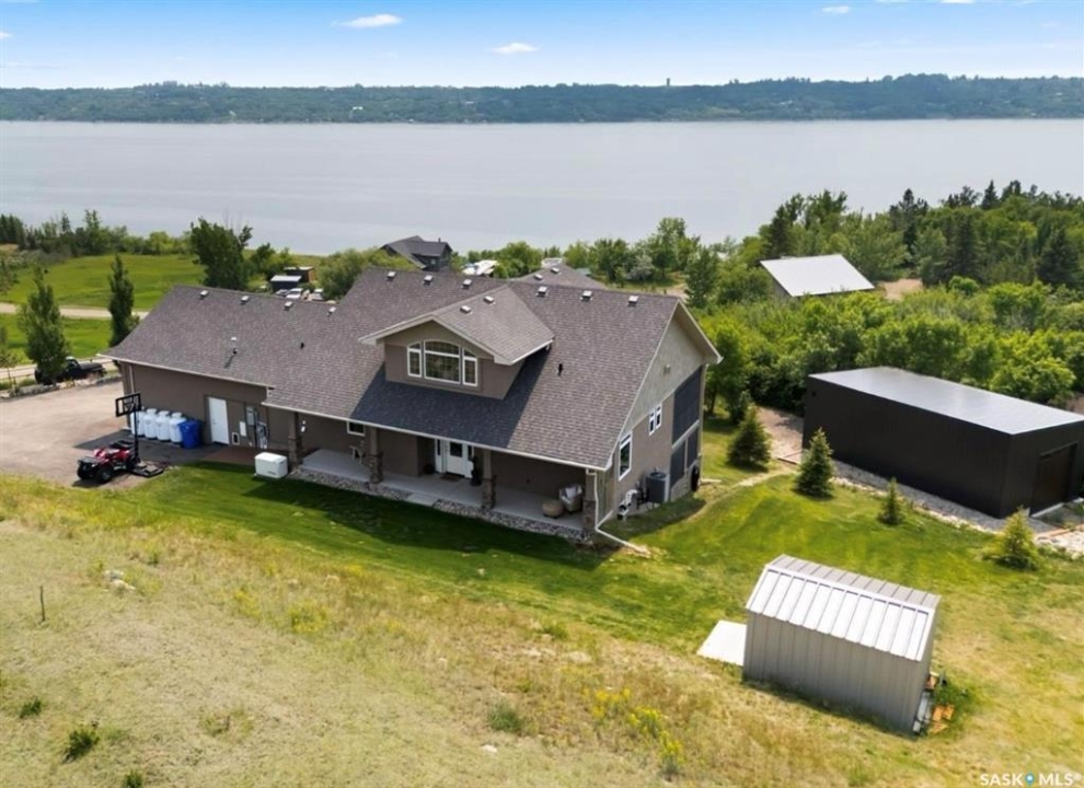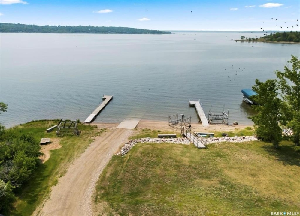 If stunning lake views and serene Saskatchewan skies are your vibe, you just stumbled onto a little slice of paradise you'll never want to leave. Situated on 1.26 acres in the friendly lake community of Shore Acres just 40 minutes outside of Regina, this amazing walkout bungalow is ready for new owners to make memories. Built by Varsity homes, the unique "california king" floor plan offers an open concept with 2 bedrooms on the main floor and a deck with access from both spanning nearly the entire length of the house. Trust me when I say - you've probably got the best view of anyone, from anywhere in this house. A cozy living area with gas fireplace accented with stack stone flows effortlessly into the dining area featuring access to the deck, and an eat-up island. Carrying on into the kitchen, enjoy an abundance of cabinetry, granite countertops, and stainless steel appliances. The primary room features built in shelving, a walk in closet, a 4pc ensuite with tile shower and soaker tub (another incredible view from here) and access to a screened in private deck. The other wing of the home features the second bedroom, main 4pc bathroom, and direct entry access to the 24x24 heated garage with epoxy flooring & mezzanine storage. Natural light dances throughout this home, and is especially bright in the upstairs loft. Flooded with windows, this space overlooks the main living room below, and is the perfect space for an office, art studio, or home schooling room. The basement is every man's dream - a wet bar with beer/wine fridge, room for a pool table, an expansive rec room with an entertainment unit fit for a king. Add on a 4pc bathroom, 2 additional super spacious bedrooms, and access to the yard, and this walkout basement simply feels like an extension of the main floor. There is a second driveway leading to the 24 x 34 heated shop, featuring 10 ft. doors front & back and a floor drain. This is truly a property you have to see and experience for yourself!