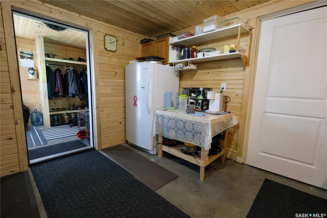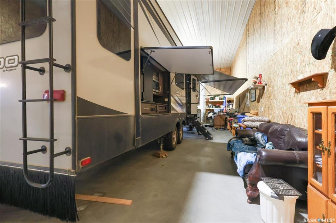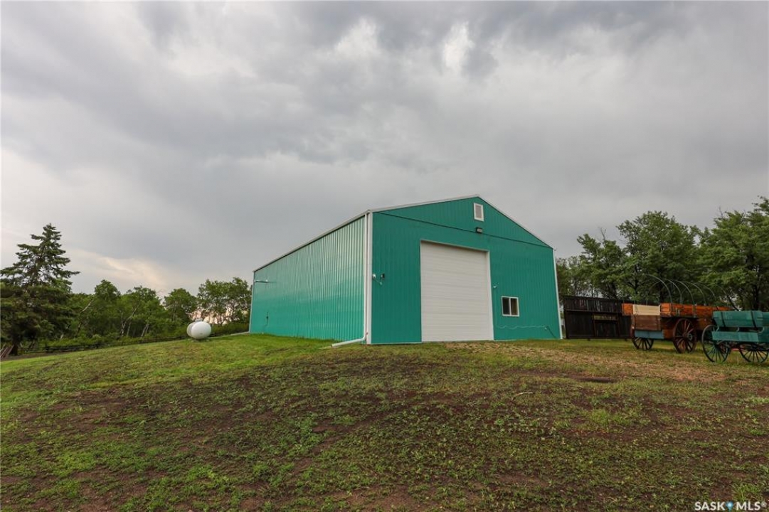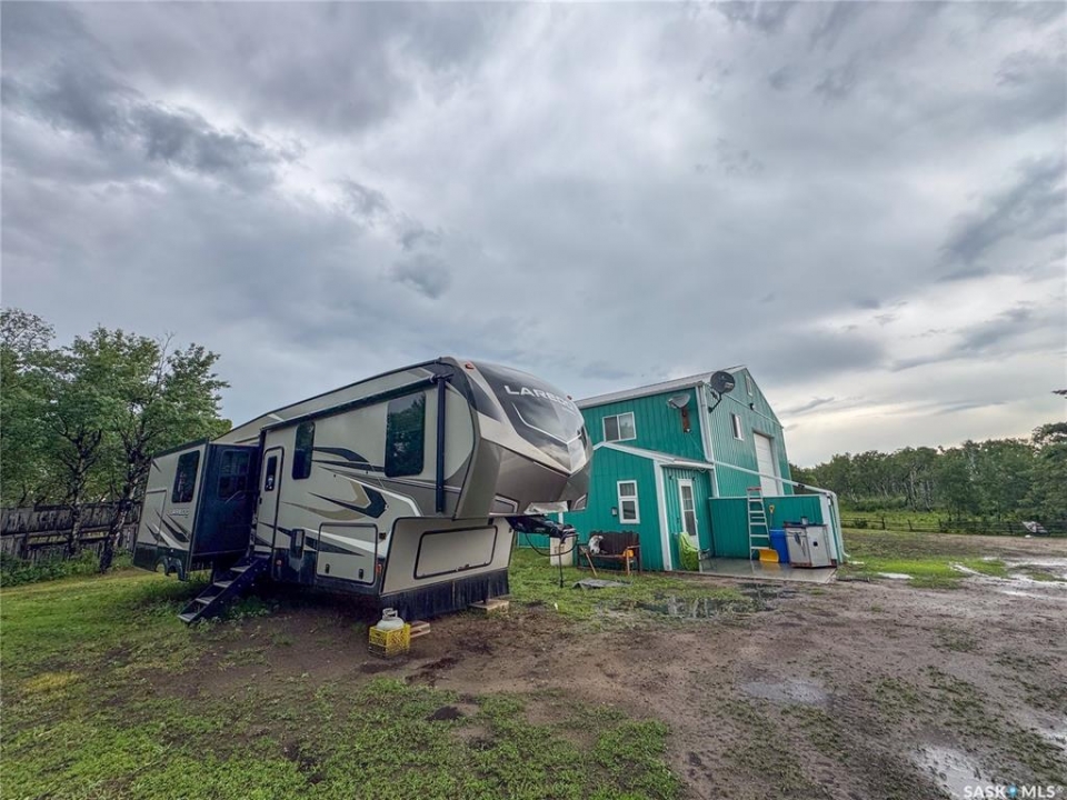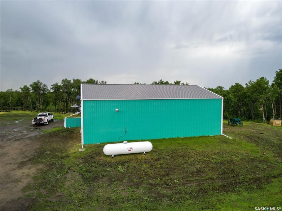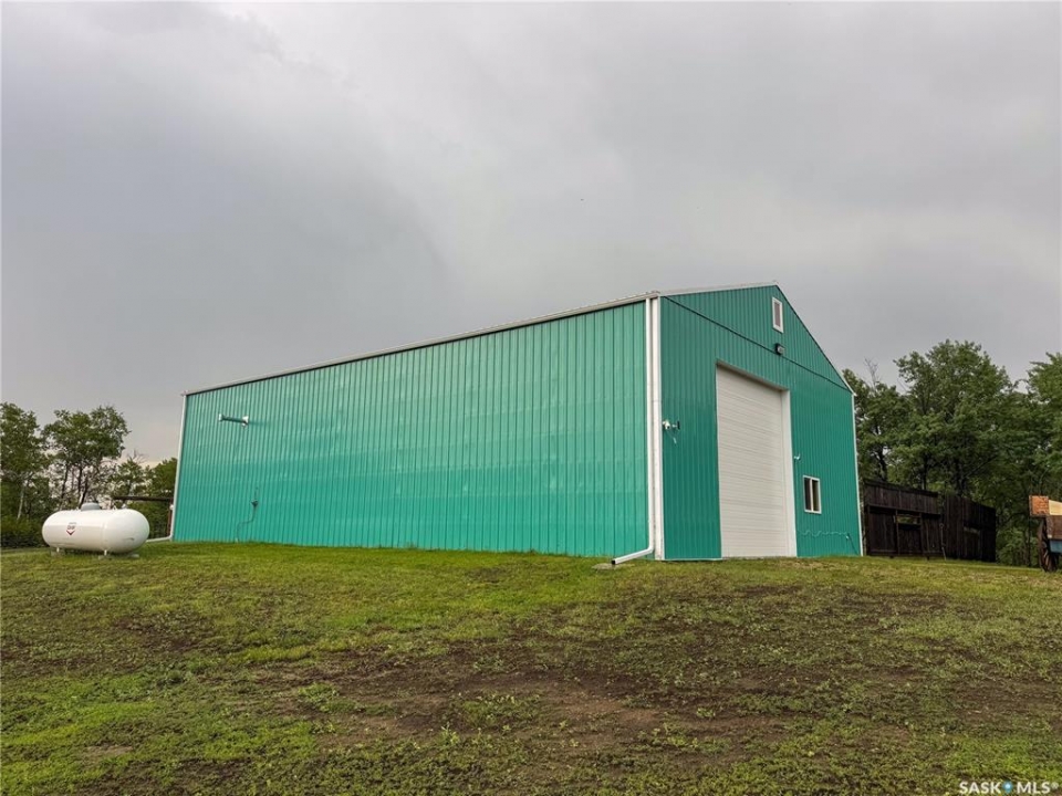 Remarkable 40 ft x 60 ft shop, built in 2021 and situated on 110.91 acres just 30 minutes from Prince Albert offers a perfect blend of functionality, space and privacy! This exceptional property features a spacious drive through shop with 14 ft overhead doors, providing ample room for large equipment or storage. The main floor includes a large workshop area, a cozy sitting space with ample cabinetry and a functional galley kitchen with sleek white cabinets. There is also a generous foyer and a 3 piece bathroom with a stand-up shower. The second level offers 2 sizable bedrooms, a combined laundry and bathroom area and an expansive storage room that provides plenty of space for all your organizational needs. Serviced by a 900 gallon concrete septic tank and a 54 ft well with a 36 inch diameter, this property provides a reliable water source, supplying approximately 25 ft of water. A brand new water softener and water filtration system was installed in 2026. The mature trees surrounding the property enhance the natural beauty and offer a sense of seclusion and privacy. Additionally, the property offers many trails throughout that are perfect for quading, hiking or simply enjoying the outdoors. This acreage offers plenty of space and versatile land creating exciting possibilities for a hobby farm or ranch. Whether you envision gardens, fenced enclosures, or room to accommodate your outdoor pursuits, the options are endless. Seize the chance to own this versatile property today!