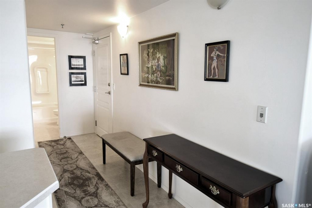 This is a fantastic opportunity for independent living in a well-maintained 2-bedroom, 2-bathroom condo. This bright, south & west-facing corner unit offers an ideal location adjacent to the highly desirable Market Mall, with convenient access to shopping, restaurants, groceries, and a medical center. Nearby parks, walking paths, and tennis courts add to the appeal of this vibrant community. Located in The Fremai, this inviting suite features a functional layout, including a 3-piece ensuite off the primary bedroom with a spacious 5-foot shower & molded seat. The bright white kitchen is thoughtfully designed with ample counter space, an island for additional cabinetry & possible breakfast nook, and includes a fridge, stove, B/I dishwasher and over-the-range microwave. Enjoy year-round comfort hot water heat & central air conditioning, while the in-suite laundry and storage room provides extra space, including room for a freezer. The washer & dryer has been recently replaced. Residents of the building benefit from excellent amenities, including a social room with shuffleboard and pool table, an exercise room, and elevator access. This unit also includes heated underground parking and additional storage locker located in front. The parking is only a few spaces from the elevator. Don't miss your chance to own this well-located and comfortable home—book your private viewing today!