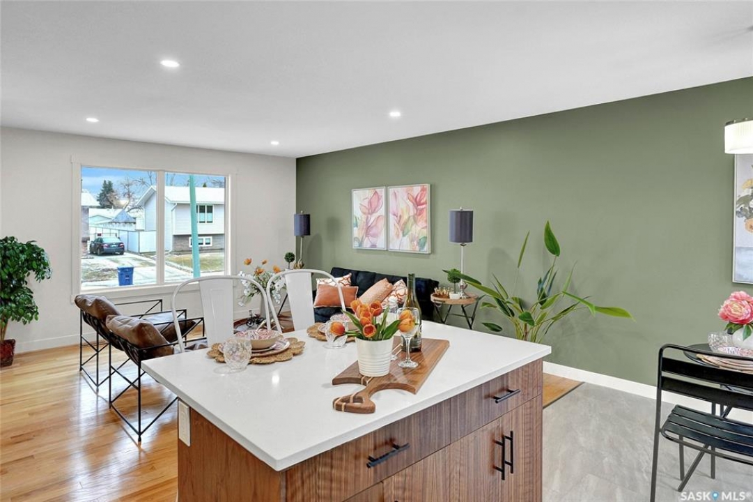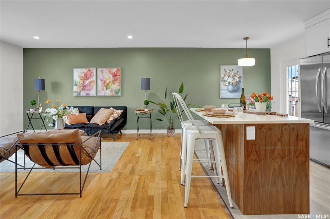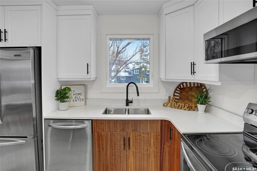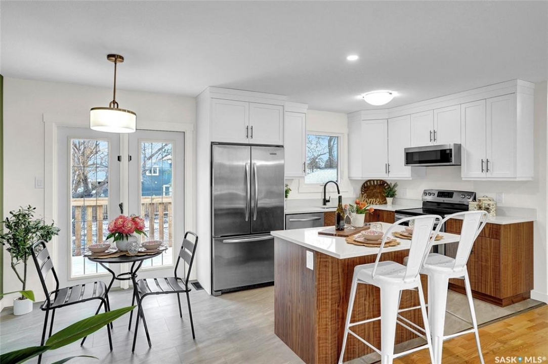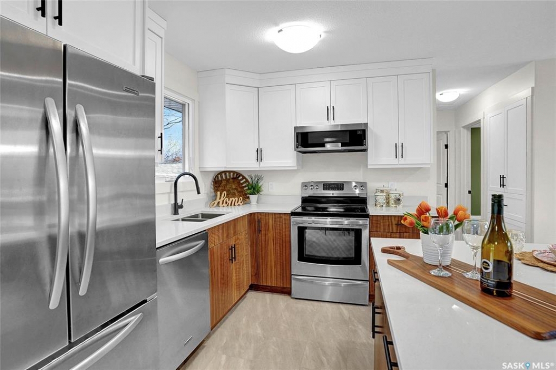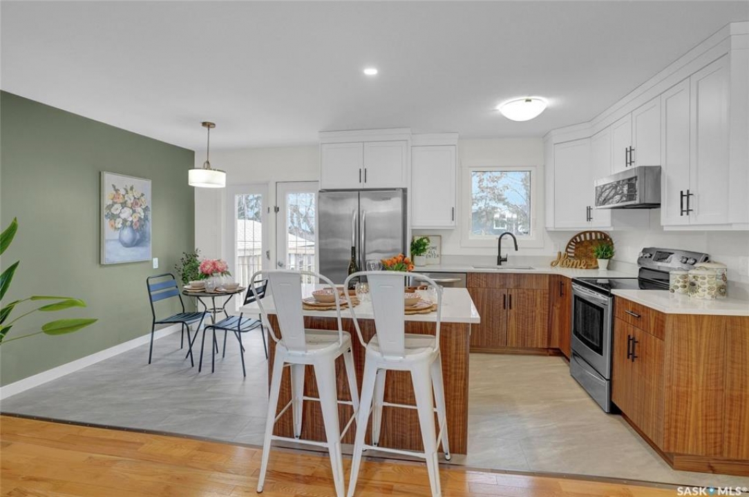Discover the charm and modern convenience in this newly renovated home, inside and out. The property has been tastefully renovated throughout, making it both stylish and functional. This is the cutest home with a welcoming foyer, leading you to the Living, Dining and Kitchen that are set in an open concept. Updated windows only enhance the luxury vinyl floor that flows throughout the main floor, filling the home with natural light. The kitchen enjoys quartz counters, new stainless steel kitchen appliances, including fridge, stove, built-in dishwasher and microwave hood fan. The main floor hosts 2 bedrooms, and this floor is complete with an updated 4pc. Bath. The lower level is finished, boasting a family room, with a game area that also enjoys a Murphy bed, to host your extra guests or the kids' sleepovers. This floor comes complete with a great-sized 3rd bedroom, renovated 3 pc. bath, as well as laundry area & storage in the utility room. This family home boasts a high-efficiency furnace, water heater, new electrical panel and has a sump pump. The sewer line will be replaced from the home to the street in 2025, which is a BONUS. The yard, having a wonderful deck accessible from the dining area, is perfect for outdoor relaxation, entertaining & enjoying the sun. This yard has space in addition for all the kids to play, too. The oversized det. The garage has also had an update with new concrete floor, roof decking, shingles & vinyl siding. This home represents an excellent opportunity to own a like-new property in a beautiful, family-friendly area, steps to a park, walking paths, and a school. CLICK ON THE MULTIMEDIA LINK FOR A FULL VISUAL TOUR, and call today, and let's make your next move to live more beautifully. (Some rooms are virtually staged.)