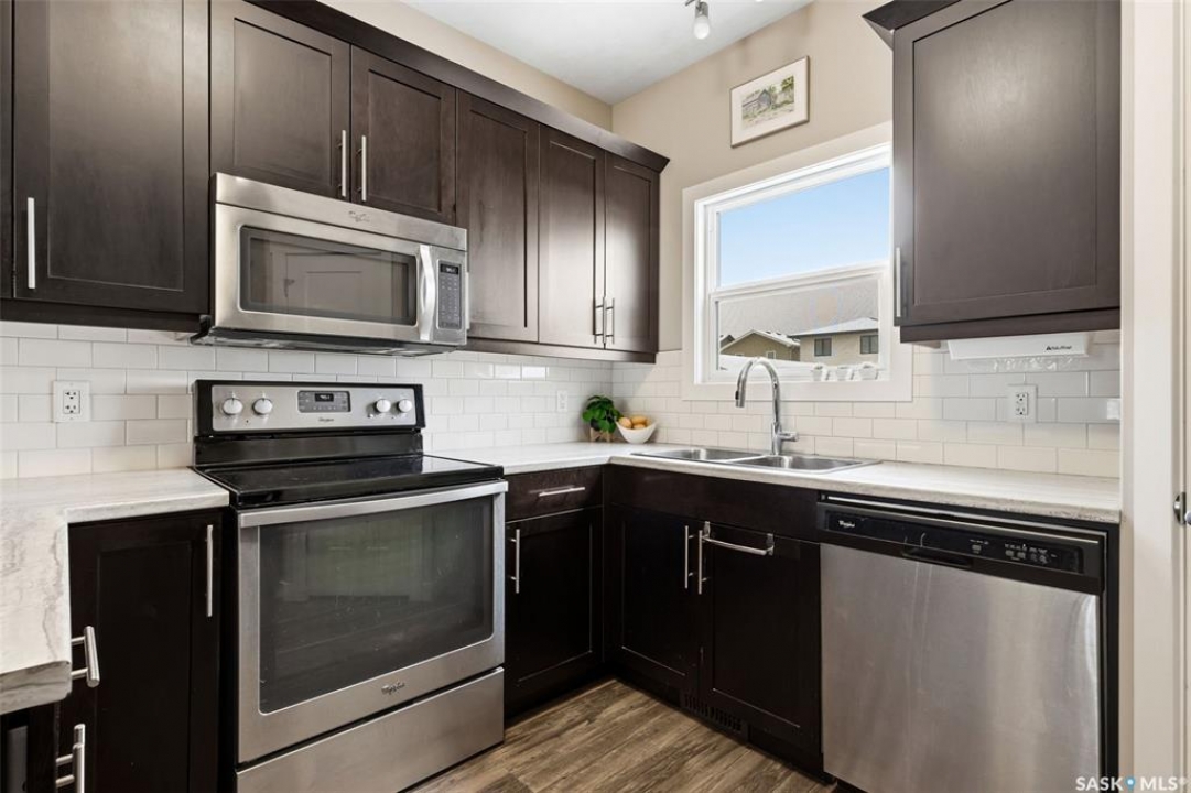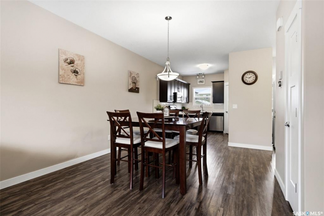 Step into this bright and beautifully designed two-storey home, built on piles and thoughtfully finished for comfort and peace of mind. A generous front entrance leads into an open main floor with luxury vinyl plank flooring, a sunny south-facing family room, and a spacious dining area perfect for everyday living. The functional kitchen offers an eat-up counter, stylish white backsplash, corner pantry & stainless steel appliances. A handy 2pc powder room completes the main level. Upstairs, you'll find three comfortable bedrooms, including a lovely primary suite with a walk-in closet and 4pc ensuite. The finished basement adds incredible flexibility with a cozy family room, wet bar, additional bedroom, 3pc bath, stacked laundry & plenty of storage. Whether it's movie night, a guest retreat, or a potential mother-in-law suite, this space adapts beautifully. An HE furnace, triple pane windows and A/C adds to the home's efficiency and comfort. Both the front and back yards are fully developed, giving you multiple outdoor spaces to enjoy. Relax on the covered front veranda on warm evenings or unwind in the backyard on the patio. A rear parking pad accommodates 2 vehicles. A warm, functional, energy-efficient home with room to gather, grow, and enjoy—inside and out. This may be exactly what you have been waiting for! All offers to be reviewed on March 31st.