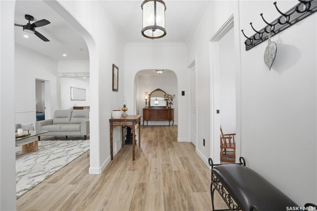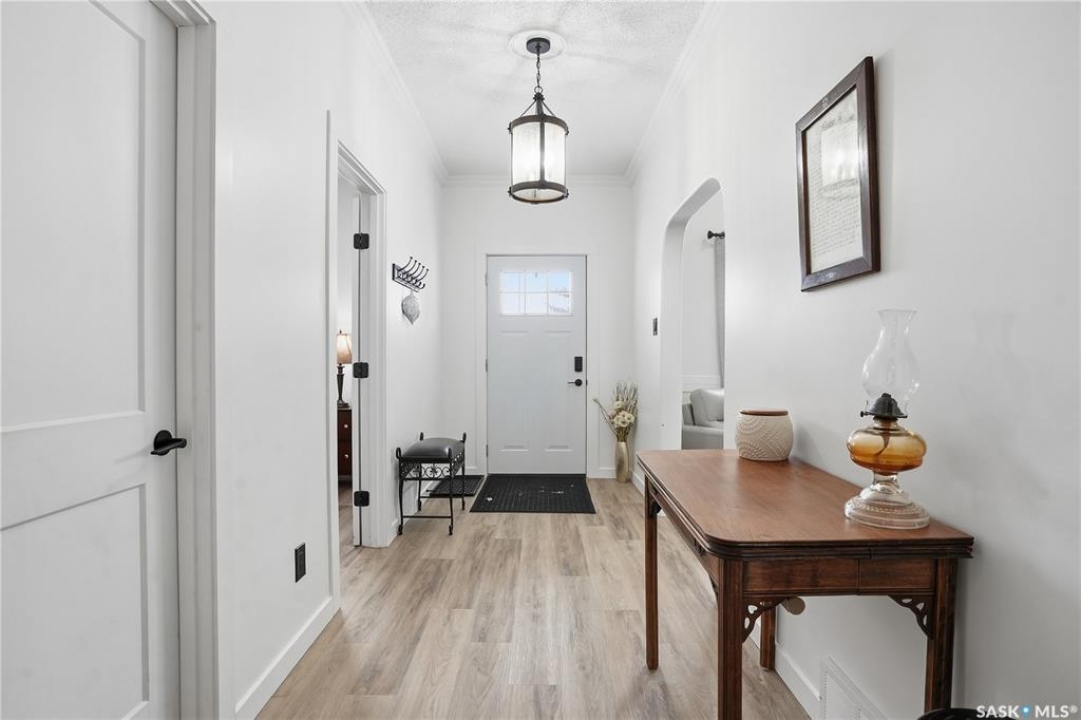 Are you looking for a beautifully updated character home? This home is situated on a large corner lot right across the street from Ross School in a nice quiet neighborhood. Excellent curb appeal as you arrive! Heading inside you are greeted by a large foyer with arched doorways adding some charm. Heading into the spacious living area showcasing 10' high ceilings and new flooring that runs throughout the main floor. Heading back to the formal dining space you will love the character of the whitewashed beams and patio doors leading out to your deck! Next we find a spacious kitchen complete with new white cupboards, quartz countertops with a stunning farm house sink and a 4 piece stainless steel appliance package! Down the hall we find an updated 4 piece bath with a beautifully tiled tub surround as well as a spacious bedroom. Finishing off the main floor we have a spacious primary bedroom with a large closet and garden doors leading to a private & covered deck - which is sure to be your favorite spot for your morning coffee. Heading upstairs we find a third bedroom and a playroom which could easily be an office if you would like. In the partial basement we find the laundry, utility space and some storage. Outside we find a fully fenced yard, an apple tree, lilac bushes, 2 sheds and a gravel parking pad for 3 cars. Lots of updates in the last couple years - new shingles, soffit, fascia and eaves with gutter guards, windows and exterior doors, kitchen and bathroom updates and a refresh throughout the home. Lots of value here! If you are looking for a place that feels like home - look no further! Reach out today to book your showing.
