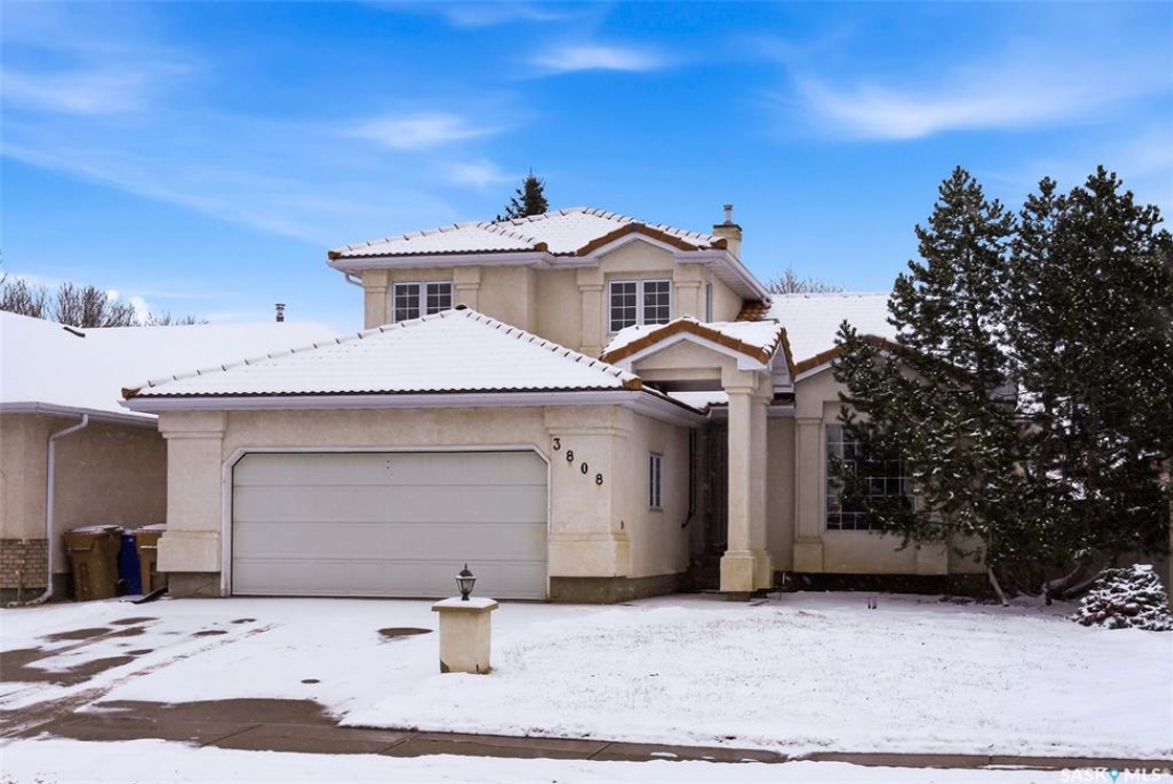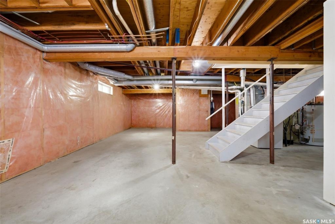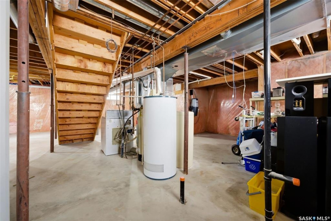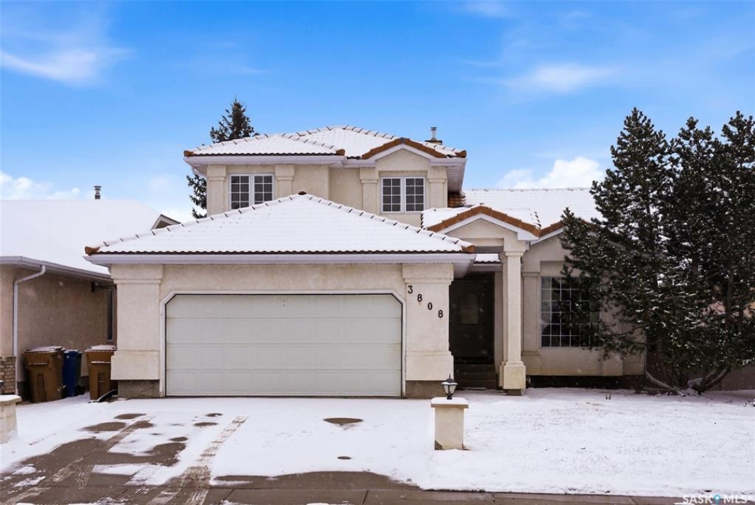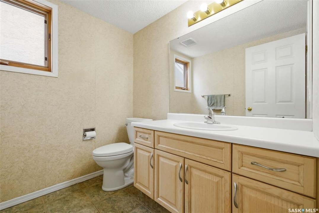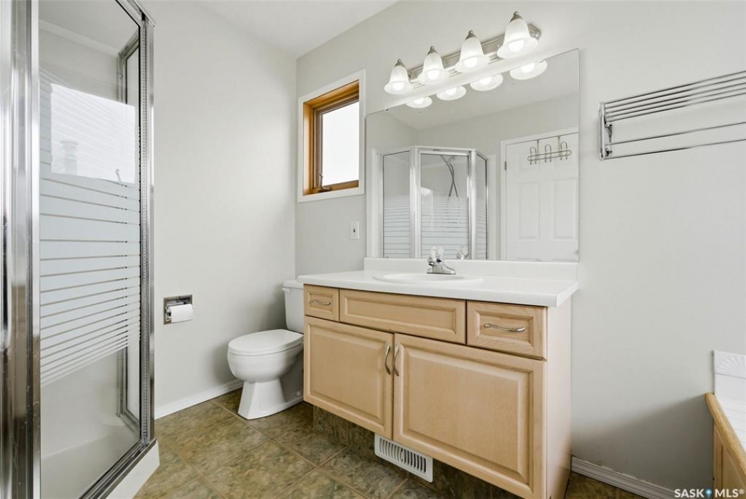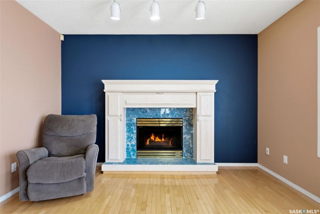 Excellent location for this 1992 Built 2027 sq. ft. 5 bedroom, 3 bathroom 2 story split with double attached (heated/insulated garage) in Woodland Grove. This one owner home was a show home when purchased in 1992 and features vaulted ceilings, skylights, lots of maple hardwood throughout and tile flooring. Kitchen features white washed oak cabinetry, vaulted ceiling with skylight, b/I dishwasher, gas stove, fridge, hood fan, tile flooring and double doors to deck and large backyard. Kitchen overlooks the familyroom with gas fireplace, maple hardwood flooring and garden doors to deck overlooking backyard. Livingroom with beautiful vaulted ceiling, hardwood flooring and overlooking the spacious diningroom. Main floor den/office with hardwood floors, laundryroom with washer & dryer included, large handy 2 pc bathroom and direct entry to double attached heated/insulated garage. The staircase leading to the upper level is hardwood and features 3 bedrooms all with hardwood flooring, primary with 4 pc ensuite with jet tub and corner shower. There is also a 4 pc main bathroom upstairs. The basement has a bedroom developed, rough-in for bathroom, flat concrete floor in great condition and insulated walls ready for development. Large backyard with 2 tiered deck and PVC fencing. Quick possession