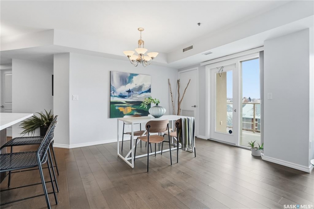Experience riverfront living in this IMPECCABLE southeast-facing LUX condo in the heart of downtown Saskatoon. Offering 1,155 sq ft, this 2-bedroom, 2-bath unit features an UPDATED bright, open floor plan designed to take full advantage of the natural light and breathtaking river views. The kitchen is beautifully finished and underwent recent updates with modern cabinetry, newer gleaming quartz countertops, tile backsplash, and stainless steel appliances, and a peninsula opening to a spacious open concept living and dining area with oversize windows spanning the entire space, plus a large balcony that captures river and city views including the Meewasin park and the Cathedral's tower! The entire space boasts newer (high end, recently installed) engineered hardwood flooring. Two spacious bedrooms, 2 full baths, and a primary walk-in closet, plus an in-suite storage/laundry room complete this lovely floor plan. Enjoy relaxing or entertaining on the private balcony with a natural gas BBQ hookup, overlooking not only the river, but also The Bessborough and Broadway Bridge. This unit includes 1 heated underground parking stall and a heated storage unit for added convenience. The building offers fantastic amenities, including a fitness room, a meeting room, and two guest suites. Ideally located along the Meewasin River Trail and park and steps from downtown restaurants, shops, and entertainment- the best of what our city offers!!