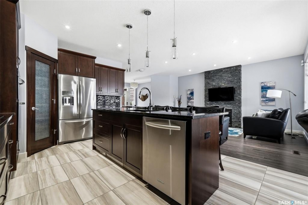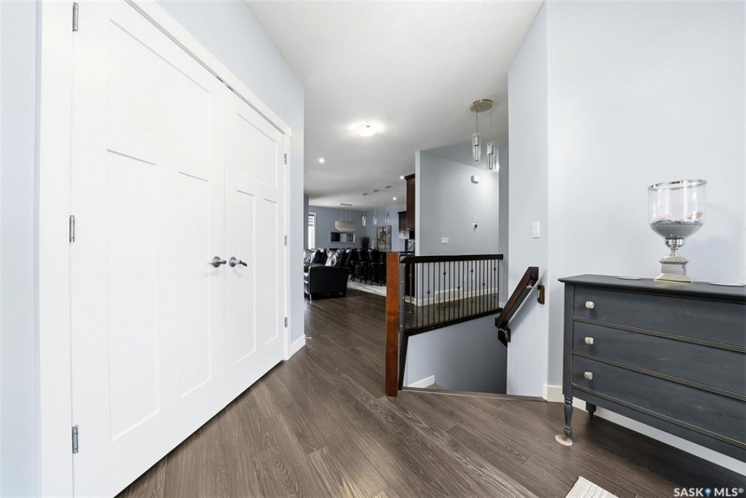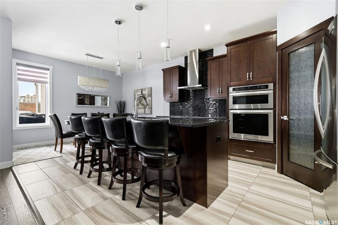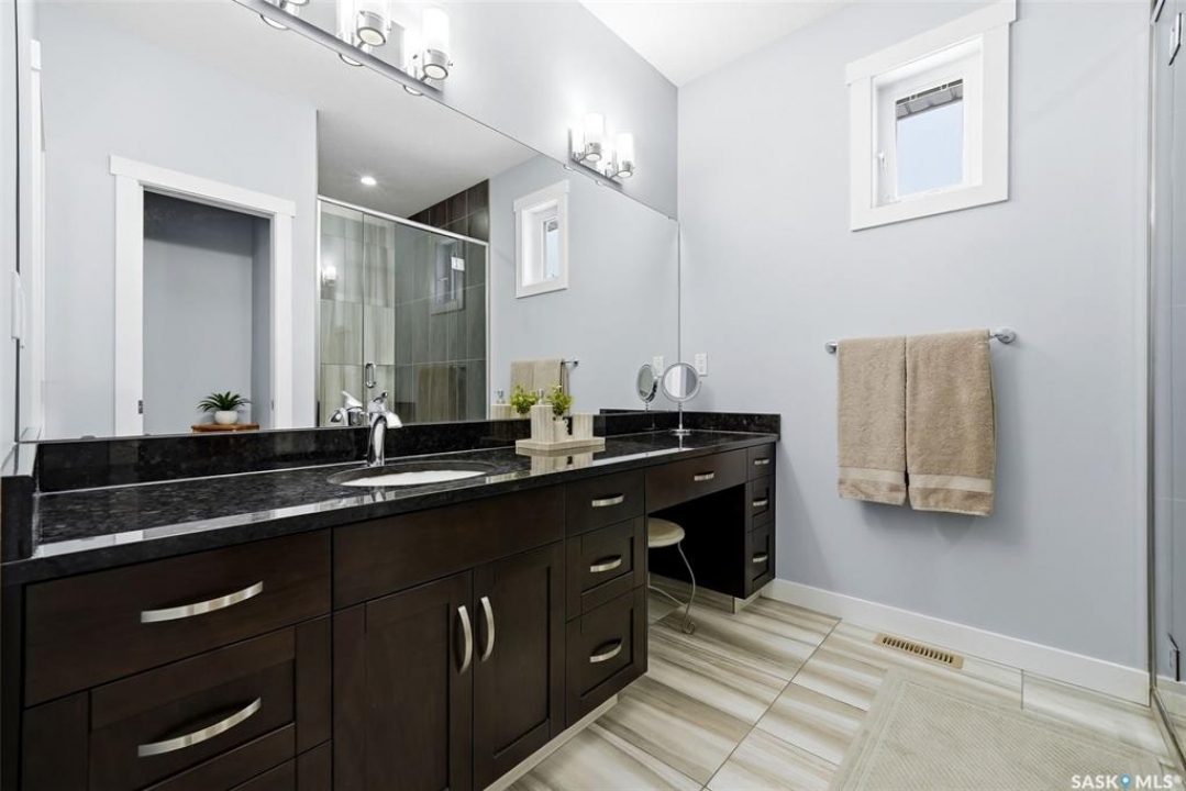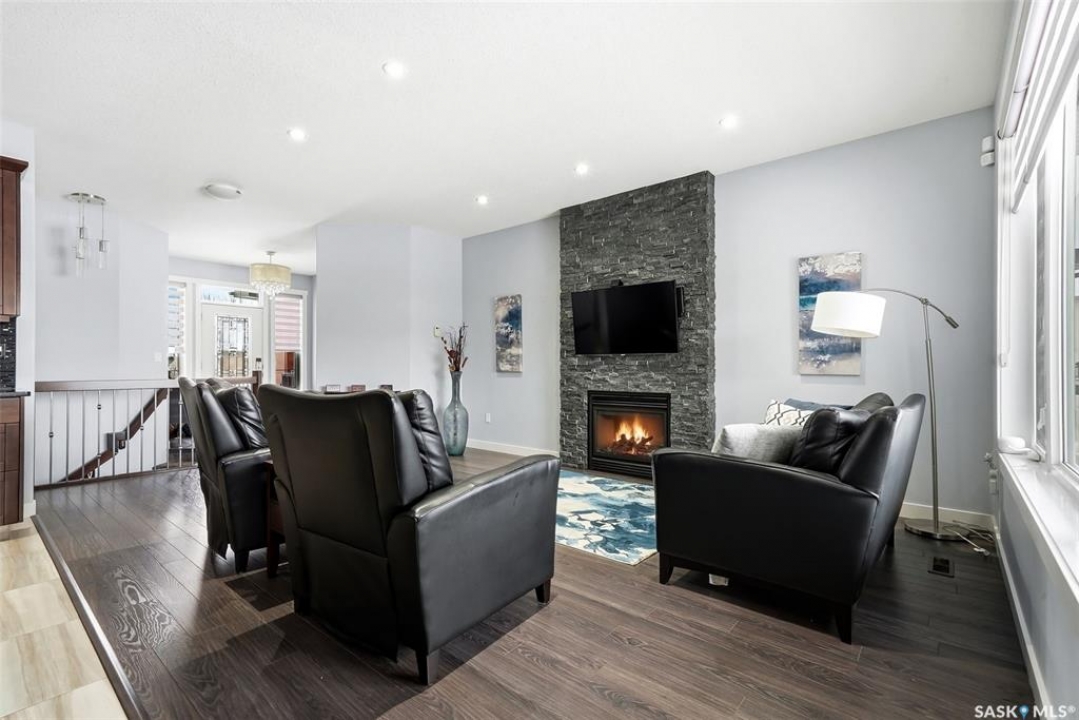 Move-in ready and absolutely breathtaking! This stunning, fully completed 5-bedroom custom home in Regina's most sought-after Creeks neighbourhood has been lovingly maintained since its 2014 construction and is ready for you to simply walk in and fall in love. Imagine stepping into soaring 9-foot main-floor ceilings that flood every room with natural light and space. Feel the instant comfort of R20 walls, R50 ceiling insulation, and spray-foam basement walls that keep energy bills low and temperatures perfect year-round. Outside, the wow-factor curb appeal hits you immediately: elegant stucco with dramatic stacked-stone accents, a maintenance-free deck perfect for summer entertaining with its hot tub featuring an electric Convana cover, front and back yards with underground sprinklers, a show-stopping exposed-aggregate driveway and sidewalk, plus a fully finished, insulated garage with two overhead doors and openers. Inside, every detail sparkles with premium finishes you'll adore: rich maple shaker cabinets with soft-close hardware and gleaming granite countertops, a showpiece Napoleon gas fireplace wrapped in stacked stone, a luxurious custom-tiled ensuite with glass shower door, plus three spacious walk-in closets, and beautiful laminate, tile, and carpet flooring throughout. Top-of-the-line mechanicals include a high-efficiency 2-stage furnace, 2.5-ton central air, and a Venmar air exchanger for fresh, clean comfort. This pet-free, turn-key beauty is nestled in a vibrant, family-friendly community with parks, trails, and green space right outside your door—the dream home you've been waiting for. Don't miss your chance to make it yours today!