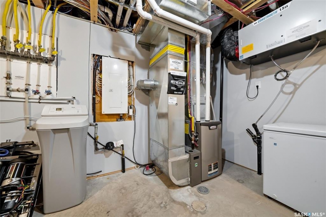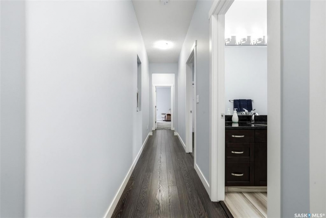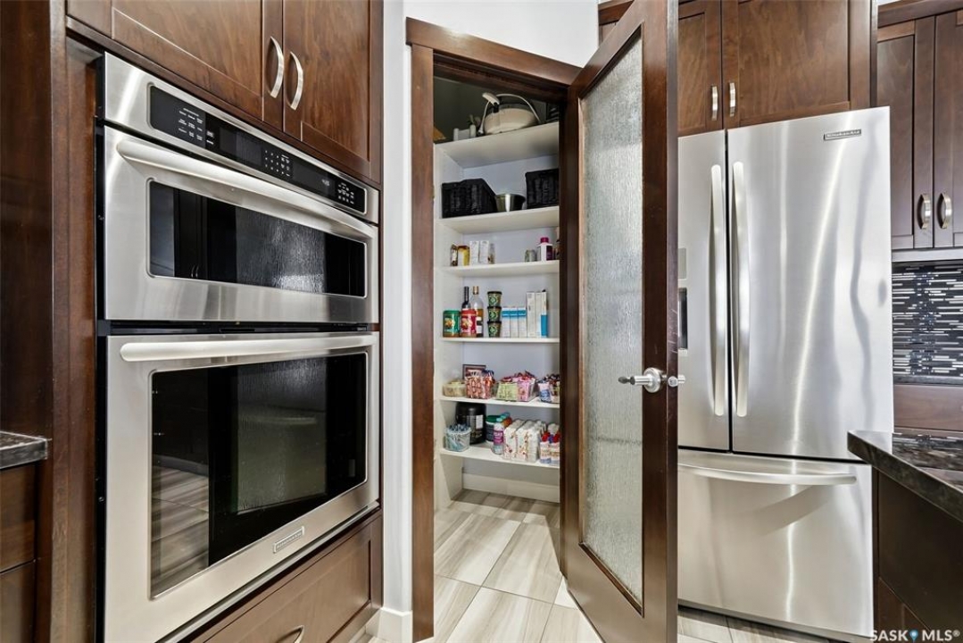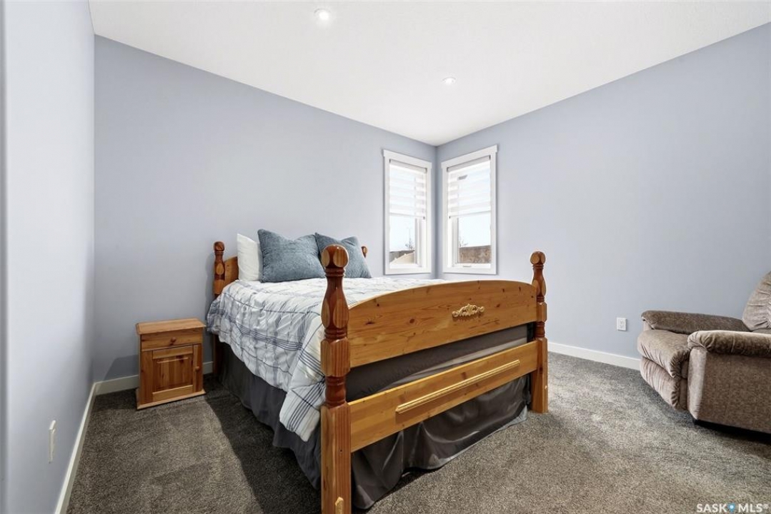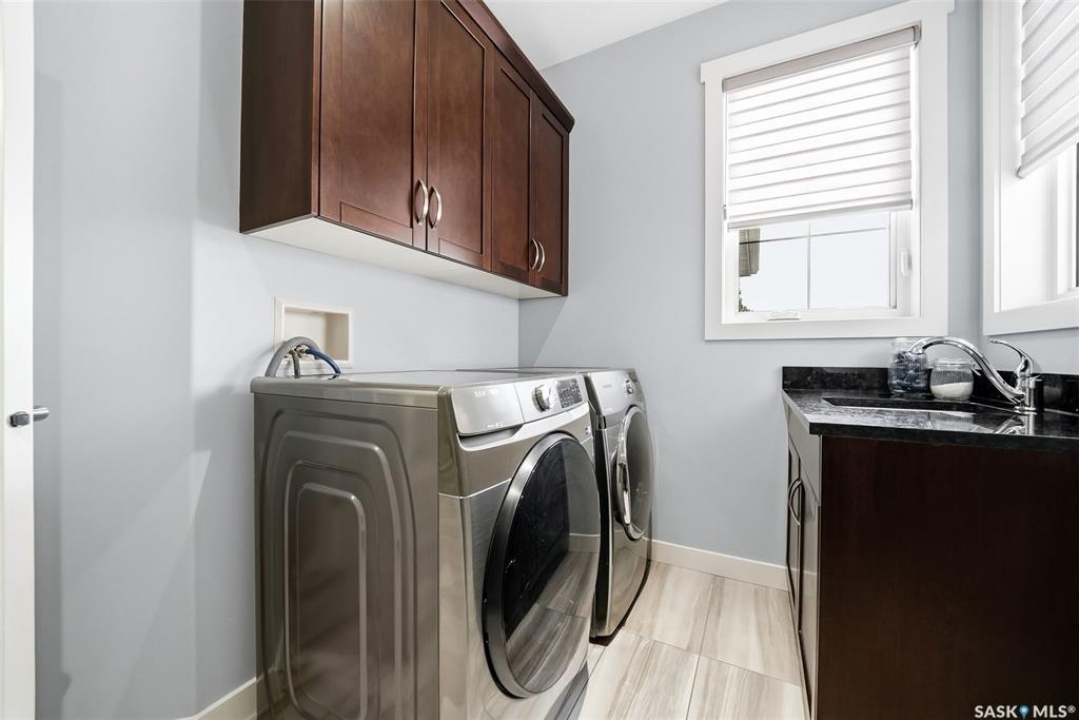 Move-in ready and absolutely breathtaking! This stunning, fully completed 5-bedroom custom home in Regina's most sought-after Creeks neighbourhood has been lovingly maintained since its 2014 construction and is ready for you to simply walk in and fall in love. Imagine stepping into soaring 9-foot main-floor ceilings that flood every room with natural light and space. Feel the instant comfort of R20 walls, R50 ceiling insulation, and spray-foam basement walls that keep energy bills low and temperatures perfect year-round. Outside, the wow-factor curb appeal hits you immediately: elegant stucco with dramatic stacked-stone accents, a maintenance-free deck perfect for summer entertaining with its hot tub featuring an electric Convana cover, front and back yards with underground sprinklers, a show-stopping exposed-aggregate driveway and sidewalk, plus a fully finished, insulated garage with two overhead doors and openers. Inside, every detail sparkles with premium finishes you'll adore: rich maple shaker cabinets with soft-close hardware and gleaming granite countertops, a showpiece Napoleon gas fireplace wrapped in stacked stone, a luxurious custom-tiled ensuite with glass shower door, plus three spacious walk-in closets, and beautiful laminate, tile, and carpet flooring throughout. Top-of-the-line mechanicals include a high-efficiency 2-stage furnace, 2.5-ton central air, and a Venmar air exchanger for fresh, clean comfort. This pet-free, turn-key beauty is nestled in a vibrant, family-friendly community with parks, trails, and green space right outside your door—the dream home you've been waiting for. Don't miss your chance to make it yours today!