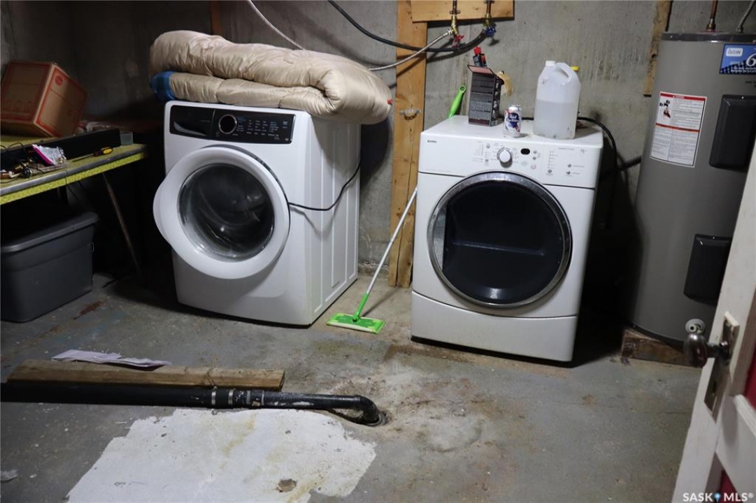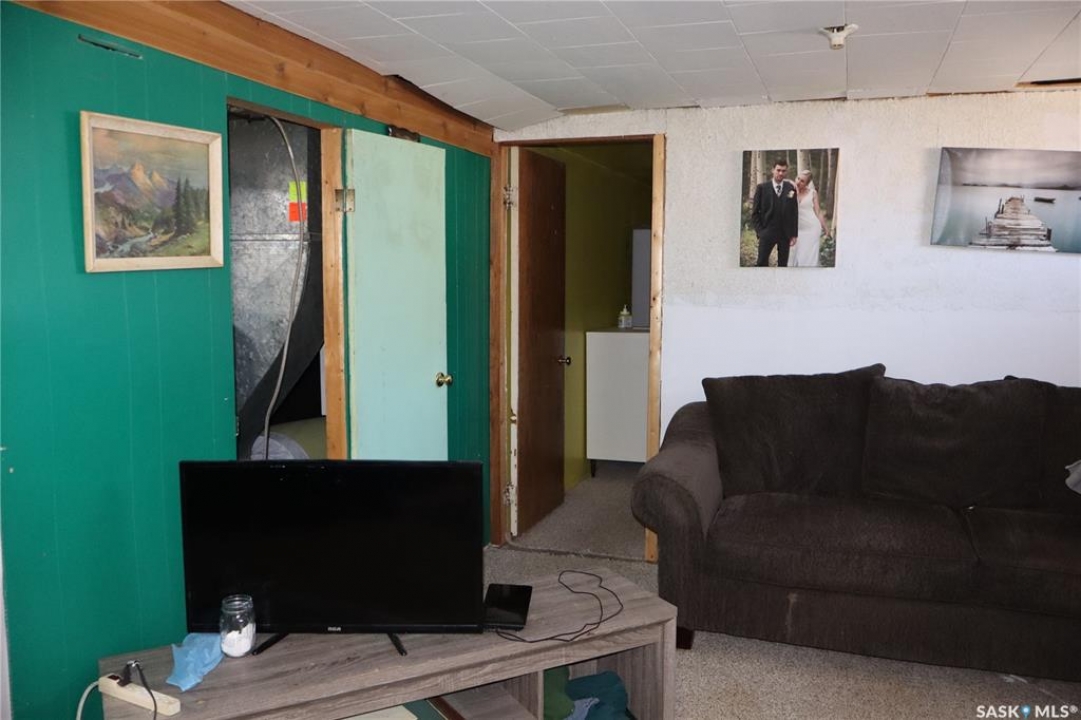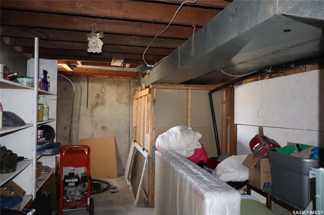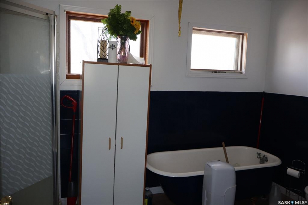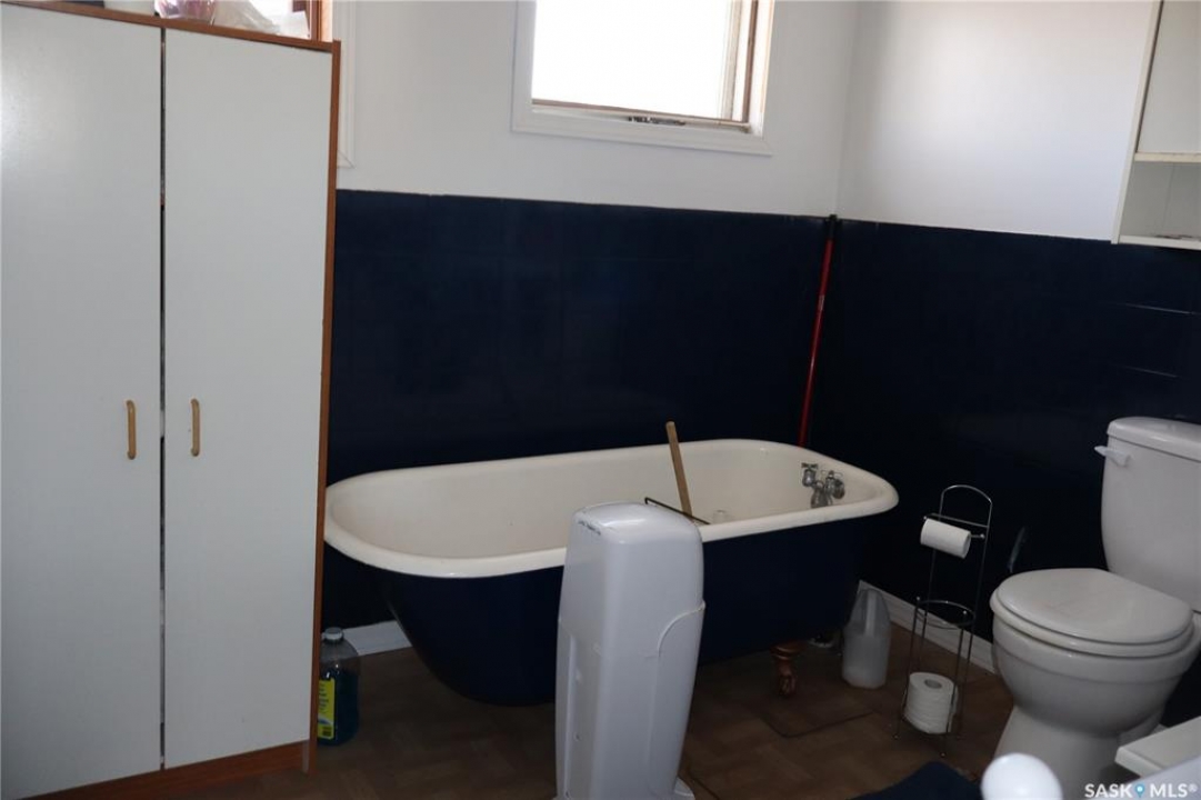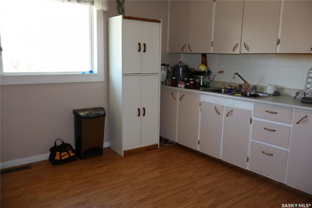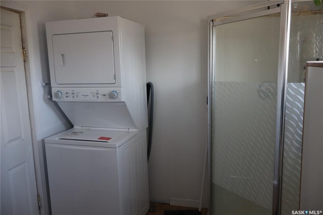 This property is situated in the Town of Willow Bunch and offers an excellent location. The residence occupies a double lot and comprises 860 square feet above an upgraded concrete basement. While the basement is not original to the home, its construction date is unknown. The main floor includes a spacious eat-in kitchen, main floor laundry conveniently located in the four-piece bathroom, a generous living room, two bedrooms, and access to the front porch. The bathroom is equipped with a stand-up shower and a claw foot tub, and the laundry utilizes a stacked unit. The basement has been developed to feature a large family room, a den currently used as a bedroom, a utility room with additional laundry facilities, a natural gas forced air furnace, an electric water heater, and ample storage space. Exterior amenities include a wheelchair-accessible ramp at the front entrance, a deck at the rear, and substantial outdoor space. Additional features comprise several older storage sheds, a portable garage, and an adjacent vacant lot that has served as a firepit area and garden. The house is enhanced by newer vinyl windows and upgraded flooring. This property presents an attractive opportunity; viewing is recommended.
