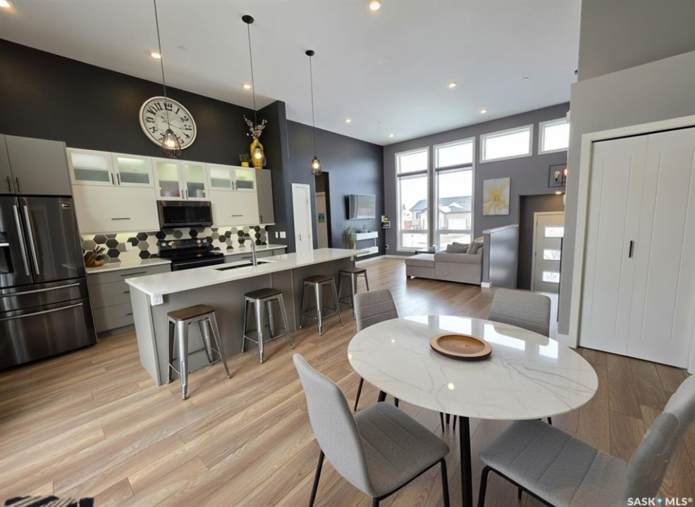 Built in 2018, this stylish 5-bedroom, 3-bathroom home offers the perfect blend of space, comfort, and modern design with an inviting atmosphere throughout. The bright, open-concept 1,323 sq ft main floor features high ceilings, large windows, and clean contemporary finishes throughout. The primary bedroom includes a walk-in closet and private ensuite for added convenience. Downstairs, the fully finished basement offers two bedrooms, a full bathroom, large laundry room, and a spacious entertaining area featuring a custom bar. Step outside to your private backyard retreat featuring an L-shaped deck with glass railings, a Bullfrog A7 hot tub, fire pit area, and a beautifully landscaped yard with a variety of trees and fruit trees. A storage shed and optional play equipment add extra value. Additional highlights include two electric fireplaces, an attached 1.5-car garage, and lots of storage space. Move-in ready condition—perfect for modern family living! Don't hesitate to contact your preferred realtor for more information.