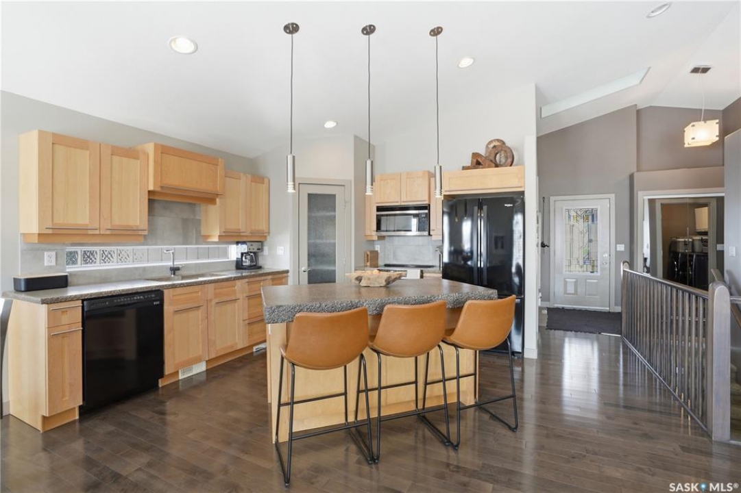 Welcome to #102-802 Heritage Crescent, ideally situated in the highly sought-after gated community of Parkside View. Original owners have meticulously maintained this 1,253 sq. ft. walkout bungalow with direct entry double attached garage, 3 beds (including a primary bedroom, 2nd bedroom currently used as an office on the main floor, and 1 bedroom on the lower level), & 3 bathrooms. This home backs onto the scenic walking paths and landscaped green space of Lakewood Park, offering privacy & picturesque views. Open-concept main floor is enhanced by maple hardwood flooring, upgraded triple-pane skylights, and large laundry room. Lovely kitchen showcases high-end cabinetry, undercounter lighting, soft close drawers, corner pantry, gorgeous cement counter tops and updated island lighting. Custom paint, trim & window treatments throughout. Spacious upper deck overlooks park, perfect for relaxing or entertaining. Generous primary bedroom features a large walk-in closet and ensuite washroom. Another 2 pc. bath serves guests on the main floor. Fully developed walkout basement offers 9-foot ceilings, a large family room with gas fireplace, recessed lighting, and access to a private, oversized patio surrounded by mature greenery. This level also includes an additional bedroom, a 3rd bath with walk in shower, and a large utility room with ample storage. Home has never been smoked in or had pets. Includes refrigerator, stove, dishwasher, over-the-range microwave, central air conditioning, central vac and loads of storage. Recent updates include a refrigerator (2025), garage door & openers (2025), humidifier (2023), and shingles with a 25-year warranty (2023). The furnace, hot water tank, and sump pump have been well maintained and inspected annually. Conveniently located near the Lakewood Civic Centre, walking paths, parks & a range of amenities, this home offers an exceptional blend of comfort, convenience, and low-maintenance living in desirable community.