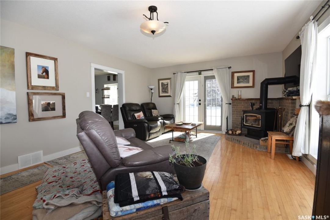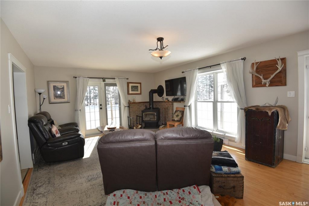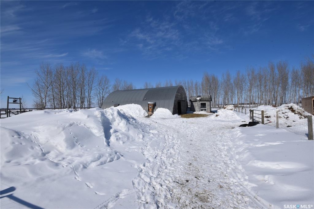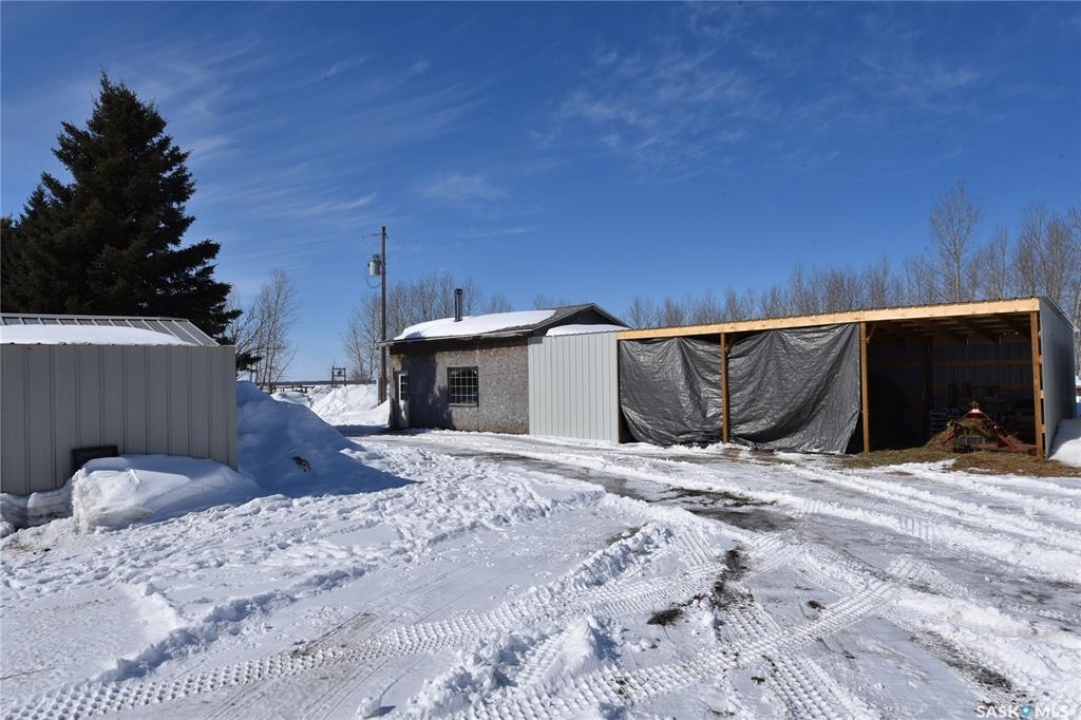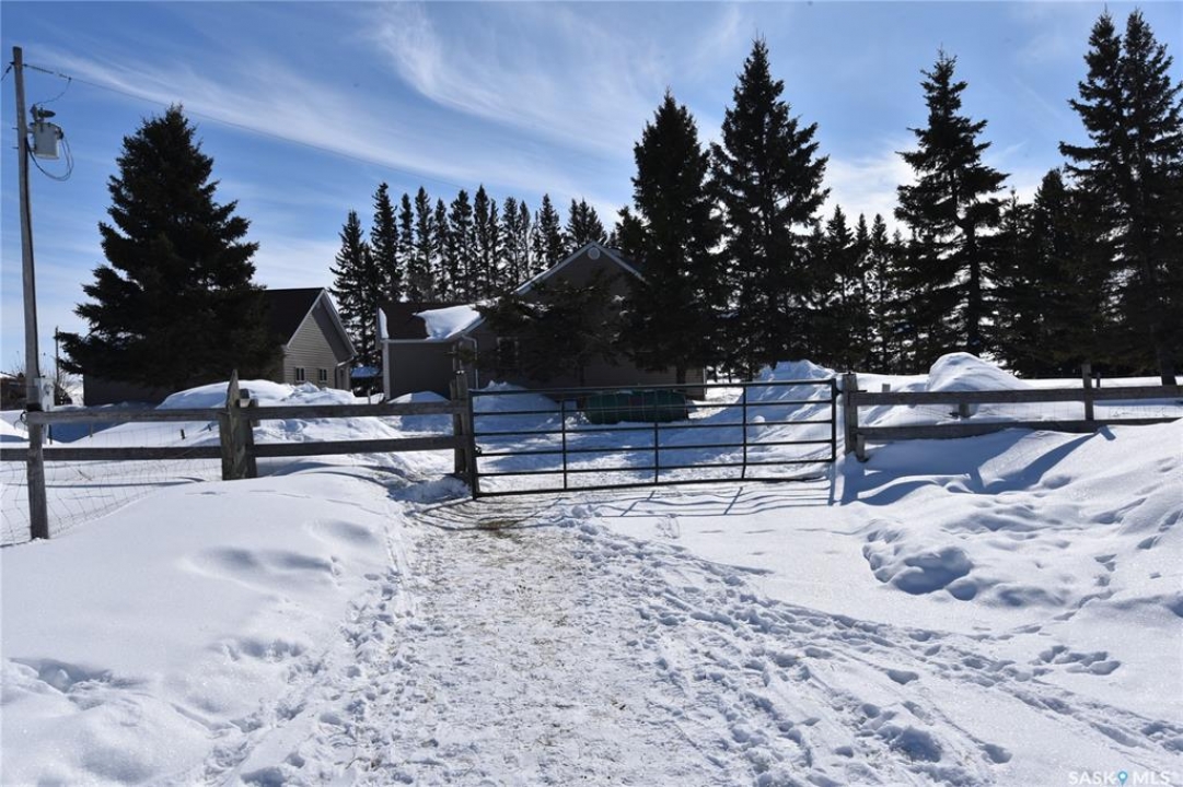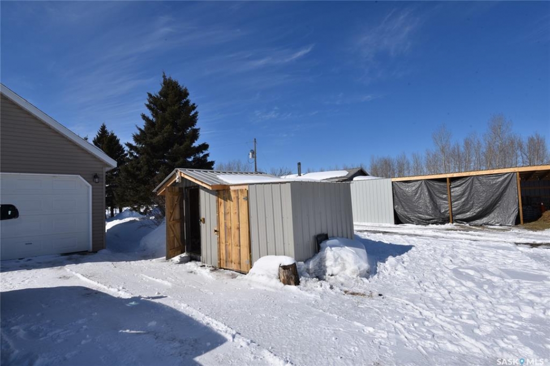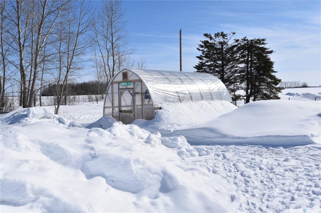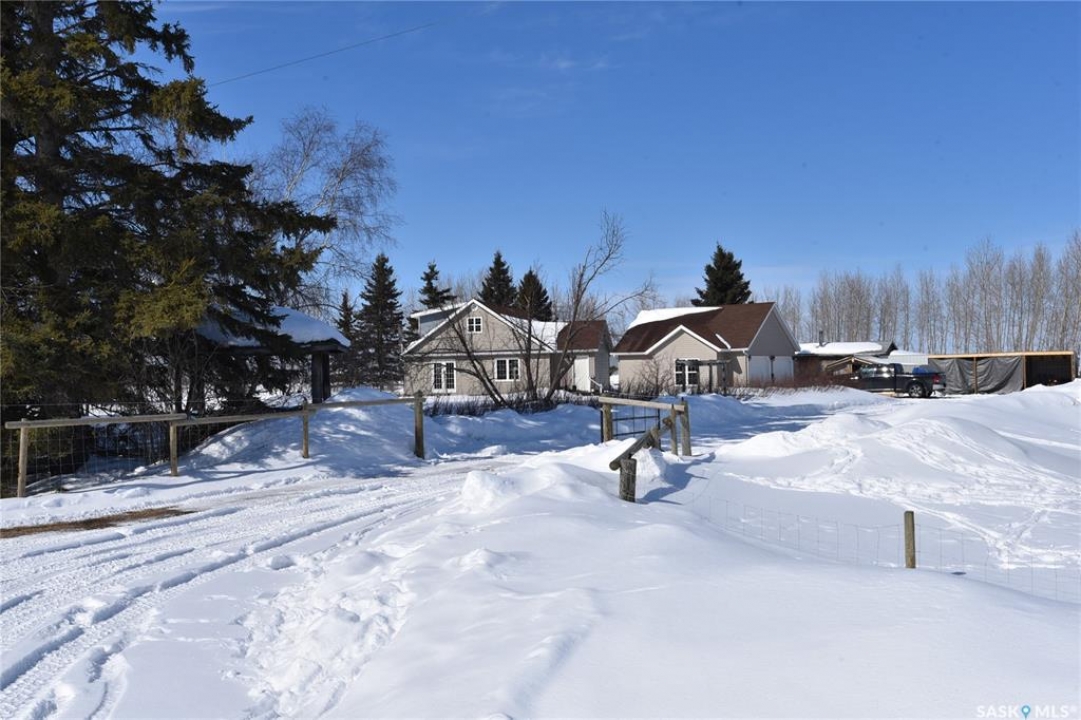 Beautifully maintained 13.23 acre property set up for comfortable rural living and ideal for animal grazing, featuring fully fenced land with multiple sectioned pastures. Currently operated as a homestead, this well-rounded acreage offers a bright and inviting 3-bedroom home with large windows throughout for plenty of natural light, a cozy wood-burning fireplace, and convenient main floor laundry. The property has seen several important upgrades, including an improved water system and recent electrical updates to house and outbuildings. Outside, the established yard offers a garden with raised beds, along with mature apple trees and an abundance of fruit including strawberries, rhubarb, haskap, and raspberry bushes. Well-equipped for a variety of uses, the property includes a double detached garage, greenhouse, barn, workshop, pole shed, and wood shed. Ideally located in the RM of Torch River with direct access off a paved road and an easy commute to Nipawin, this acreage is perfectly suited for those seeking a peaceful country lifestyle with practical amenities. Call today for more details!