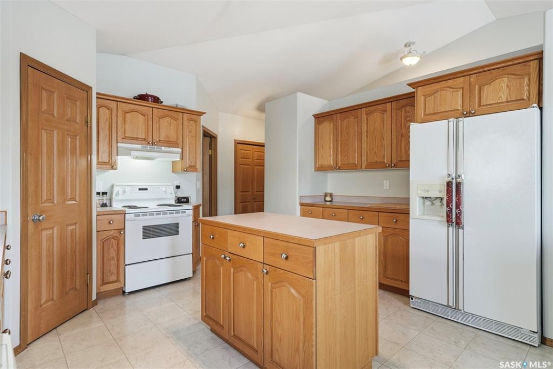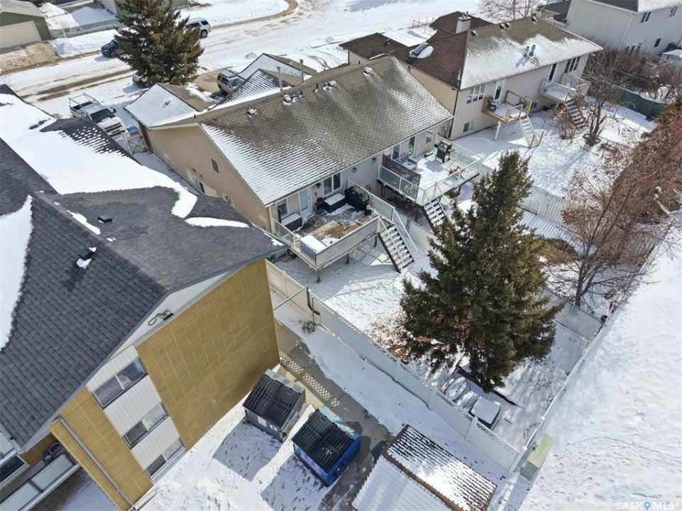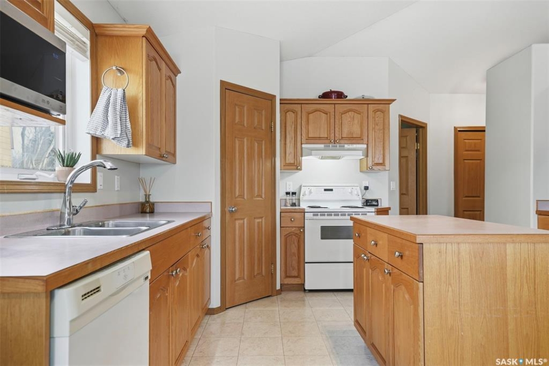 Welcome home to this stunning semi-detached bi-level, where exceptional street appeal meets a thoughtfully designed interior. From the moment you step inside, you are greeted by an expansive open-concept main floor defined by soaring vaulted ceilings and an abundance of natural light. The heart of the home is the spacious living room, anchored by a charming brick gas fireplace that promises cozy evenings. For those who love to cook and entertain, the large kitchen is a standout, featuring classic light oak cabinetry, a functional island, and a generous corner pantry. The adjacent dining area transitions seamlessly through patio doors to a private rear deck. Completing the main level is a convenient two-piece powder room and a dedicated laundry room—a rare find that adds a layer of everyday ease.The lower level is a masterclass in space optimization, offering a quiet retreat for the whole family. It boasts three bedrooms and a full four-piece bathroom, ensuring everyone has their own space. Beyond the bedrooms, you'll discover a versatile bonus room—perfectly suited for a home office or craft studio—making this home as functional as it is beautiful. High-end practical features are found throughout, including a central vacuum system, an attached single 12x22 garage, and underground sprinklers to keep the mature trees and lush lawns looking their best with minimal effort. Perhaps the most attractive feature of all is the freedom that comes with NO condo fees, providing incredible value in one of Saskatoon's most established neighborhoods. You are within easy walking distance of the Canarama Shopping Centre and minutes from Lawson Heights Mall. Nature enthusiasts will love the close proximity to the South Saskatchewan River trails, while students and professionals will appreciate the effortless access to the University of Saskatchewan. This is more than just a house; it's an opportunity to own a piece of River Heights without sacrificing style or convenience.