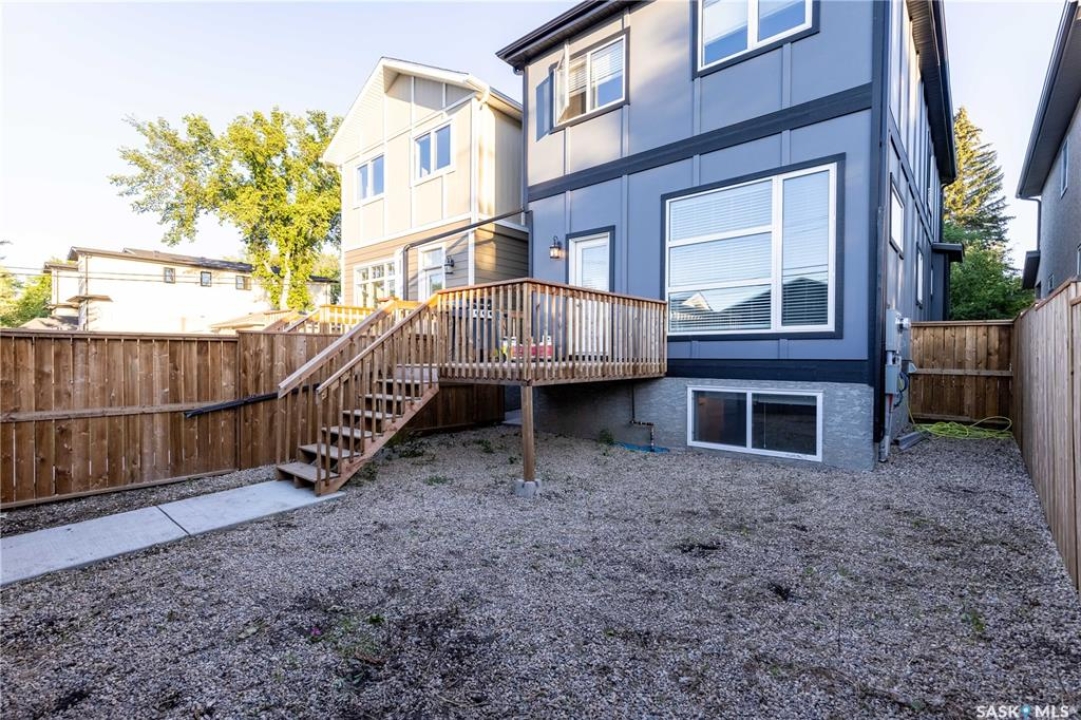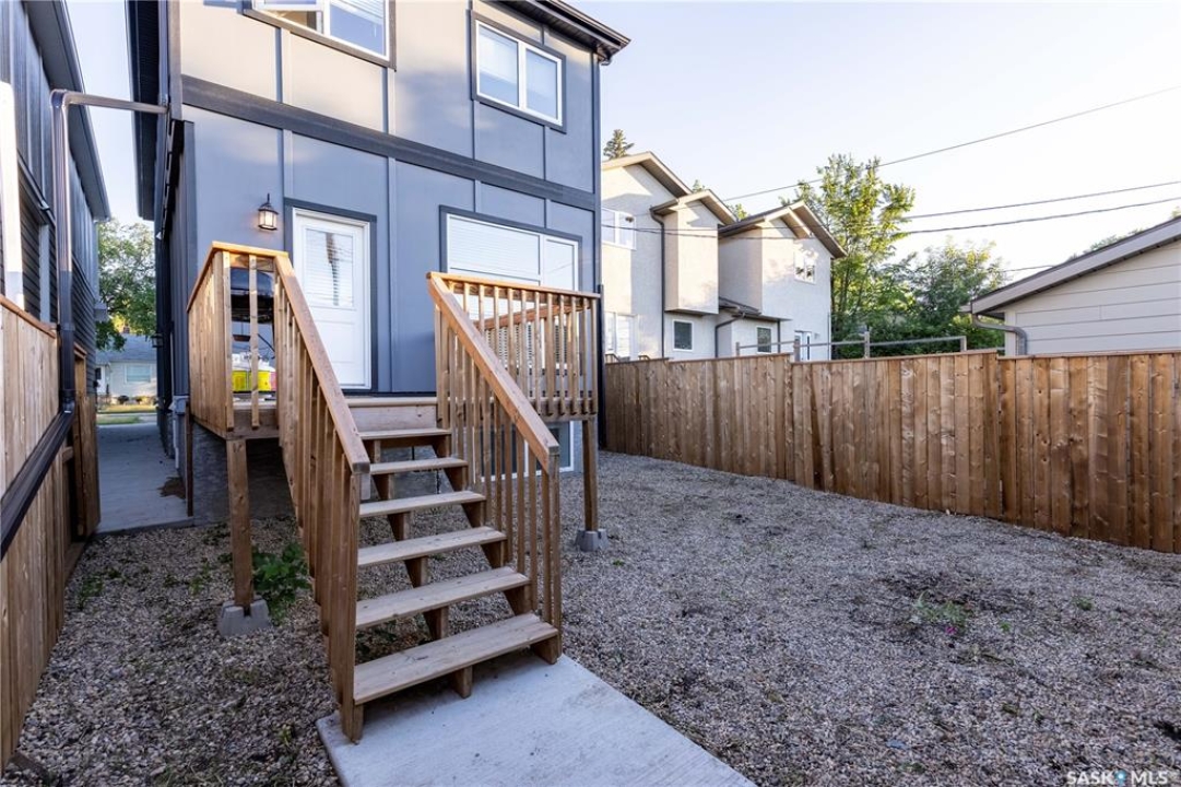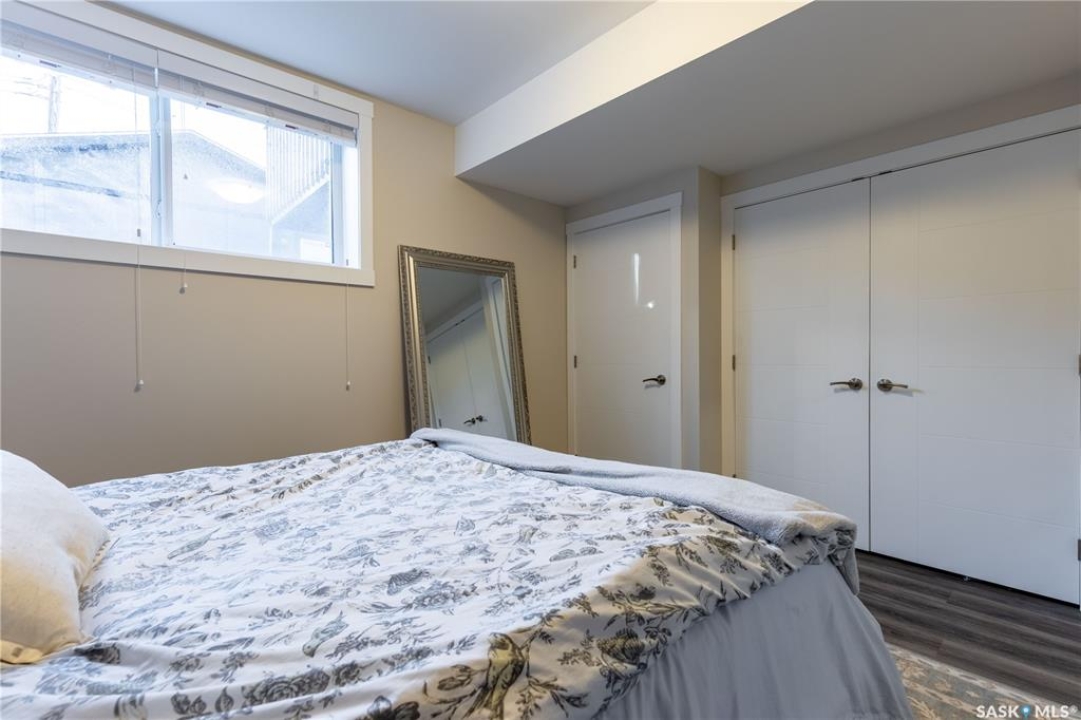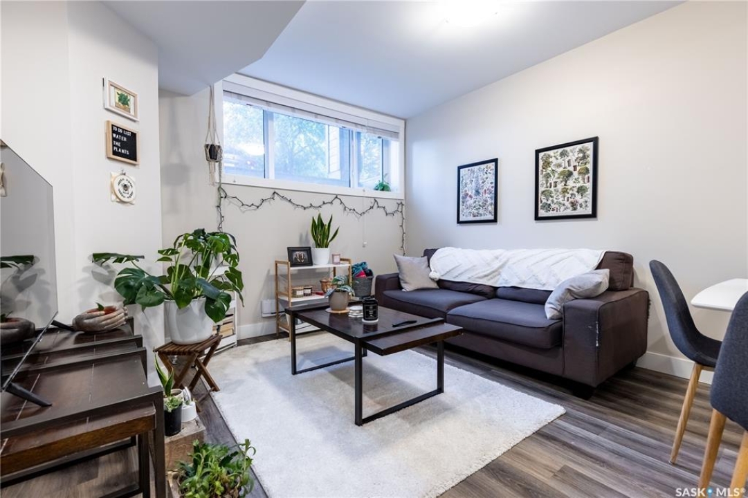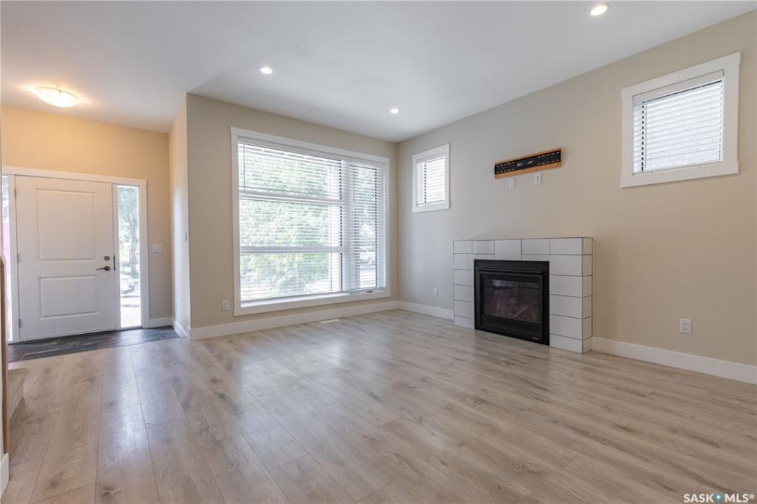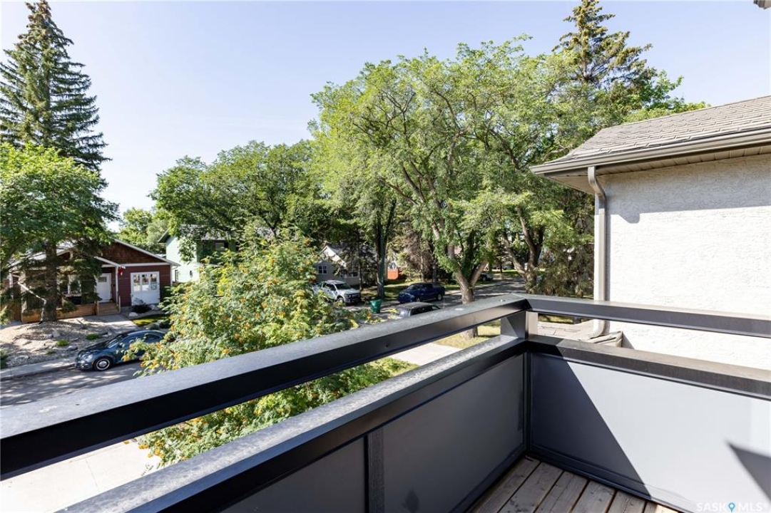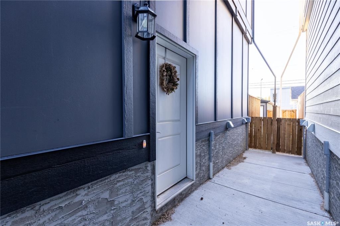 Welcome to 1037 7th Street East — a thoughtfully designed modern infill with a layout that just makes sense. The main floor offers a spacious, functional flow anchored by a large kitchen with ample cabinetry and a generous island, perfect for everyday living. A cozy fireplace adds warmth to the living area, while both front and rear entryways provide practical space with room for storage. A separate stairwell to the mechanical room is a smart touch you don't often see. Upstairs, the primary suite is a standout, featuring a walk-in closet and a well-appointed ensuite with a freestanding tub, tiled shower, and dual sinks. Two additional bedrooms are nicely sized, and second-floor laundry adds everyday convenience. The legal one-bedroom basement suite is bright, well laid out, and ideal for added income or extended living. The current tenant would be happy to stay, offering a seamless option for buyers looking for a mortgage helper. Outside, the home carries a clean, modern aesthetic with board and batten siding. Enjoy your morning coffee on the private balcony off the primary bedroom overlooking a mature, tree-lined street, or relax on the back deck. A double detached garage is complemented by a front concrete driveway for additional parking. A well-rounded home in a great location — ready for its next owner.