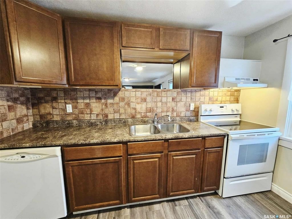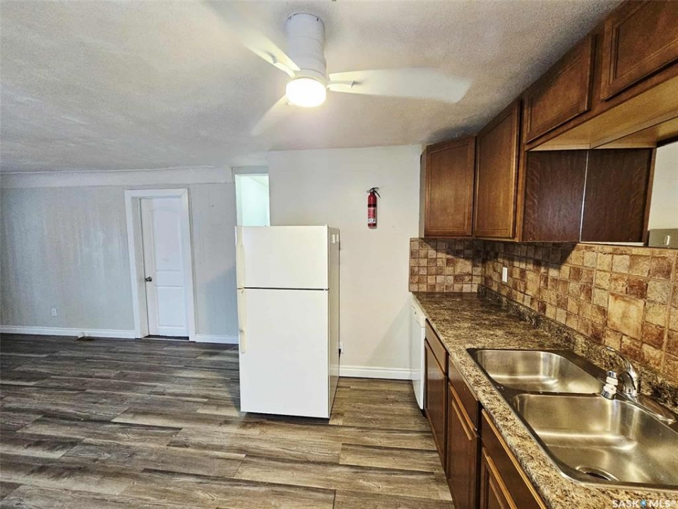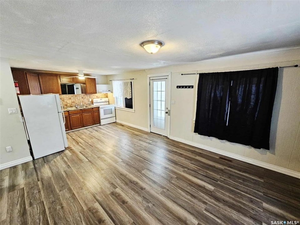 154 Ontario Ave Cute, Compact and 1.5 blocks to Yorkton Regional High School, Suncrest College, 2 blocks to Sacred Heart High School. This accessible property has a ramp and fenced front deck, a fenced side yard deck directly off the primary bedroom and a fully fenced back yard with shed and back lane access. Open concept kitchen and living room, 2 bedrooms and a 4 piece bath. Fresh interior paint. The basement houses the laundry with update washer, furnace and updated water heater.