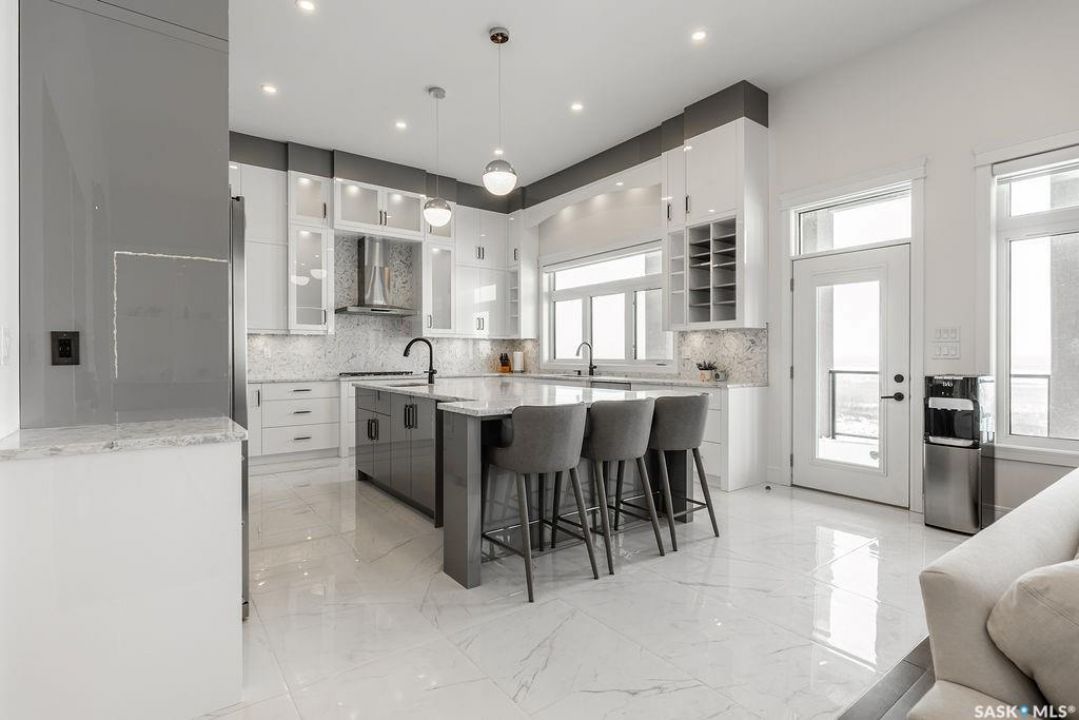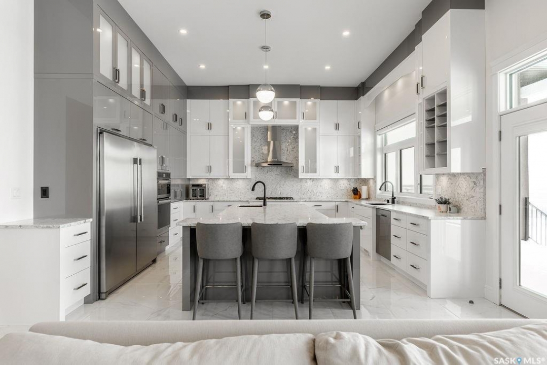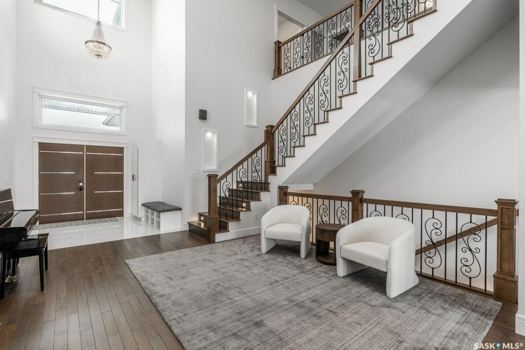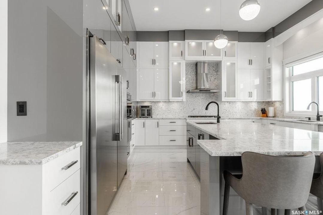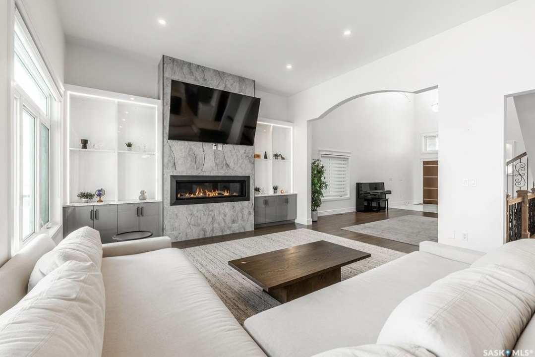 Timeless luxury, an incredible floor plan, and breathtaking views-welcome to 623 Kenaschuk Crescent. This impressive 3,067 sqft walk-out two-storey home has been custom built with exceptional finishes inside and out, and it comes fully furnished for a true turnkey opportunity. The grand 2-storey foyer makes an unforgettable first impression with soaring 22ft ceilings, a stunning chandelier, and an elegant sweeping staircase. Through the sitting room, you'll find a beautiful living room featuring a gas fireplace with granite hearth, built-in bookshelves, and custom cabinetry. The living room flows into a spectacular kitchen with floor-to-ceiling custom cabinetry, granite countertops and backsplash, a massive eat-up island, stainless steel appliances, and a full-size double fridge and freezer. Step outside onto the expansive deck spanning the entire back of the home overlooking the Northeast swale. Off the kitchen is a spacious formal dining room that could also function as a main floor office. The main floor is completed with a 3pc bathroom and a mudroom with access to the heated triple attached garage. Upstairs you'll find four large bedrooms, each with balcony access. The primary suite overlooks the swale and features a stunning five-piece ensuite with a standalone tub and tiled shower. There is a second primary suite with it's own en-suite. Two more bedrooms and a 4pc bathroom make the layout perfect for larger families. The 2nd floor also features a large laundry room with a sink and built in cabinetry. The fully finished walkout basement features a wet bar, entertainment area, large family room, an additional bedroom, a 3pc bathroom and a 2nd laundry! Outside is a covered patio and beautifully landscaped, fully fenced no-maintenance yard with artificial turf and gardens overlooking the grasslands. Close to all amenities, this is a must-see home.