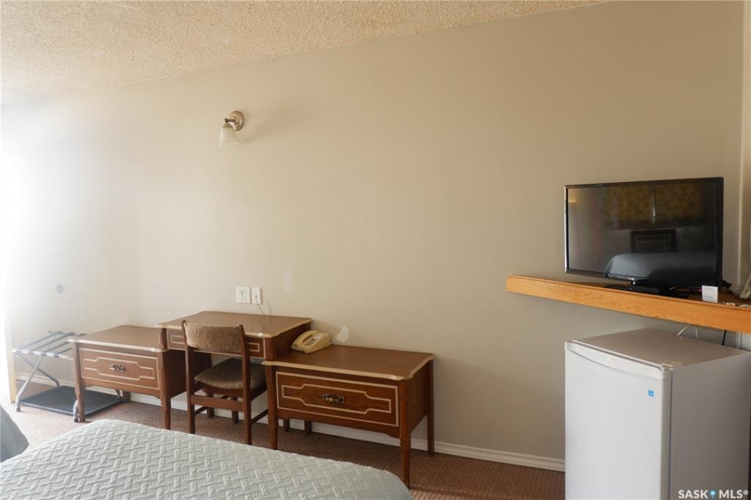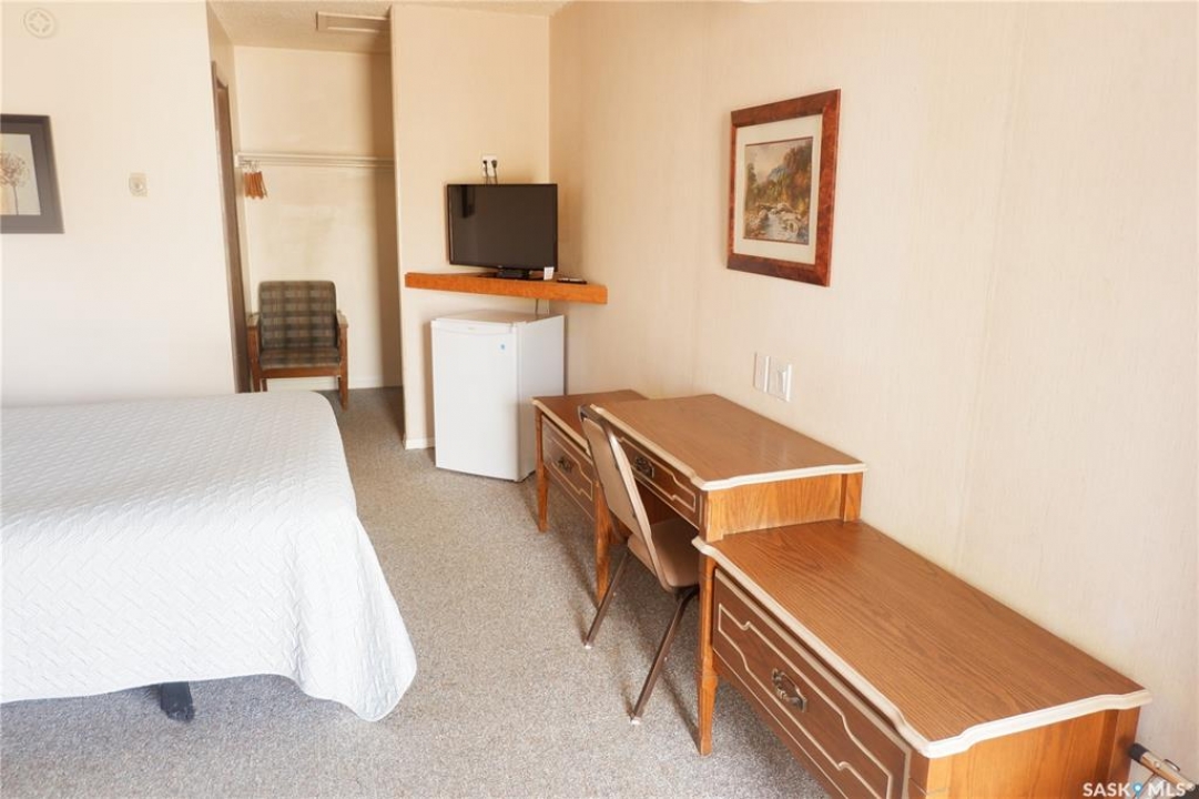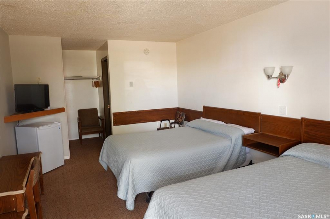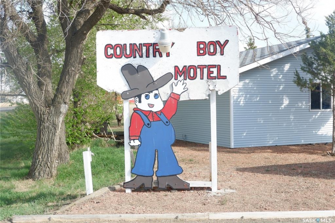 The Country Boy Motel in Coronach offers 25 rooms and a two-bedroom owner's suite. The property is clean, well maintained, sits on over an acre with ample parking, and has shown strong returns in previous years. Each room includes a fridge, microwave, air conditioner, cable TV, and a full bathroom. Living quarters feature an open kitchen/living area and direct lobby access. The double detached garage provides owner parking and storage; the boiler and shingles have been recently replaced. A separate addition serves as a snack and storage room, previously used as truck shower facilities. Room breakdown: 13 singles, 8 doubles, 4 deluxe. Please allow time to set up showings. Coronach is in South Central Saskatchewan, 15 minutes from the US/Canada border.