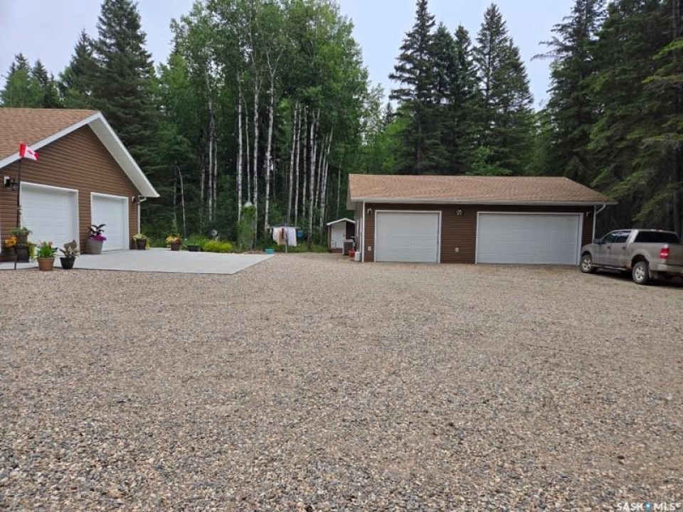 Gorgeous 3.64 acreage that is adjacent to the west side of Turtle Lake, SK. This property is only minutes from the water's edge and is in a mature, treed environment providing privacy, serenity, and the utmost relaxation. As you drive into the property through an extended driveway, you arrive at an amazing-looking 1830 sq ft home with a double attached garage, this property shows tremendous pride from the outside, and with no disappointments as you enter the home. The main has a kitchen with plenty of cabinets, counter space, and an island, which flows into the dining area and onto the living area that features a gas-burning fireplace and patio doors that takes you onto a back yard deck. Master bedroom with a full bath en-suite and a walk-in closet, two additional bedrooms, and a full bath. Off the entry from the attached garage, there is a half bath and a utility room with a washer and dryer. The In-floor heating and water systems equipment is found off an entry from the garage. As you leave the home through the garden doors from the living room, you enter onto a 638 sq ft deck that overlooks the back yards filled with perennials, wildlife, and birds that love their feeders. The front yard is meticulously landscaped with bushes and numerous colorful perennials. The side yard has a 36 x 28 triple bay partly heated garage. This only begins to describe the property, viewing the property will only give it its justice, and you will not be disappointed. Call an Agent today.