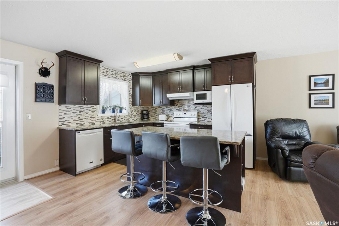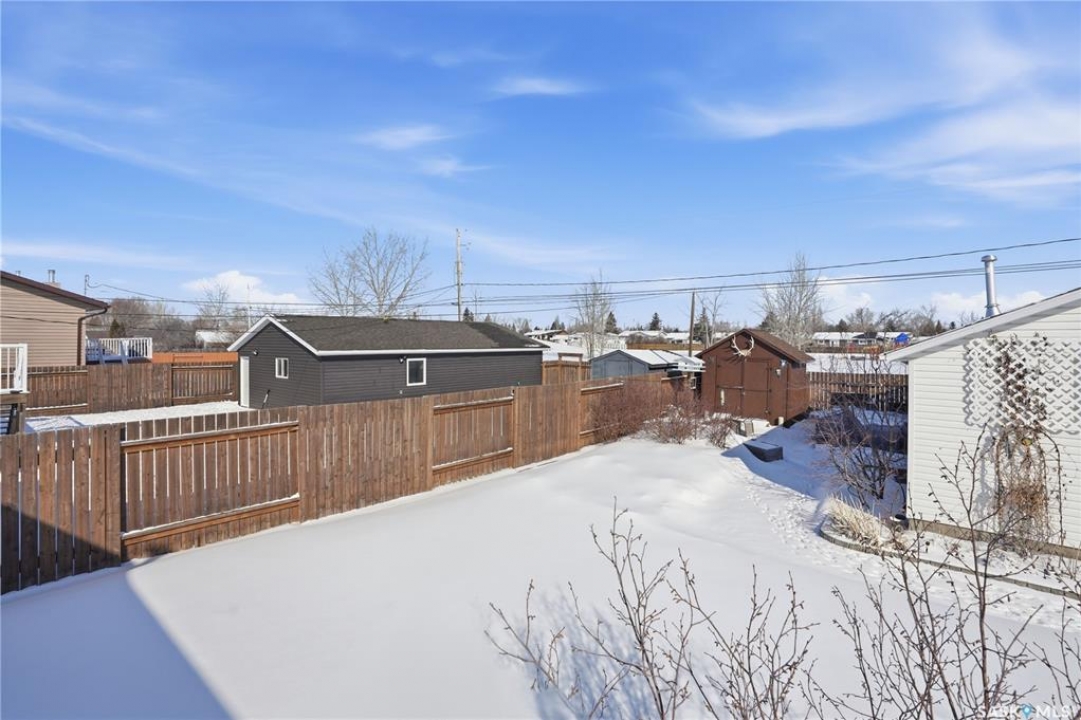 Backs Lions Park & greenspace!! Welcome to 425 5th St S, Martensville, this 5 bedroom, 3 bathroom bilevel comes move in ready with upgrades already done. The open concept kitchen features a grand island, granite countertops, and tile backsplash. The flooring on main floor has newer laminate through the living space. The primary bedroom also has its own ensuite making this a good fit for all buyers. The basement offers 2 more bedrooms, bathroom (needs shower installed to make B3) and a massive laundry room finished with cabinets and storage space. Out back you have a dream 25x27ft heated detached garage with 8 ft doors and 9 ft ceiling and there is even a floor drain to collect all the melted snow. Other notables: central air conditioning, deck off dining room, front concrete driveway, and is fully fenced. Don't miss out on this great home!