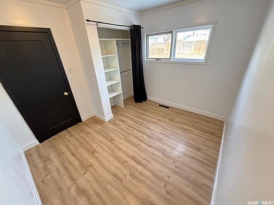 Welcome to this charming 840 sq ft bungalow located in the desirable North West Palliser area of Moose Jaw, close to schools and parks—perfect for first-time home buyers or those looking to downsize. The main floor features a bright, open-concept layout with a beautifully renovated kitchen (2022), complete with darker-toned cabinetry, updated sink, dishwasher, ample counter space, and a functional breakfast bar/island—ideal for everyday living and entertaining. Laminate flooring runs throughout the kitchen, dining area, and bedrooms, while a large south-facing picture window fills the space with natural light. The main level also includes a full 4-piece bathroom and two ample sized bedrooms. The fully developed lower level offers additional living space with a comfortable family room, a versatile den perfect for a home office or playroom, and a utility/laundry area. Outside, enjoy the fully landscaped yard featuring a wood deck, a designated garden area, and a storage shed. A long single detached garage provides excellent parking, storage, or workshop potential. Immediate possession is available—don't miss this opportunity to own a well-updated home in a great location!