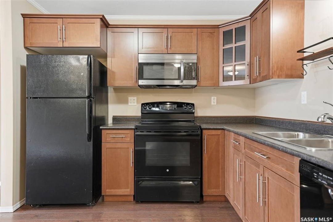 Welcome to 103–275 Pringle Lane, ideally located in the highly sought-after community of Stonebridge. This bright and inviting 2-bedroom property is well-suited for families, downsizers, or students alike. Enjoy a sunny, south-facing front yard overlooking a quiet residential street. The space is partially fenced and features a patio—perfect for relaxing and making the most of long summer days. The well-maintained lawn is cared for by the complex, offering a great outdoor area for children to play. This stylish and well-kept home features two generously sized bedrooms and a spacious 4-piece bathroom. The open-concept layout includes a large living area filled with natural light, ideal for both everyday living and entertaining. The modern kitchen is equipped with maple cabinetry and a dedicated dining area. Upgrades include high-quality laminate flooring throughout the main living space, 3-inch crown moulding, in-suite front-loading washer and dryer, and a custom blinds package. This home offers enhanced comfort and efficiency with triple-pane windows, a high-performance front door, upgraded insulation, and soundproofing. Additional updates include a newer on-demand hot water system, along with a recently replaced water heater (2021), washer and dryer (2024), and microwave (2024). Ample storage is available in the crawl space beneath the unit, perfect for seasonal items. The unit includes one electrified surface parking stall, with plenty of visitor and street parking available. A standout feature of this home is its quiet street-facing location, offering both privacy and tranquility.Contact today to schedule a private showing of this exceptional condo.