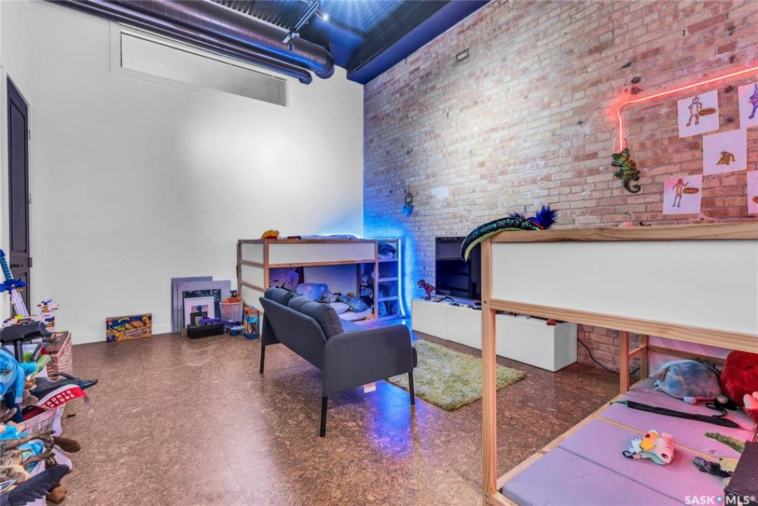 Welcome home to 211 Ave D North unit 105. This executive condo delivers an impressive space with over 1900sqft and 14' ceilings. Industrial design and natural textures. The exposed concrete, brick, and steel are softened with the warm colors and natural light. The front entry is set for welcoming you in with an oversized closet and plenty of space to kick off your shoes. Laundry/Utility is found adjacent with more room for storage here and the following leads you to a large secondary bathroom that boasts a shower and oversized soaker tub. The first bedroom is found next with a spacious 13' x 17' dimension & walk-in closet. The kitchen provides an anchor to the main room with an island looking out. Entertain with ease! From prep to serving - there is a generous layout of high-end cabinetry, counter space, and large pantry. East facing windows tease the city skyline and bring in plenty of natural light here. Let your imagination flow with layout placement; dining, living, work or play. The primary retreat is separated from here and shows an oversized bedroom sharing the exterior windows. A walk-in closet has two sides and leads to a customized 3 piece ensuite. There is one above-ground parking stall included that you will find within the gated area and often other options available for rent. As well there is a gym space, and the roof top terrace with lounging chairs, a BBQ included, and incredible views!