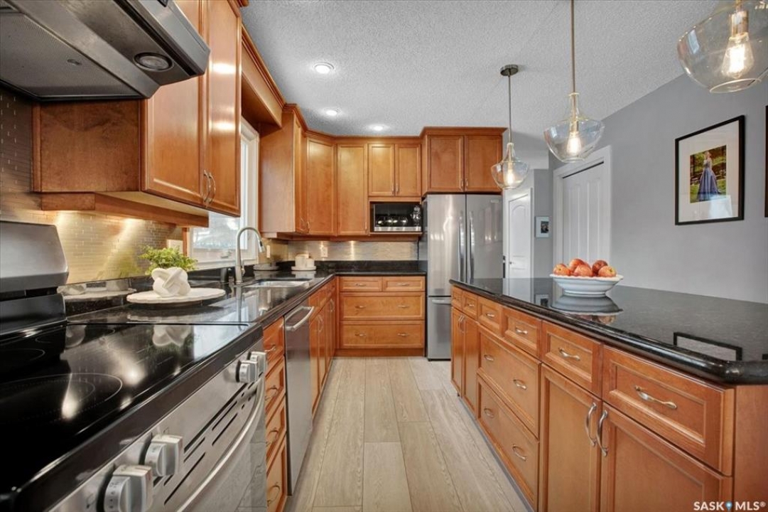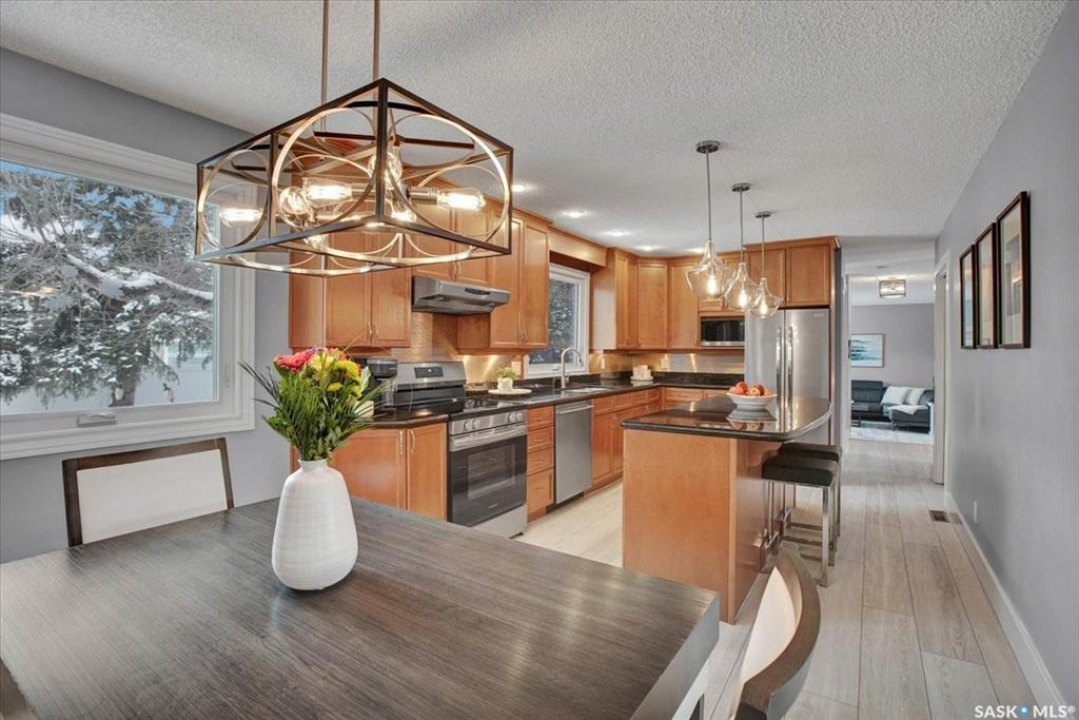 Welcome to this beautiful 4 bedroom up family home on a quiet cul-de-sac in the sought after neighborhod of River Heights. The homes backs green space where your children can walk to St. Anne's School and the Lawson Civic Centre. Spacious layout and warm, welcoming feel, this upgraded two-storey home offers the perfect blend of comfort and functionality for the growing family. Upstairs, you'll find four generous bedrooms and two renovated bathrooms. The main floor features oversized rooms that create an open, airy feel. The large family room has a lot of natural light and is ideal for hosting family gatherings, the renovated kitchen and eating area is both stylish and practical with stainless steel appliances, granite countertops, large sit up island and thoughtful updates all overlooking the backyard. Just off the kitchen, another large family room overlooks the beautiful yard, making it easy to relax while keeping an eye on outdoor activities. A convenient half bath and main floor laundry complete the main. The fully developed basement adds even more living space with another expansive family room, perfect for movie nights, a games area, or a home gym as well as a kitchen/bar. Outside, the park-like yard spans over 10,000 square feet, offering incredible space for children to play, summer barbecues, gardening or simply enjoying the peace and privacy of your own backyard oasis. There is room for a large pool in the yard. A huge composite deck and durable Hardie board siding enhance both the beauty and longevity of the home. This location truly shines, with close proximity to the river and scenic walking paths, walking distance to elementary and high schools, Lawson Civic Centre with pool and library, the Soccer Centre, shopping malls, medical services, restaurants, and countless everyday amenities. Recent updates include luxury vinyl flooring throughout the top two floors, triple pane windows, updated blinds, updated bathrooms, plumbing and light fixtures.