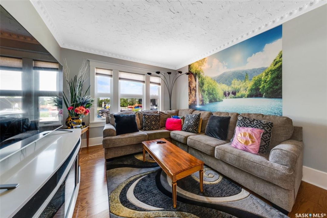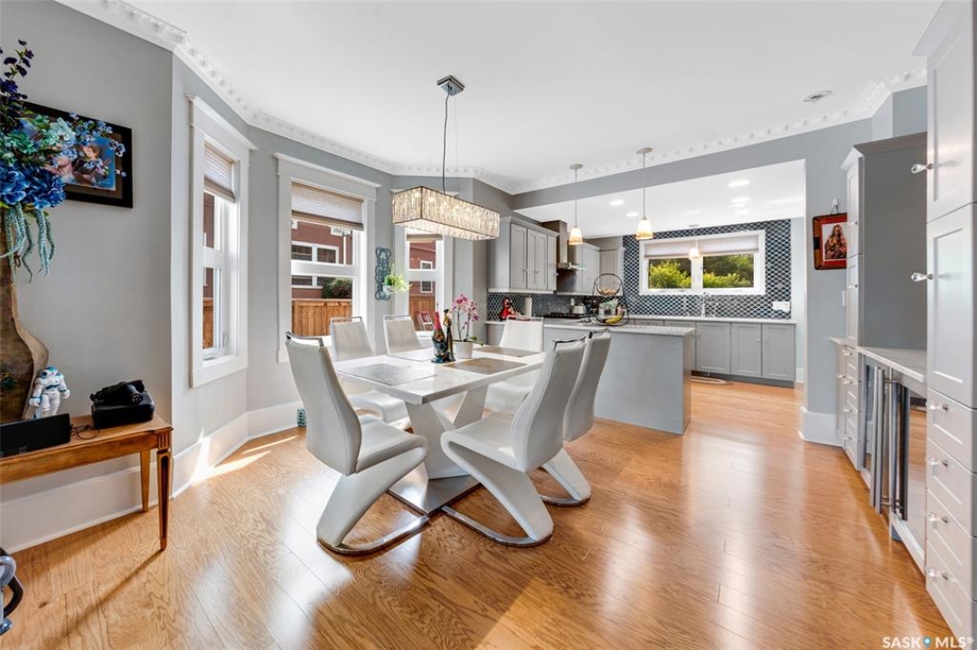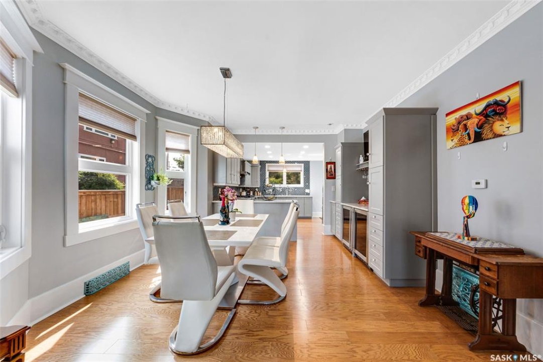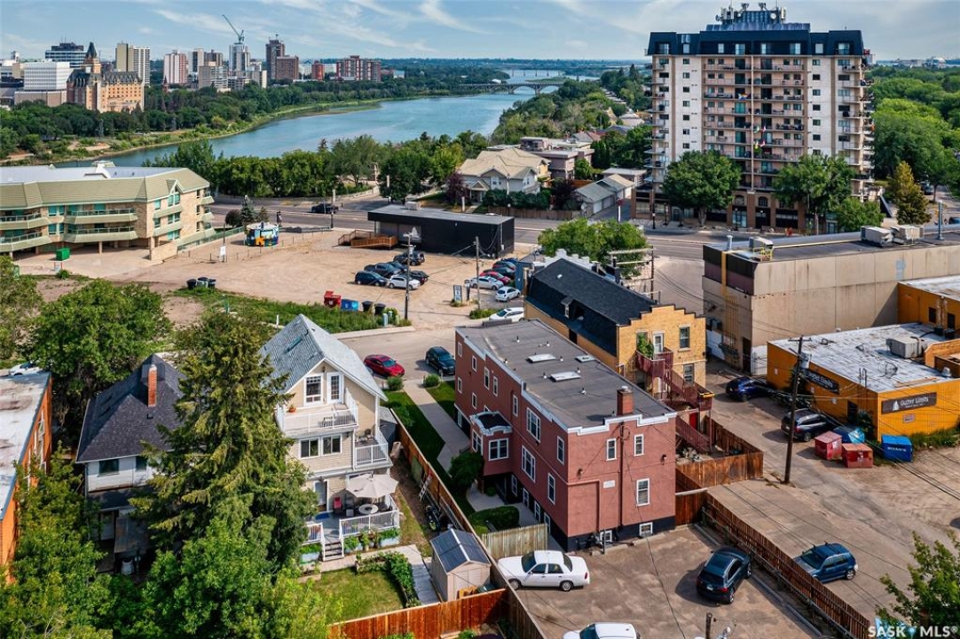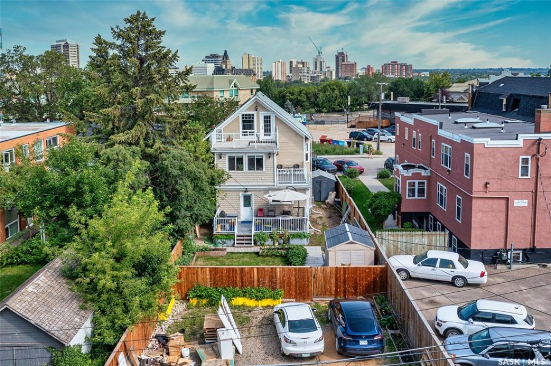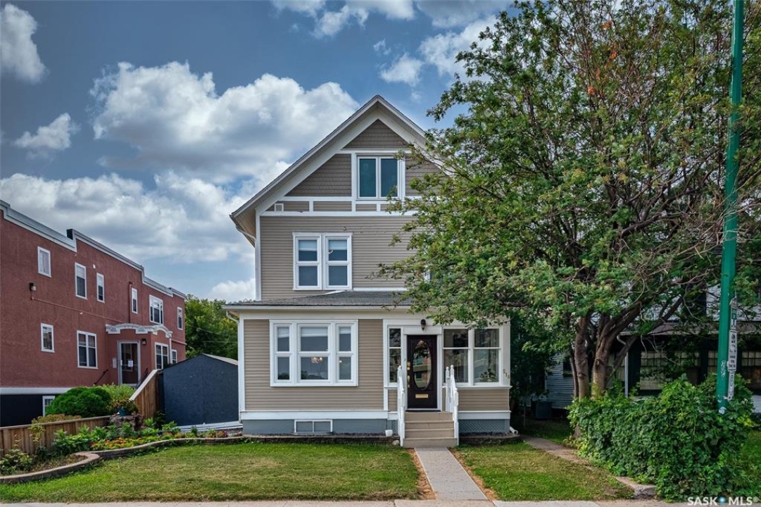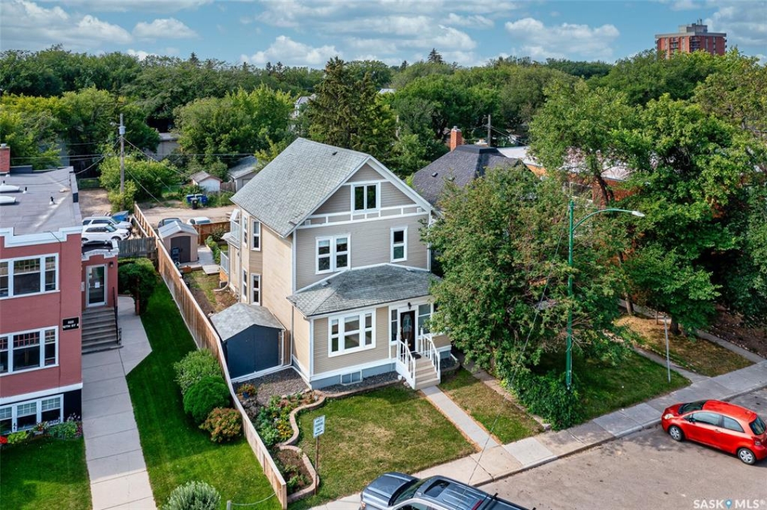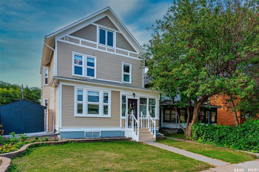 Just steps from the Saskatchewan River, tucked into the historic Nutana Neighbourhood, this Character 1911 home has been lovingly restored for clients who appreciate the history and location of this property. This spacious home has a completely renovated kitchen with quartz countertops, new cupboards and backsplash, under counter lighting, all new appliances, including a newer large wine and beer fridge and a nice open floorplan flowing through to the dining room and living room. An office space and main floor laundry are a great convenience on the main floor. Four- piece bathrooms on each of first two floors and half bath on third floor are convenient. Three large bedrooms on the second floor, one with a very large walk-in closet with window. (Could be used as a nursery.) One of the bedrooms on the second floor can also be used as a Sunroom. A new staircase leads to the third floor where the primary bedroom could be located. This room could also be used as a bonus room or very large office. Owner has replaced much of the crown molding to return this property to its original glory. There are South facing decks off the second and third floor as well as a back deck off the kitchen, also South facing. Most windows are new. Furnace, water heater and reverse osmosis recently changed. New paint everywhere and new engineered hardwood flooring make this is a turnkey property (Vinyl planking on the 3rd floor). Arches, tall baseboards, bay windows and glass doors complete the historic look of this home. This property has a completely fenced in backyard with board sidewalk leading to parking off the back alley. There is room for a garage. The owner has also created a small oasis of gardening boxes tucked around the back yard which is drenched in sunshine most of the day. Come and visit this beautifully renovated historic home, you'll be glad you did.